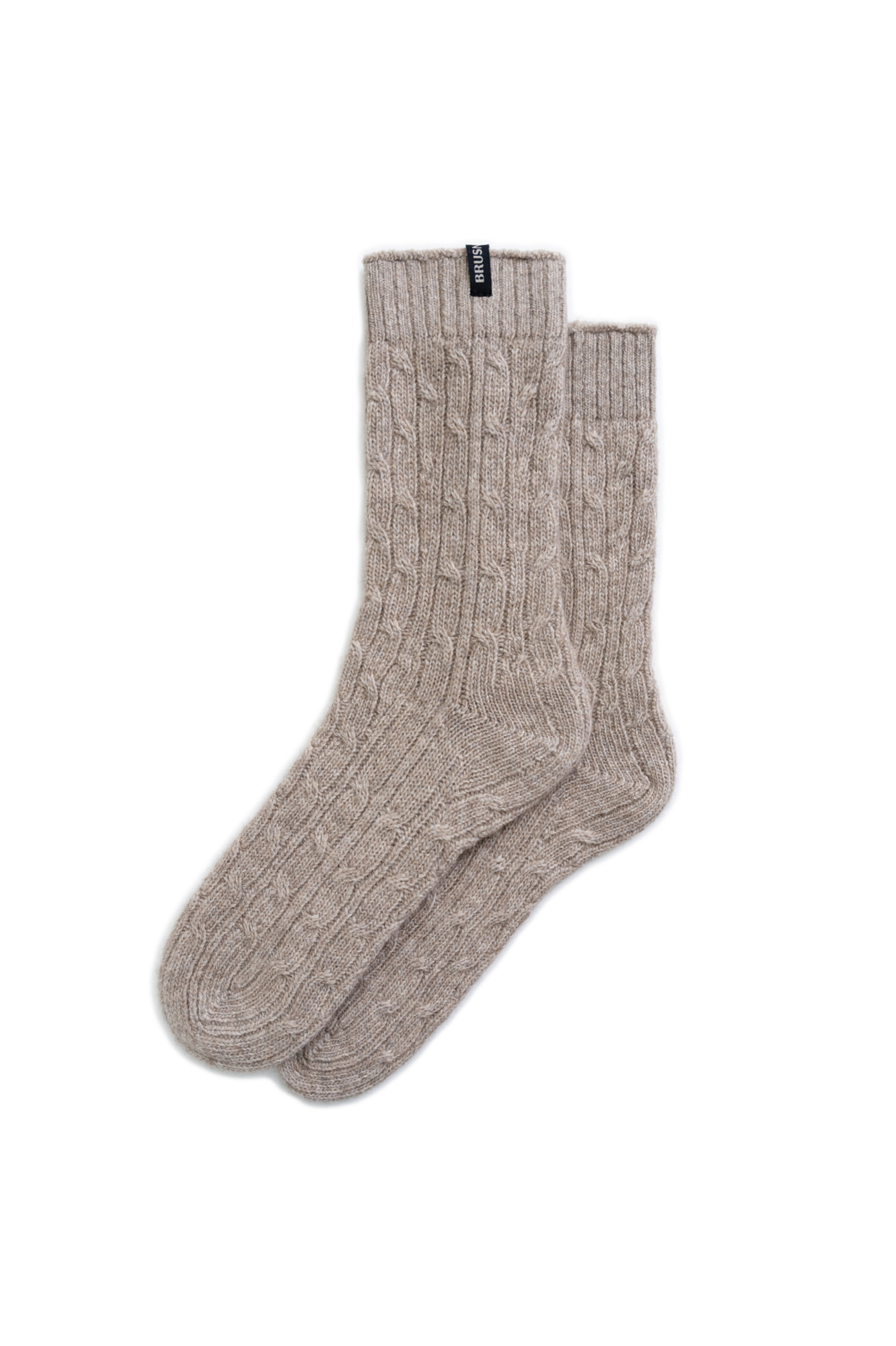 Трикотажные носки из кашемира и шерсти. Модель с фактурной вязкой косами, эластичной резинкой и брендированным ярлыком.