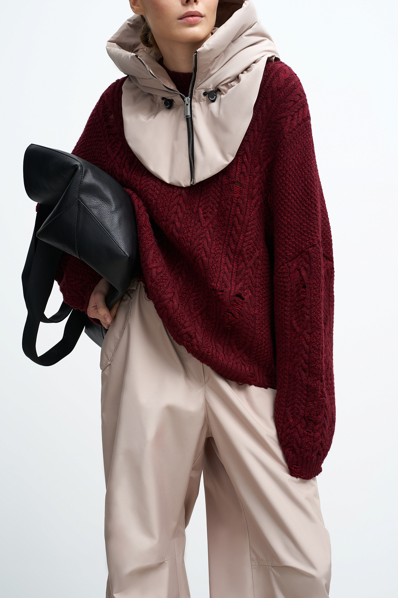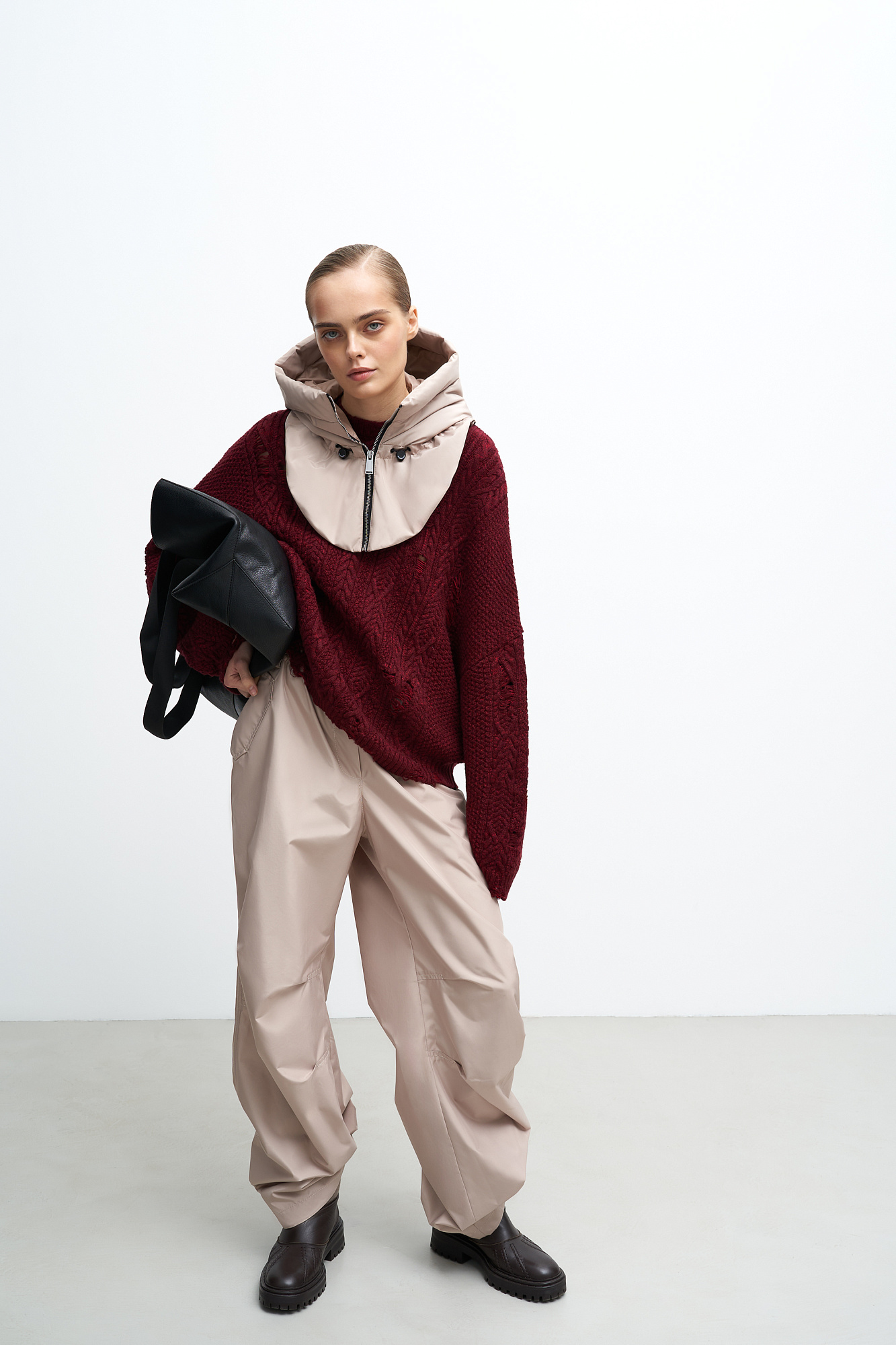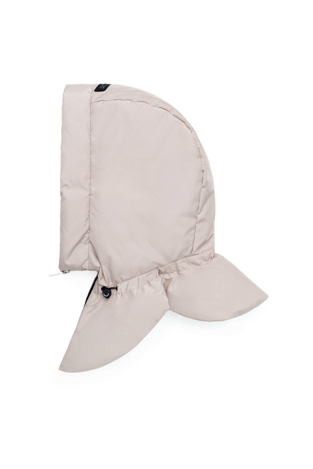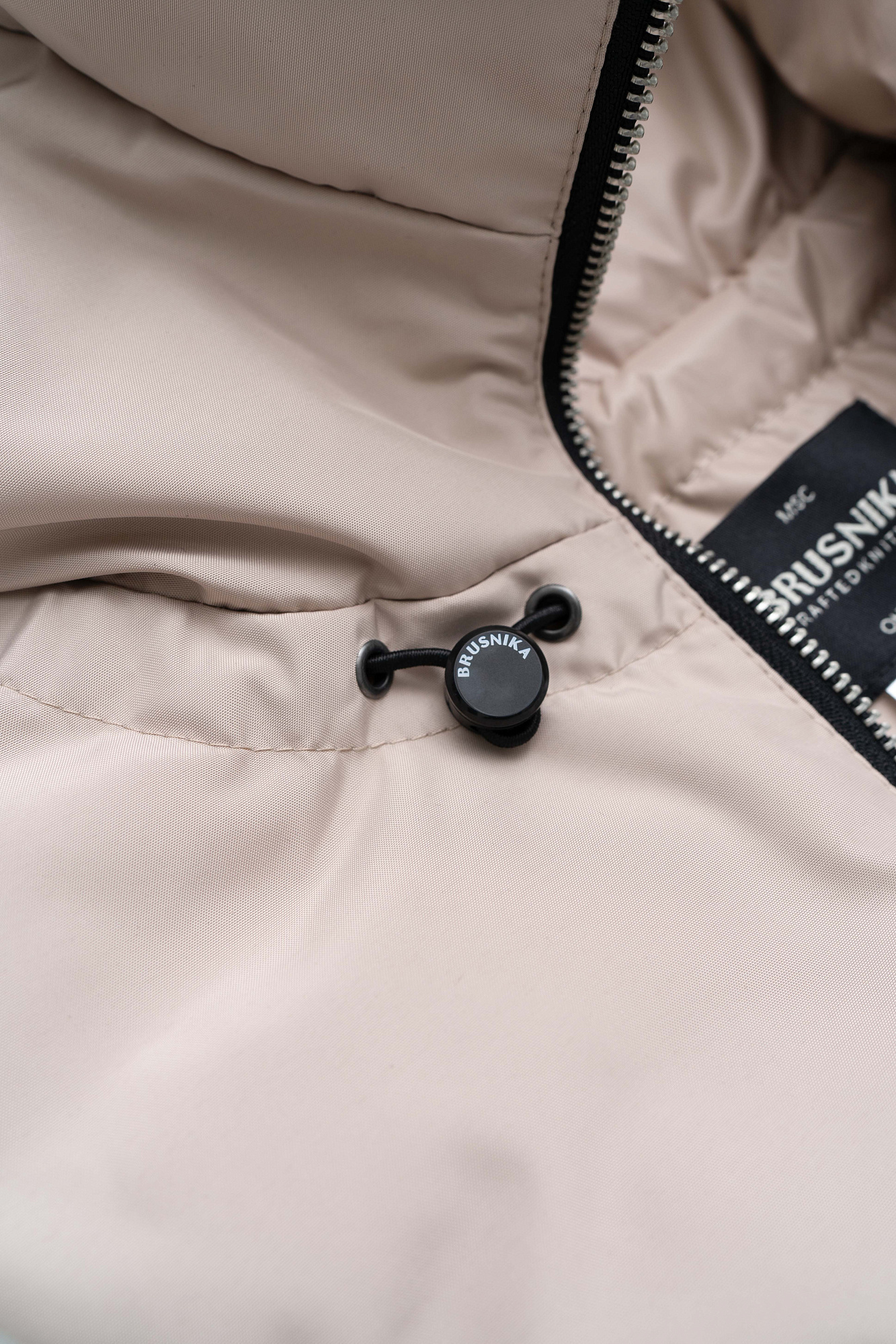 Капюшон с брендированным ярлыком, застежкой на молнию и кулиской с фиксатором. Наполнитель натуральный пух 90% перо 10%.
