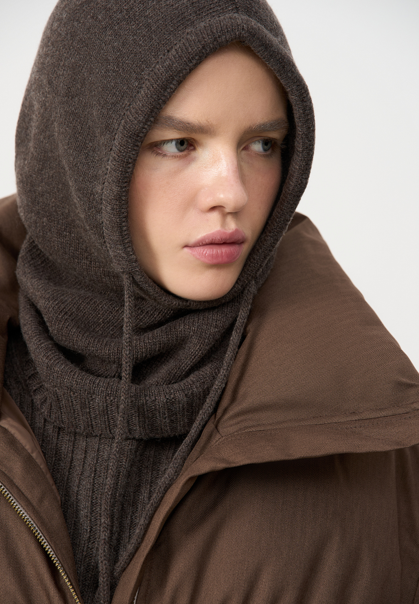 Трикотажный капор на кулиске из шерсти и кашемира.