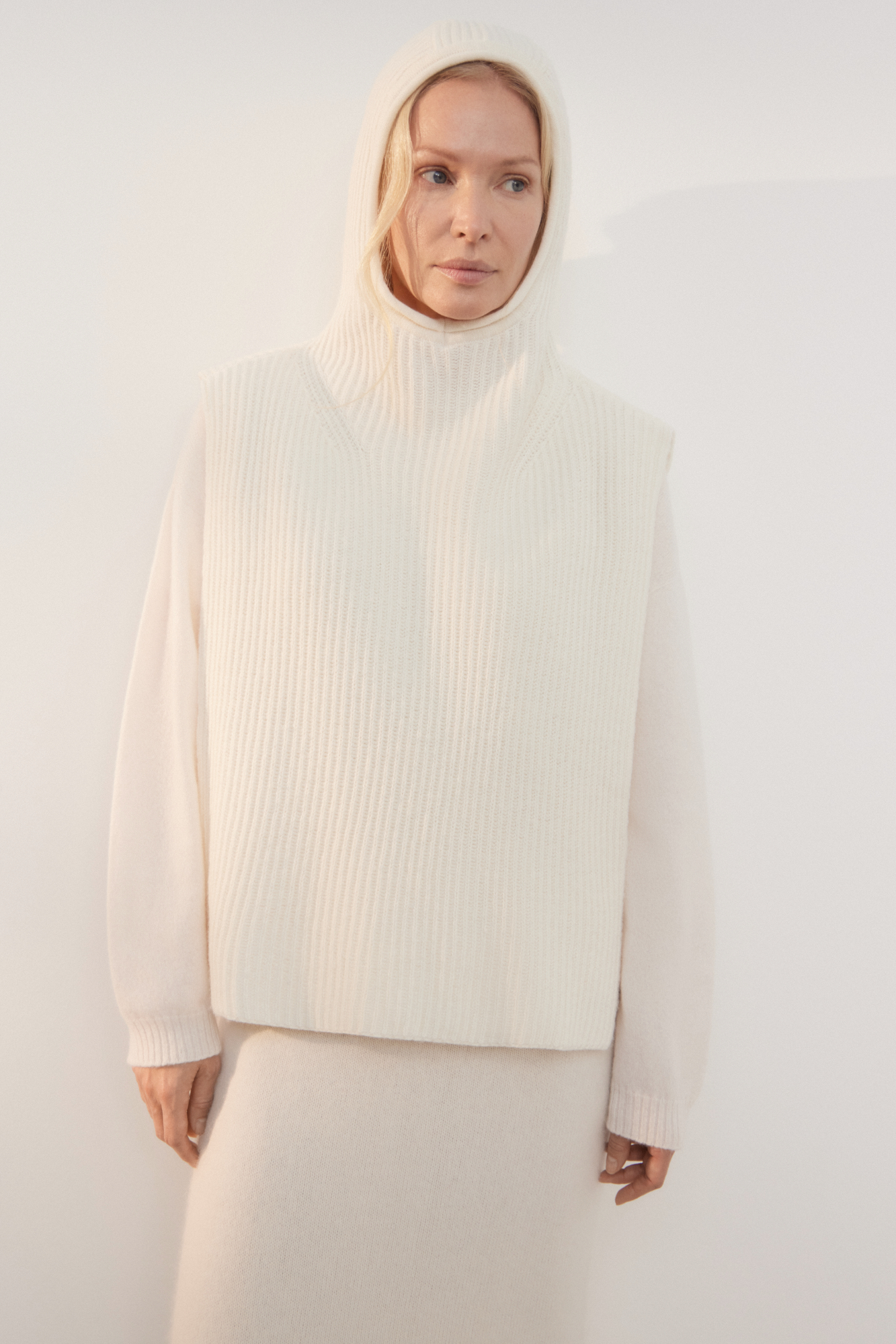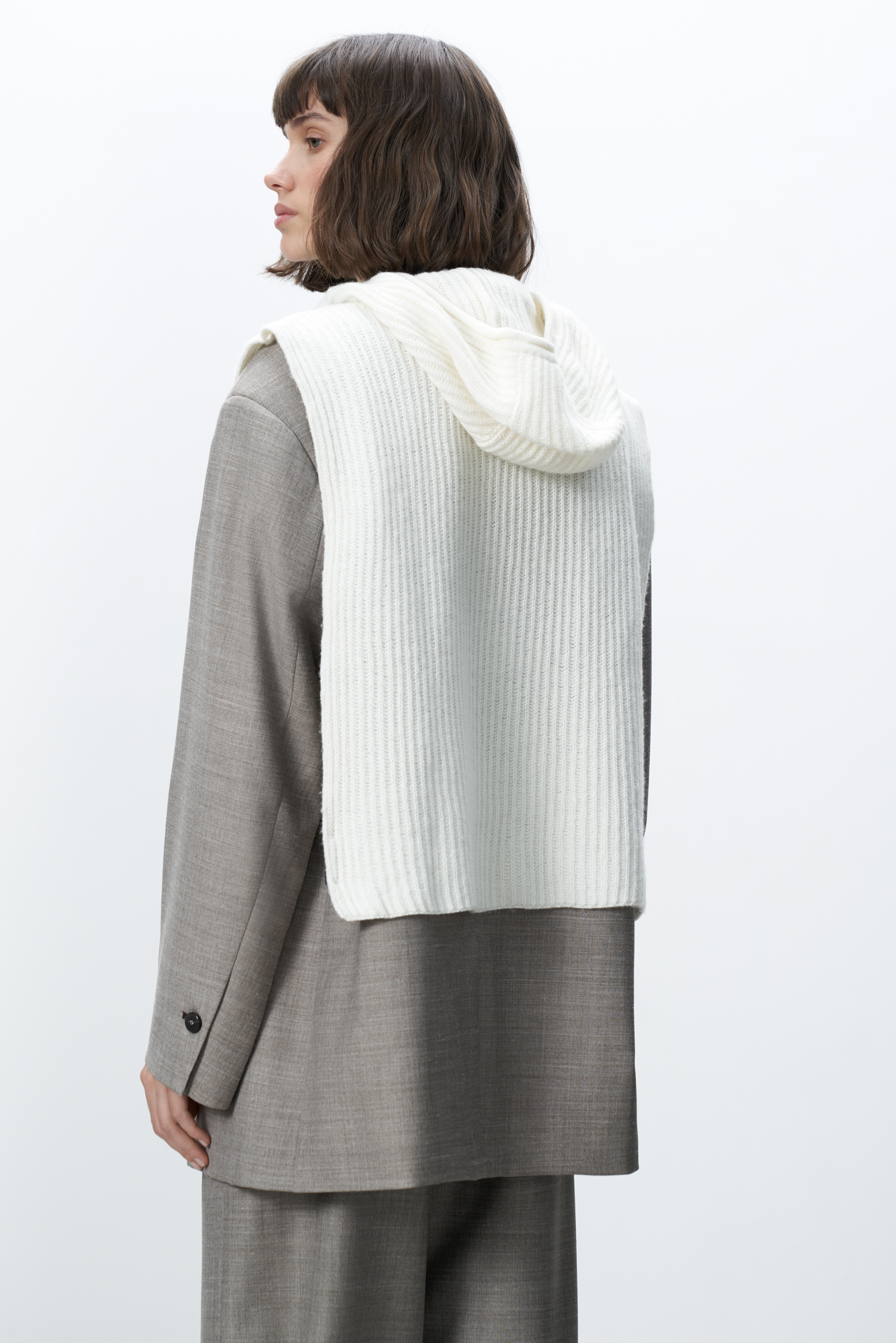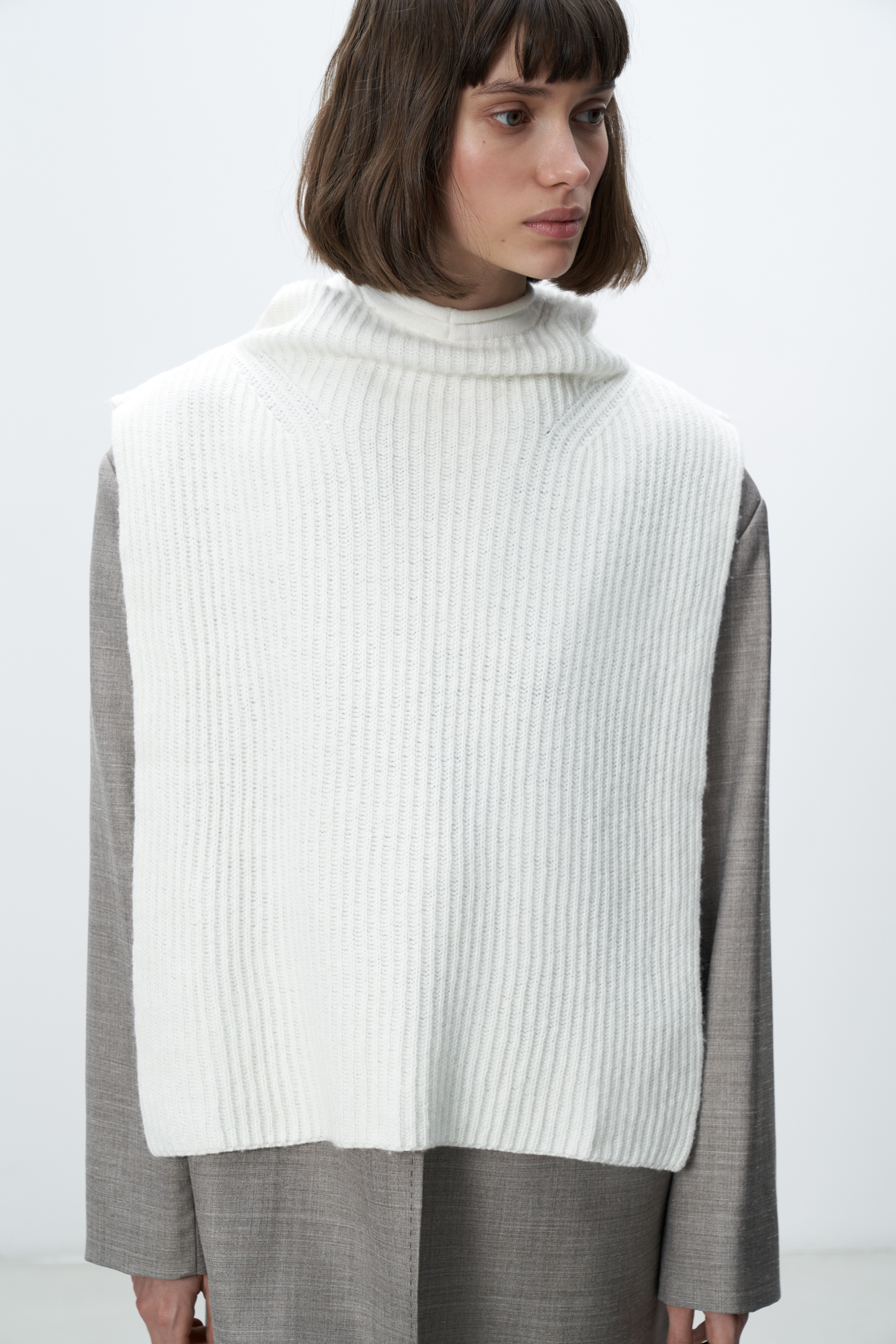 Трикотажный капор-манишка из кашемира и шерсти. Модель с удлиненными полами.