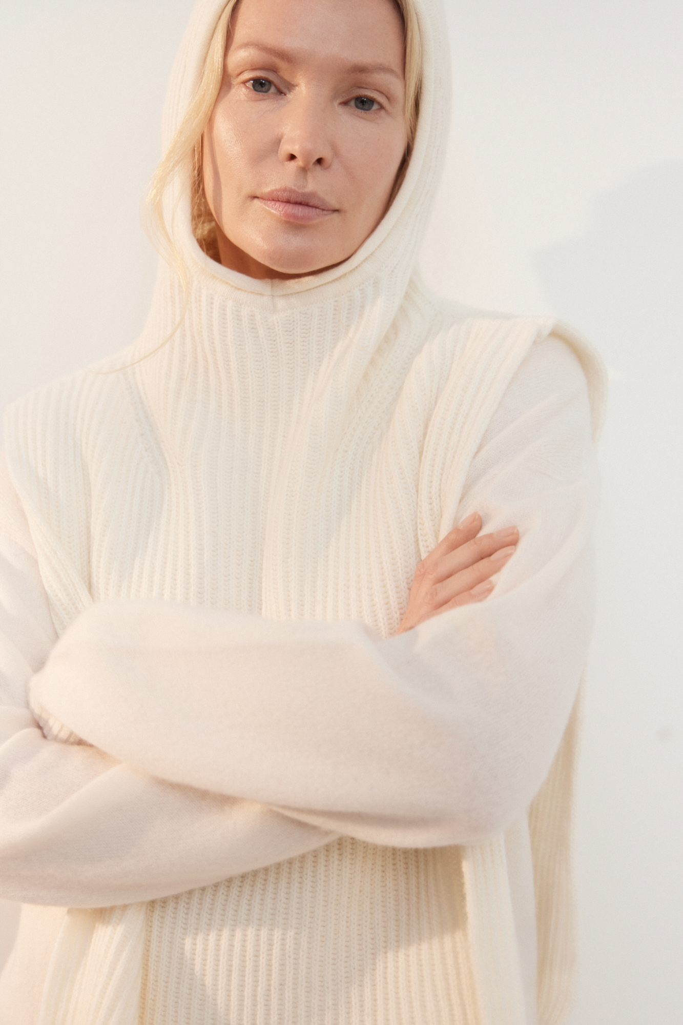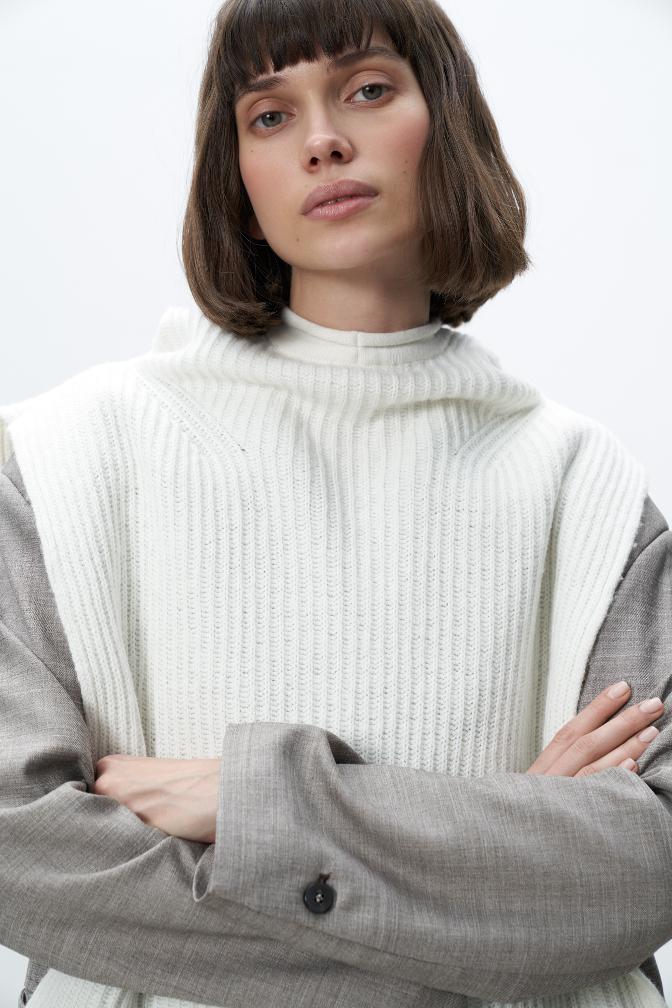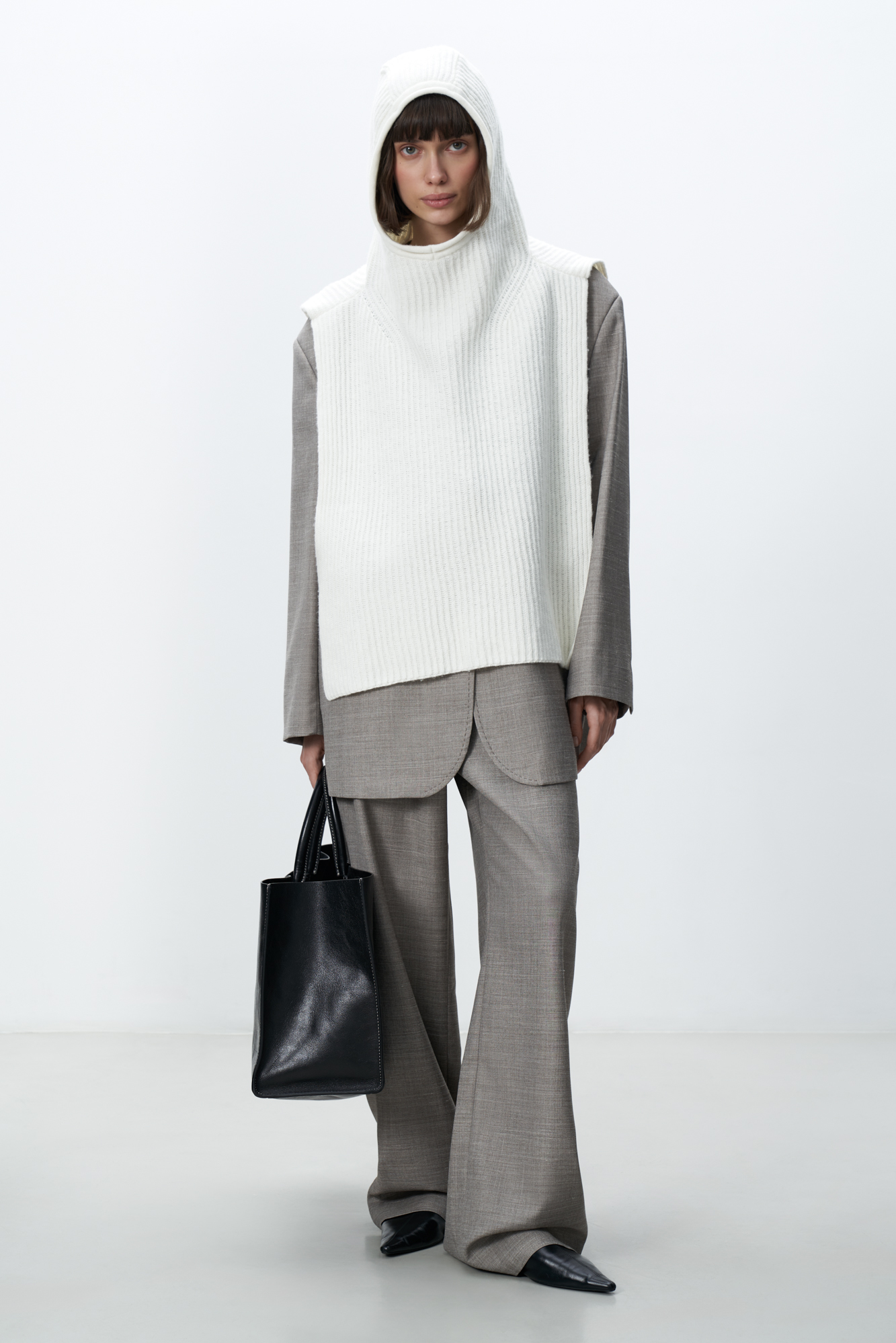 Трикотажный капор-манишка из кашемира и шерсти. Модель с удлиненными полами.