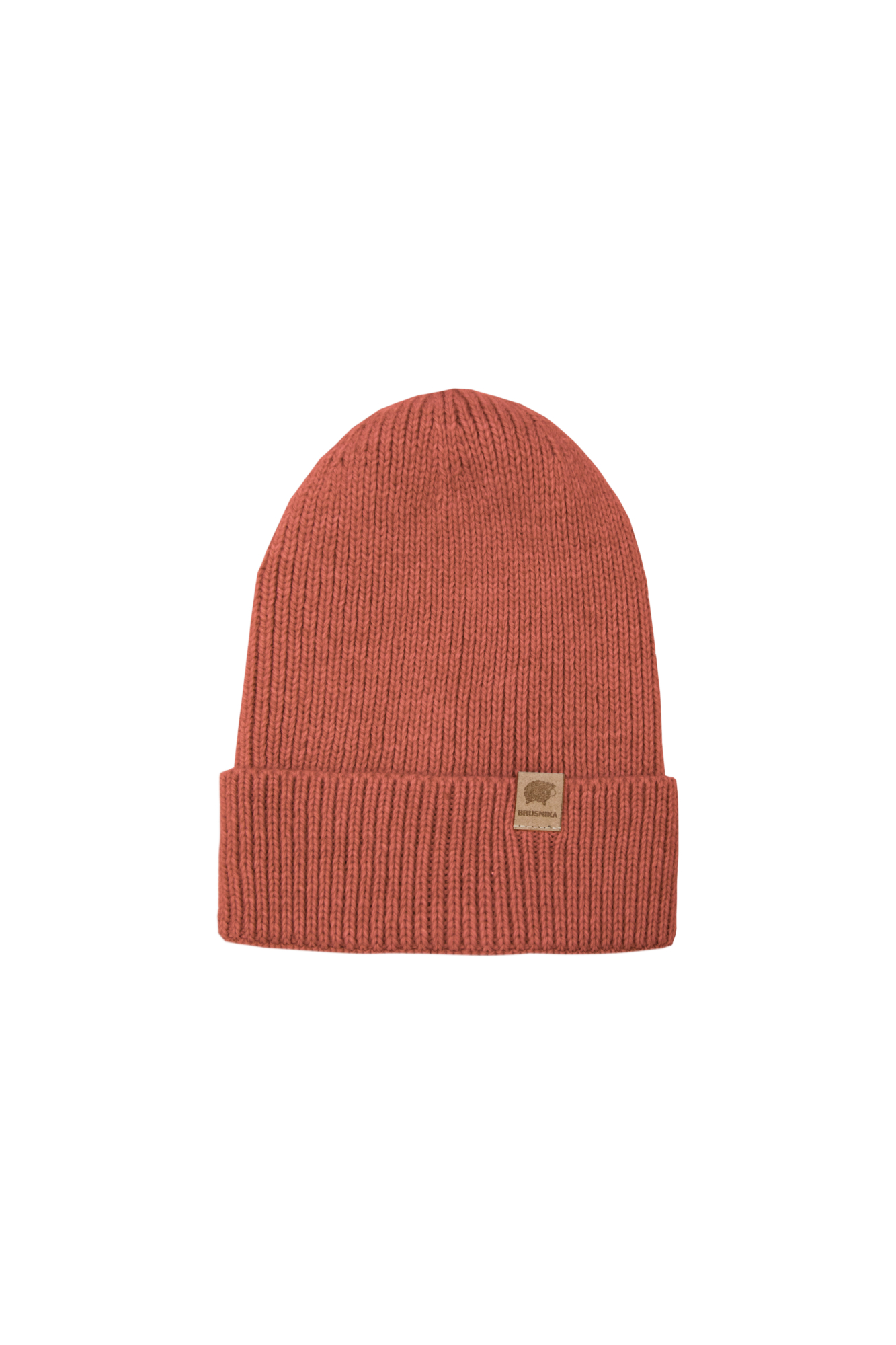 Шапка в мелкий рубчик с отворотом из шерсти Альпака