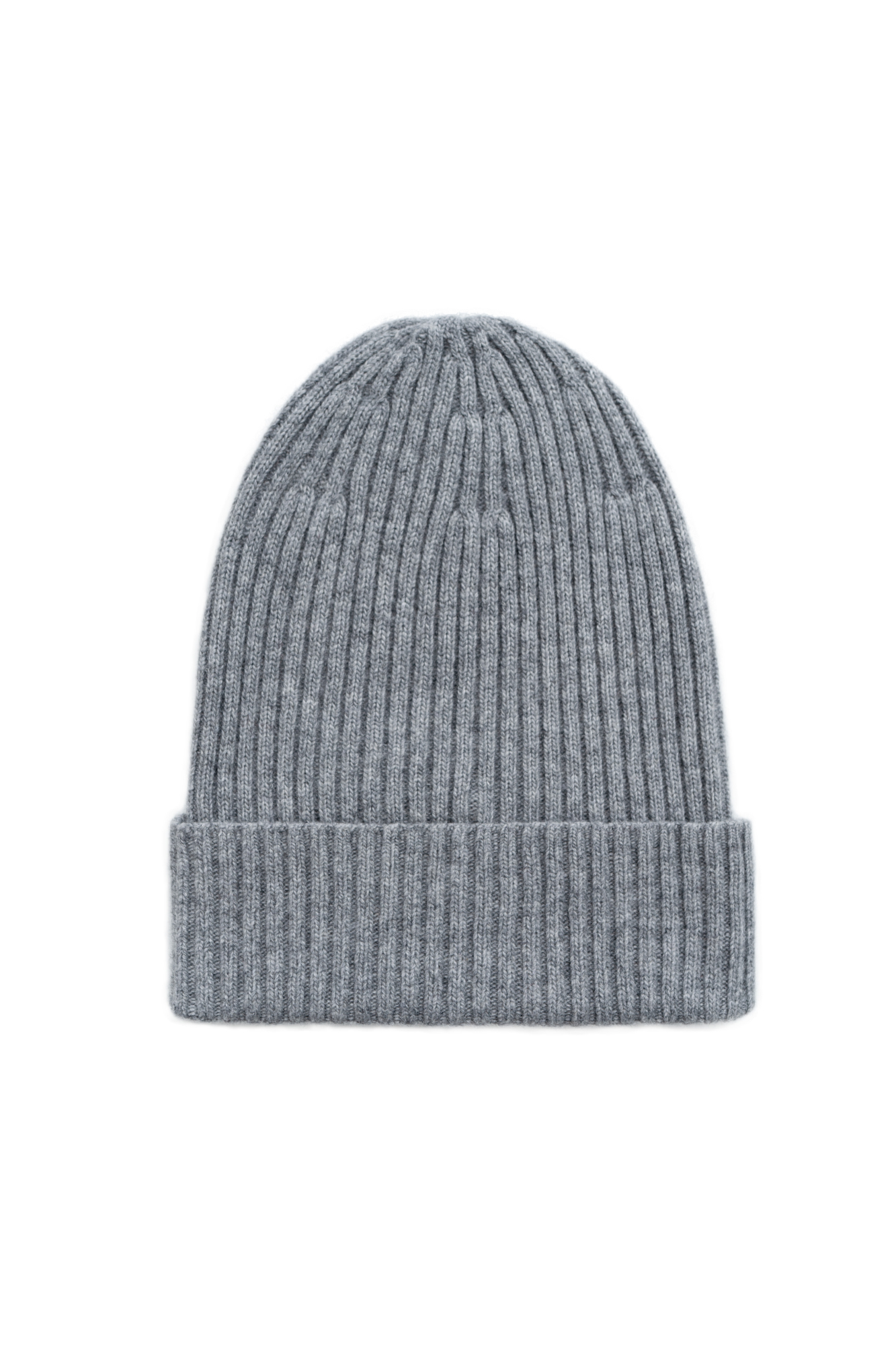 Объёмная цельновязаная шапка из кашемира и шерсти. Модель с отворотом.