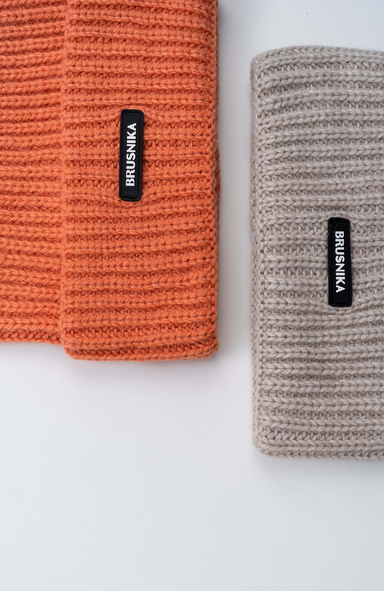 Шапка из шерсти альпака с отворотом и логотипом бренда.