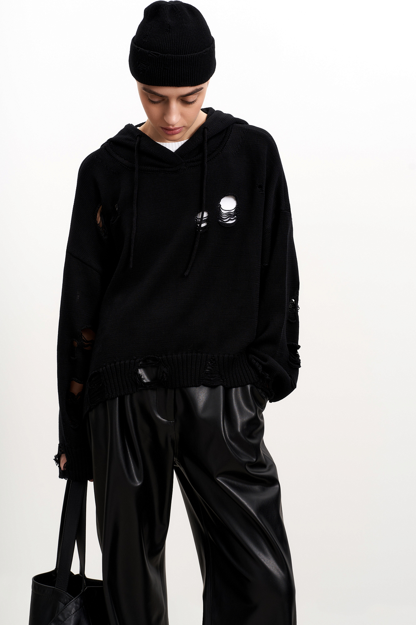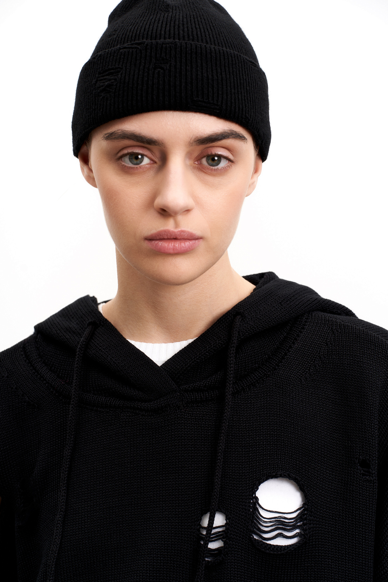 Трикотажная шапка с отворотом в стиле гранж. Модель из смесовой шерсти с добавлением кашемира.