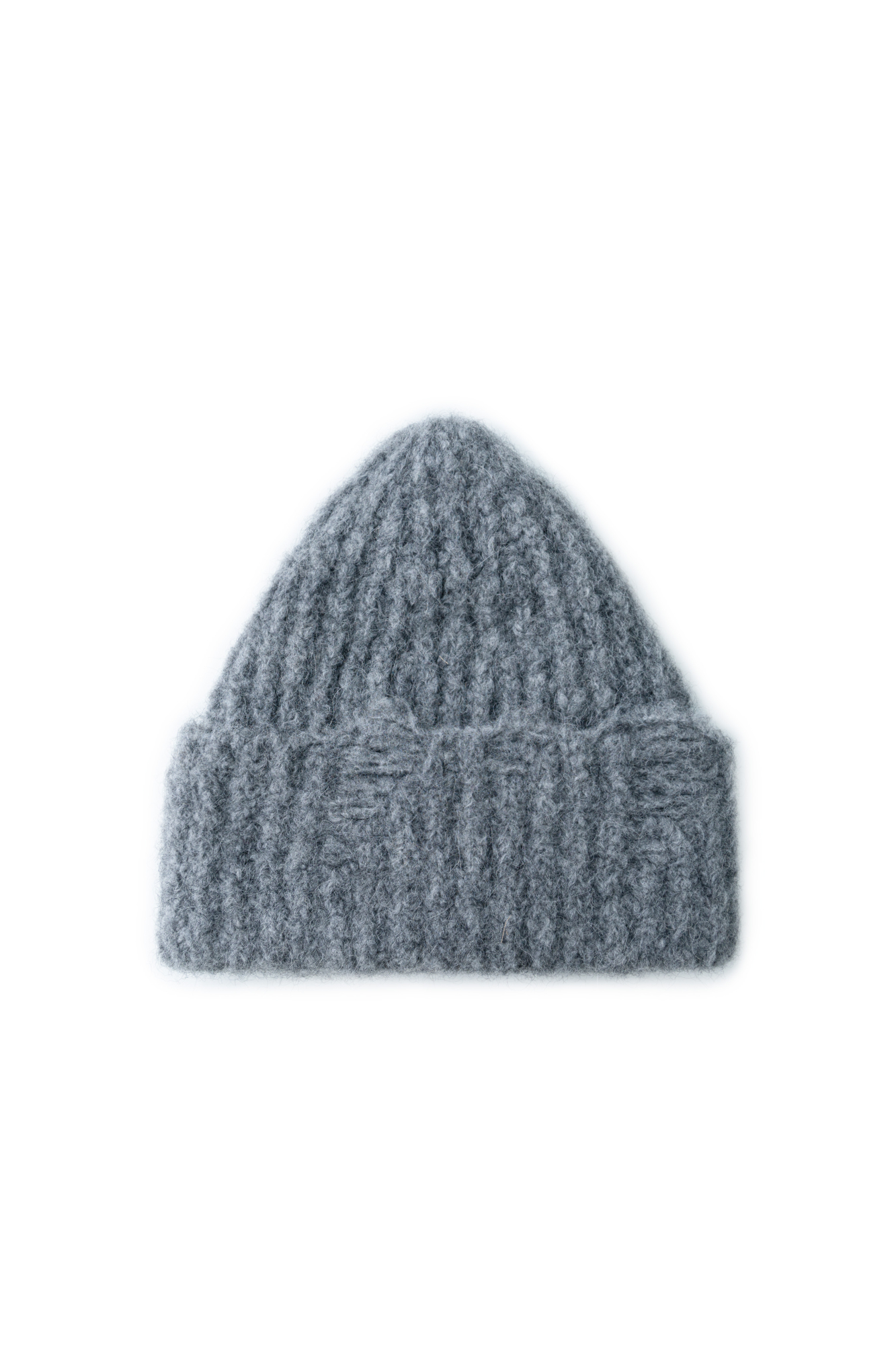 Трикотажная шапка из буклированной пряжи. Модель с отворотом и имитацией рвани.