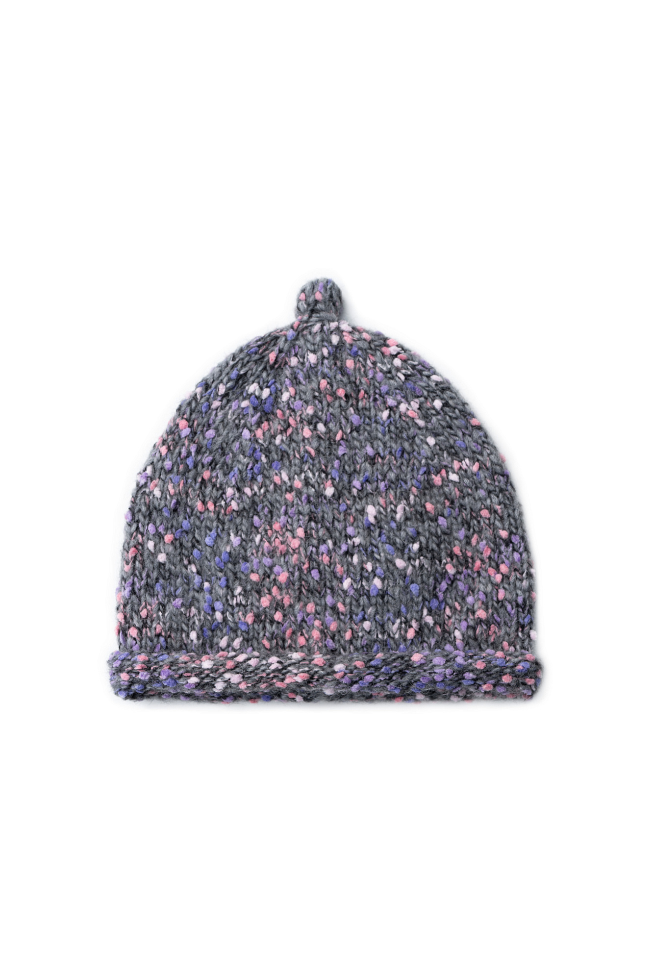 Трикотажная шапка-докер с плотной посадкой по голове и подвернутым краем. Модель из буклированной пряжи с добавлением шерсти альпака.