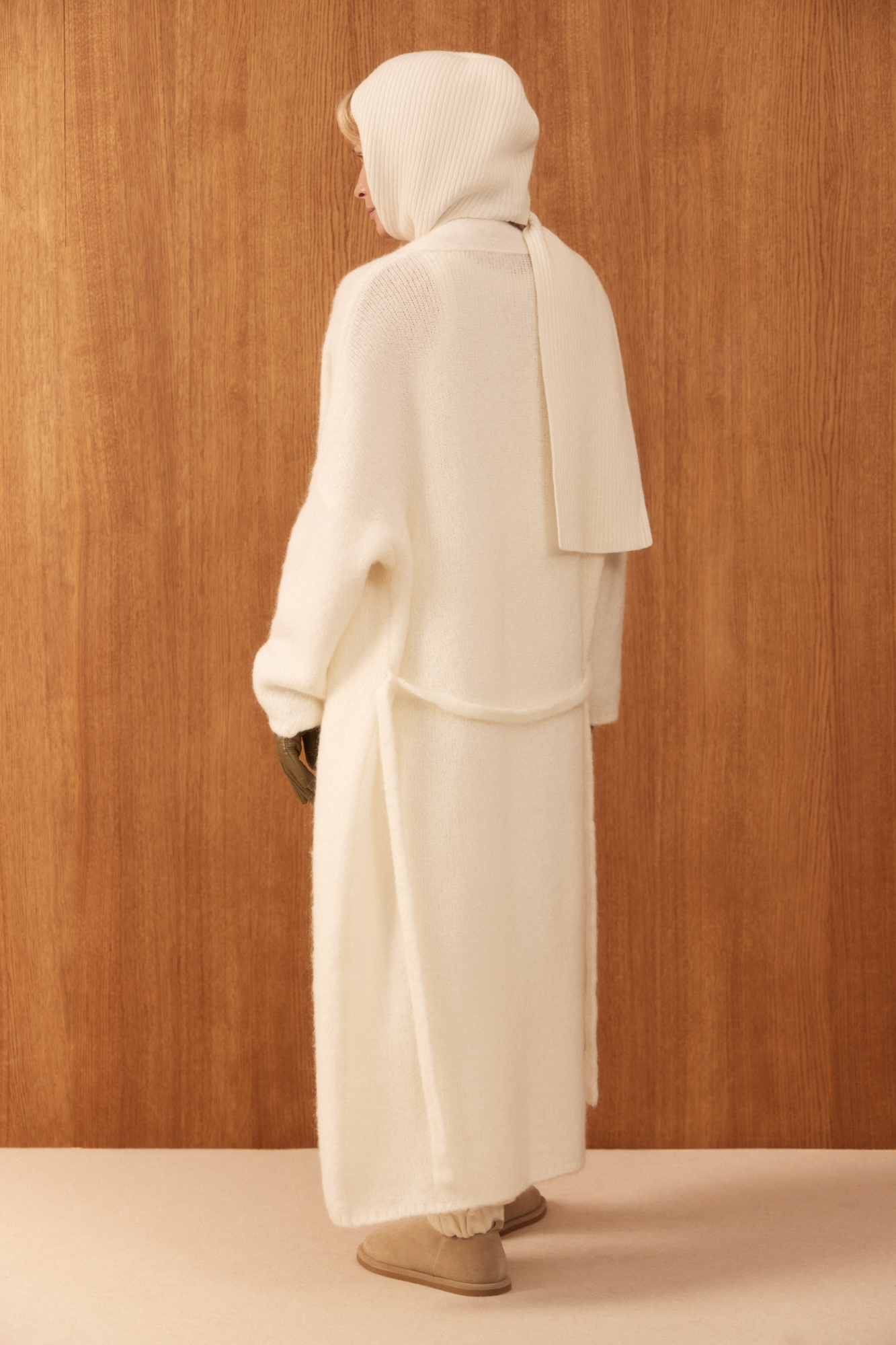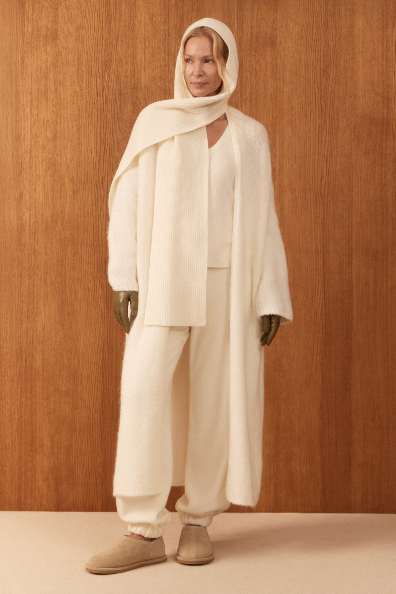 Трикотажный шарф-капюшон - функциональный аксессуар из смесовой шерсти с добавлением кашемира.