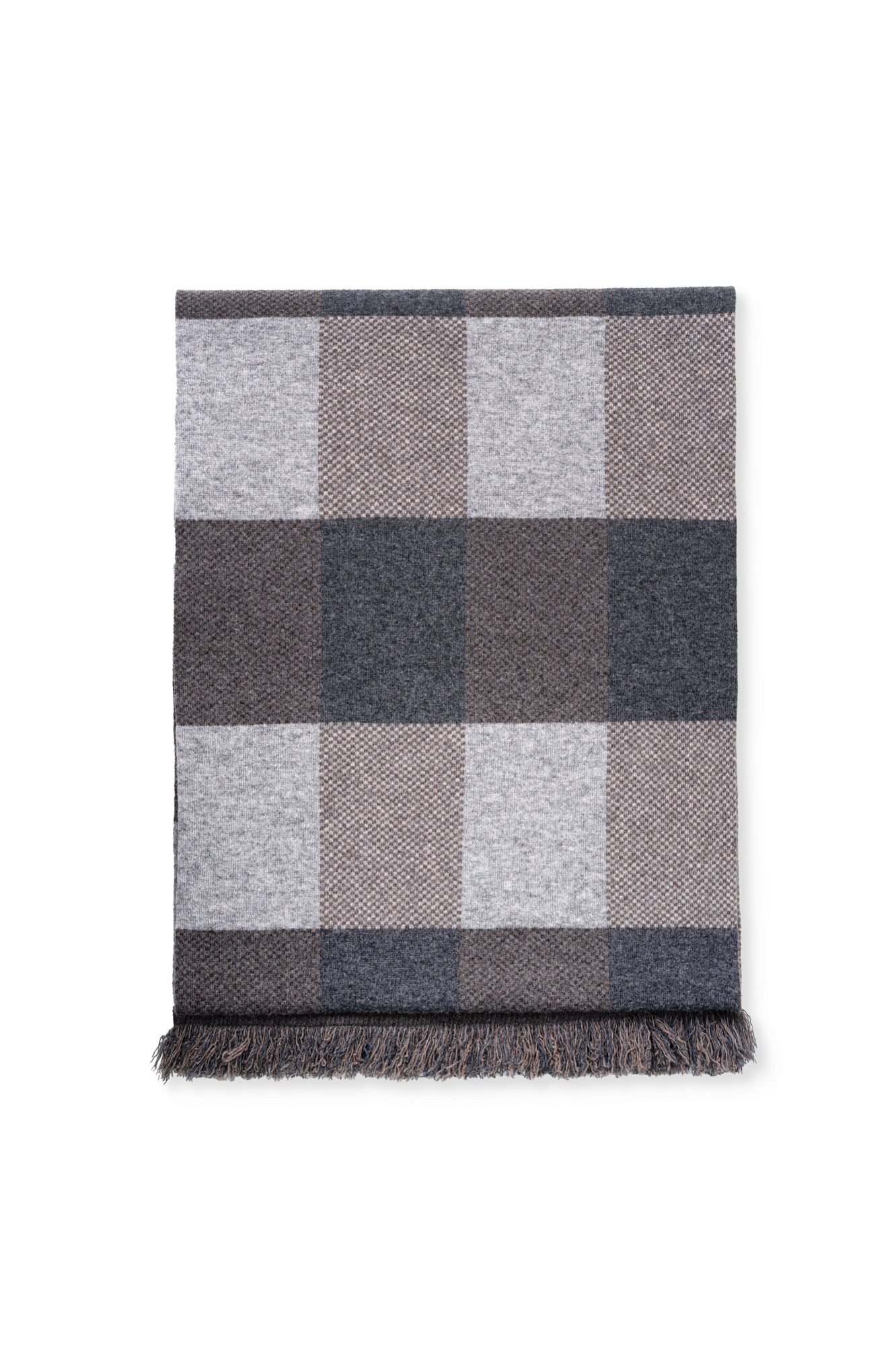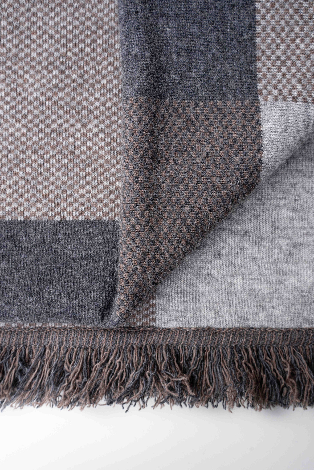 Трикотажный палантин из кашемира. Модель в клетку с бахромой по краям.