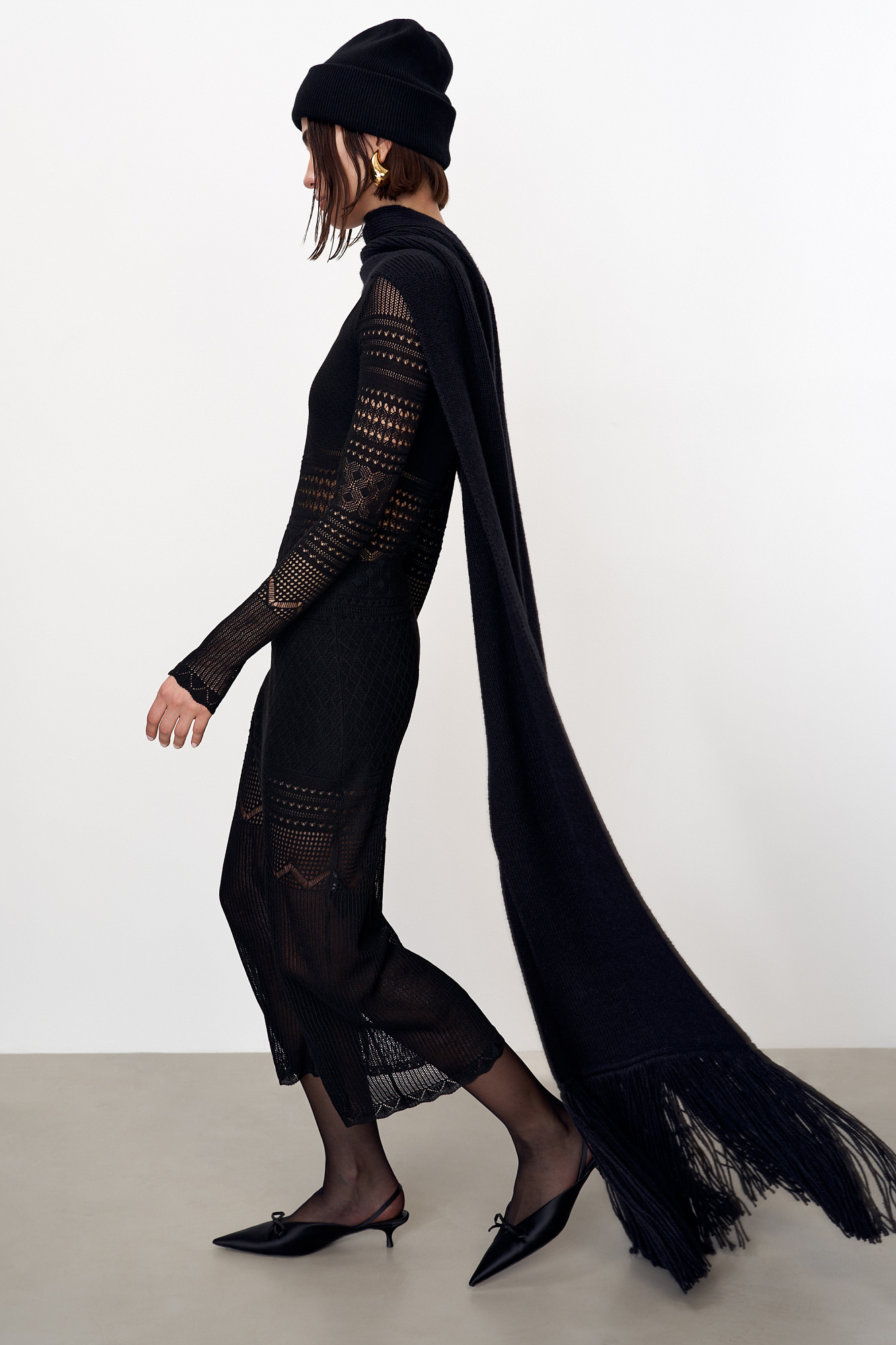 Длинный трикотажный шарф с бахромой из шерсти альпака.
