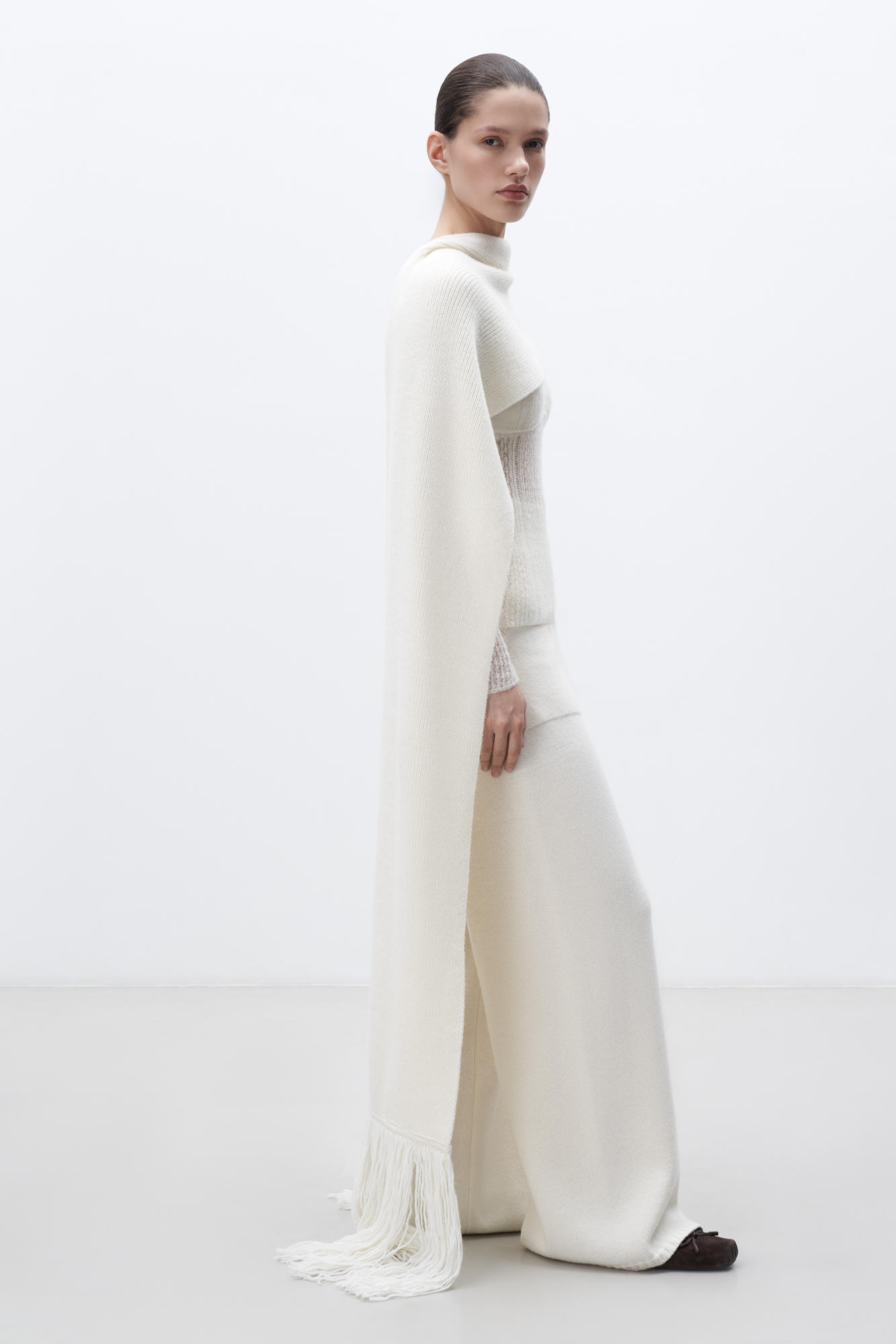 Длинный трикотажный шарф с бахромой из шерсти альпака.