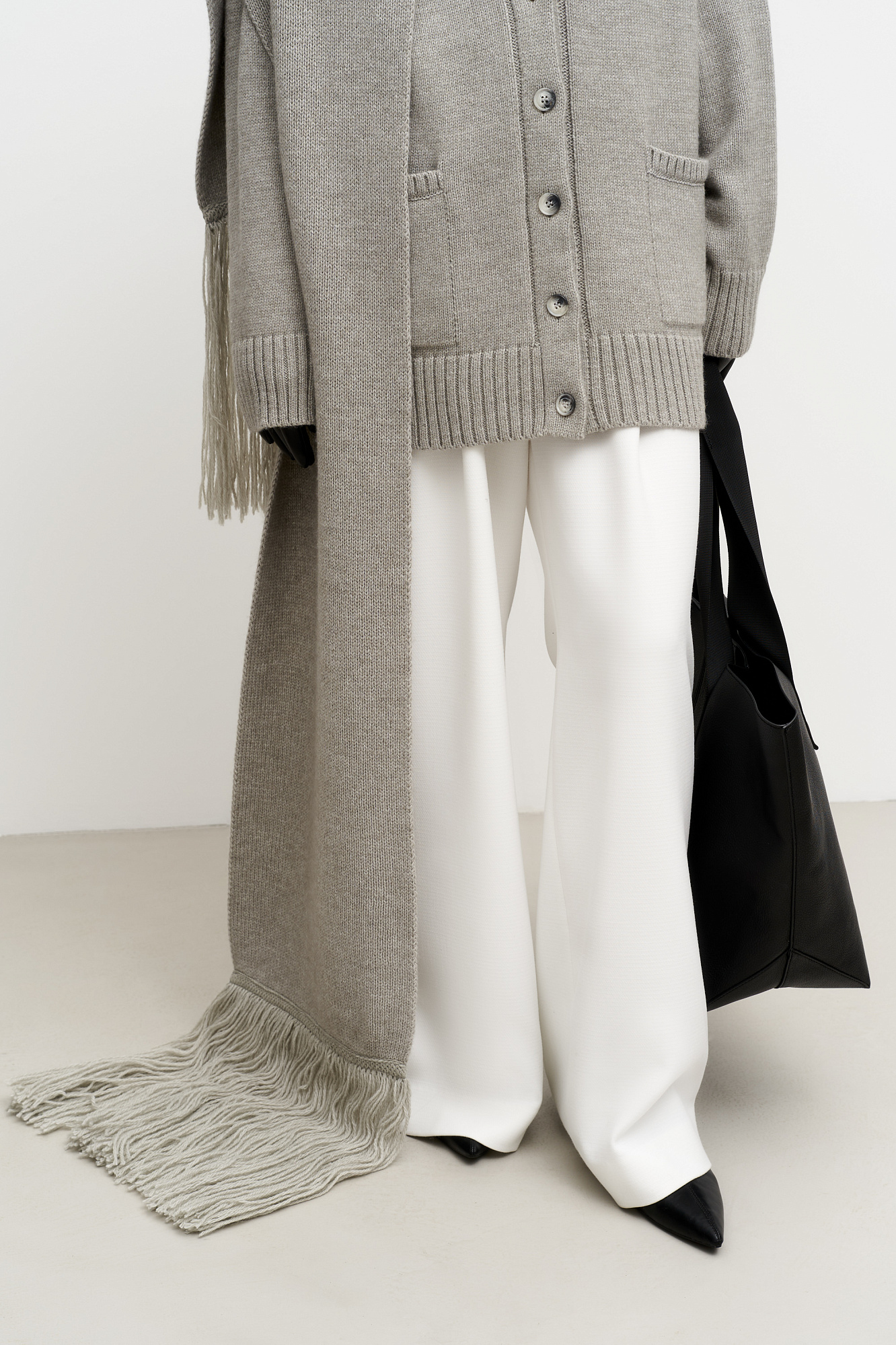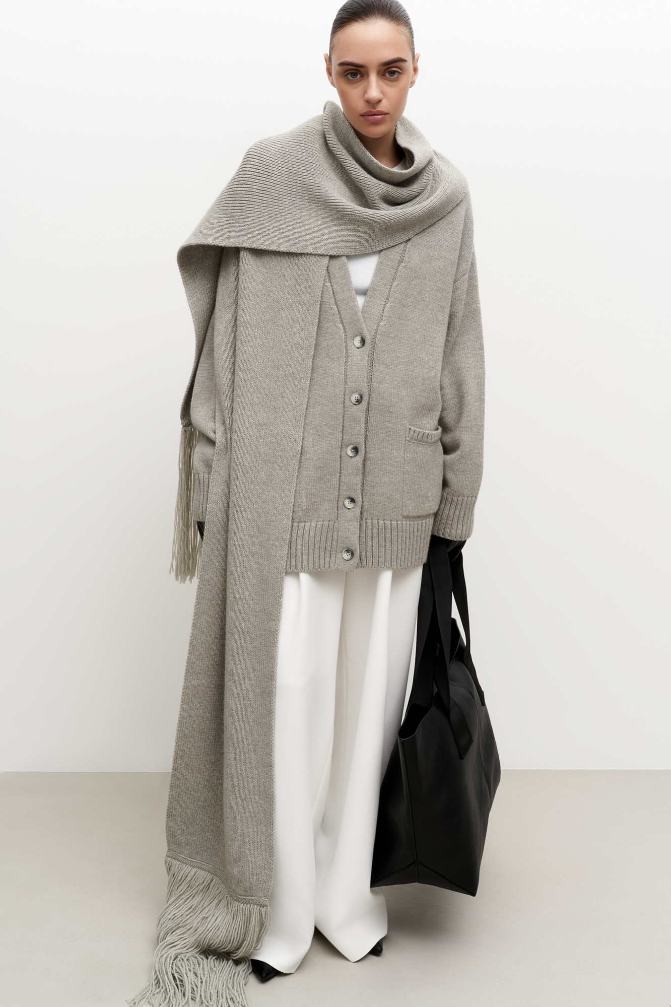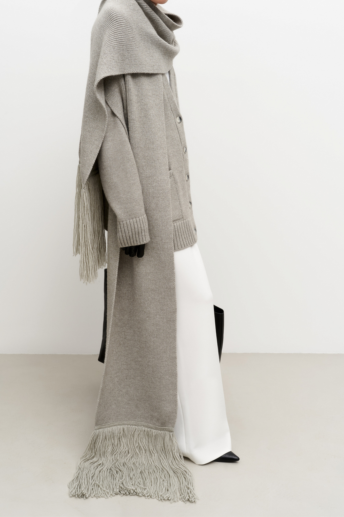 Длинный трикотажный шарф с бахромой из шерсти альпака.