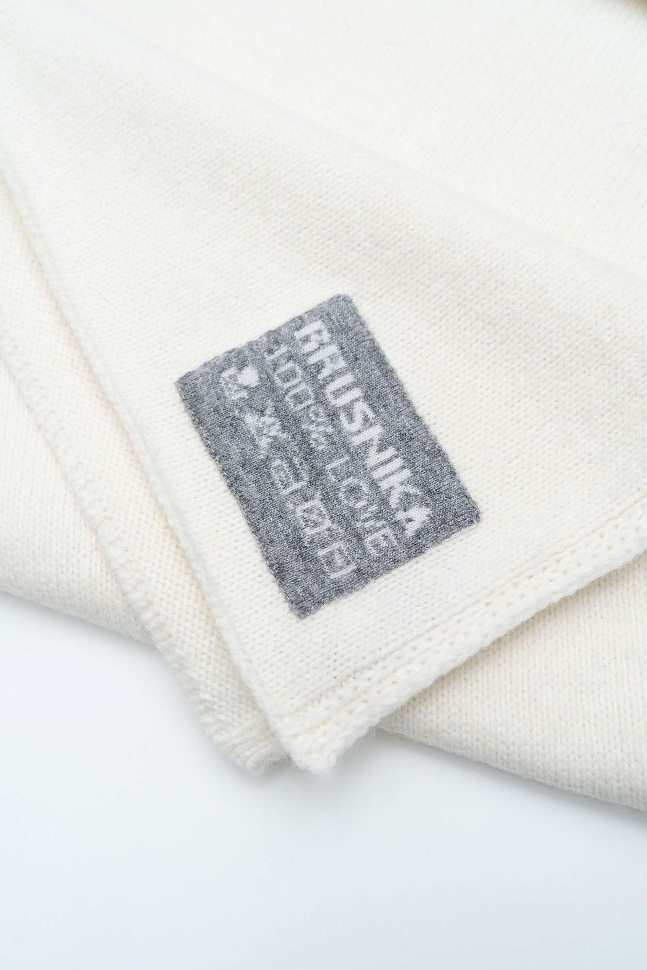 Трикотажный шарф из шерсти альпака с брендированным ярлыком.