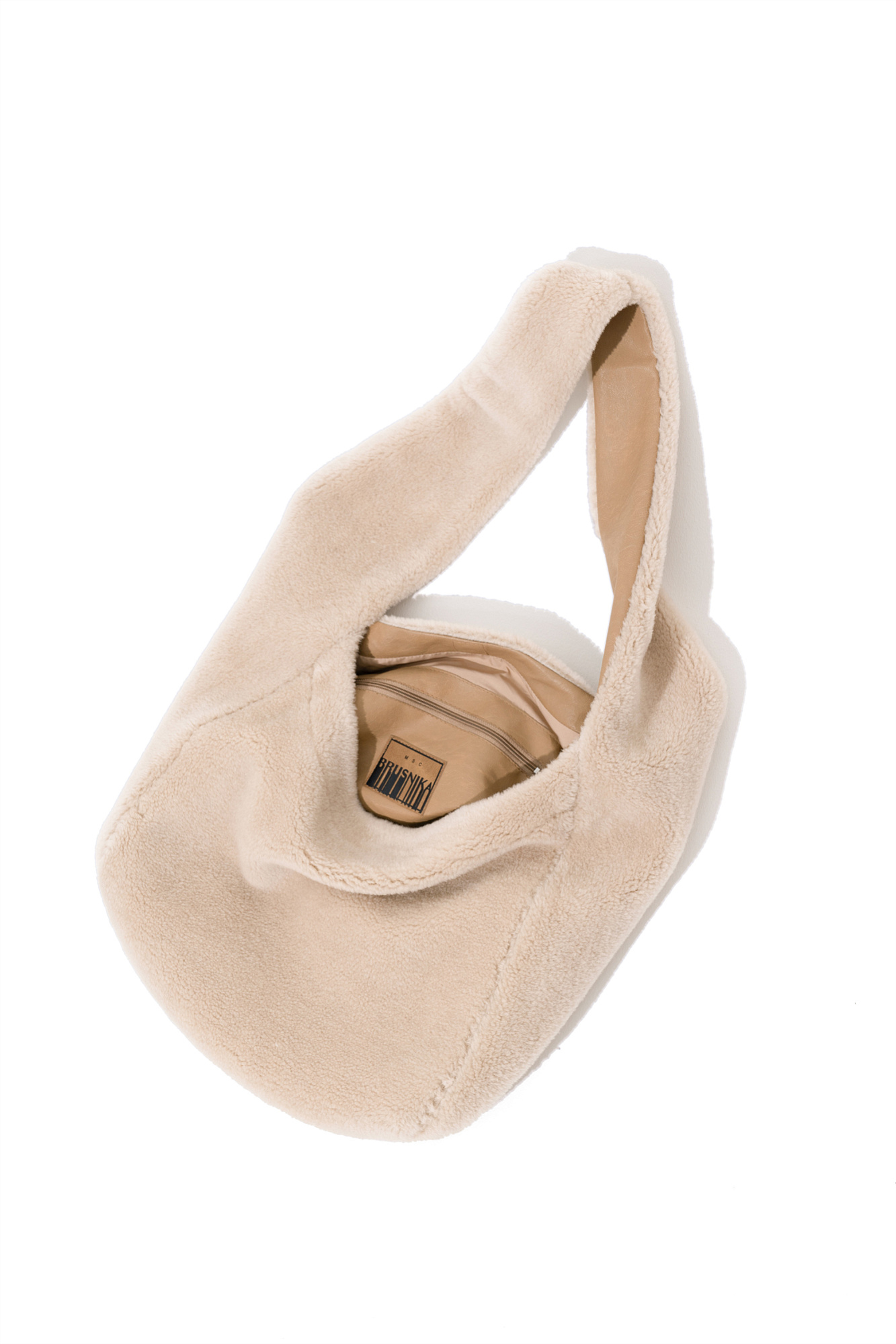 Сумка из экомеха с внутренним карманом и брендированным ярлыком.