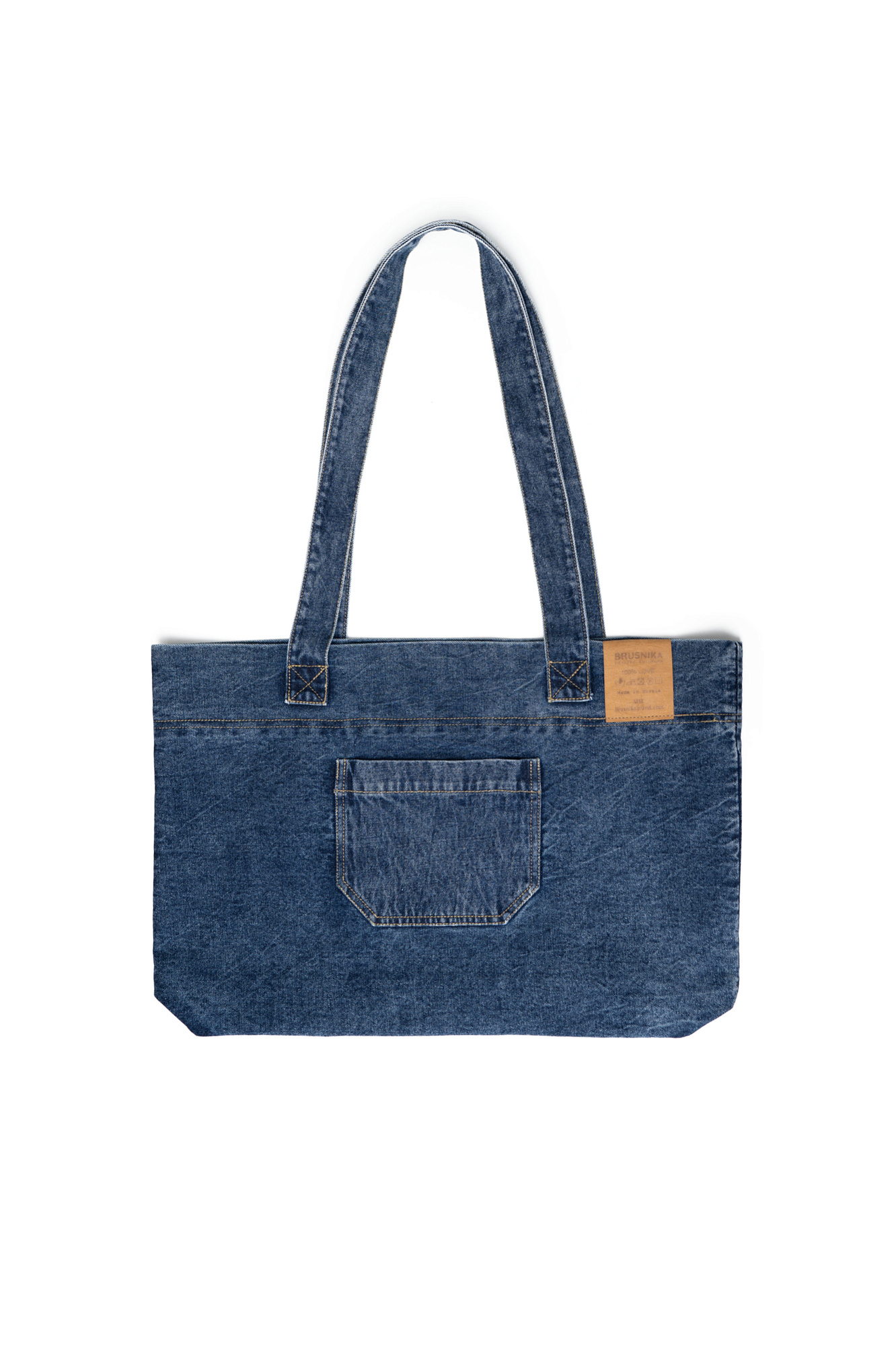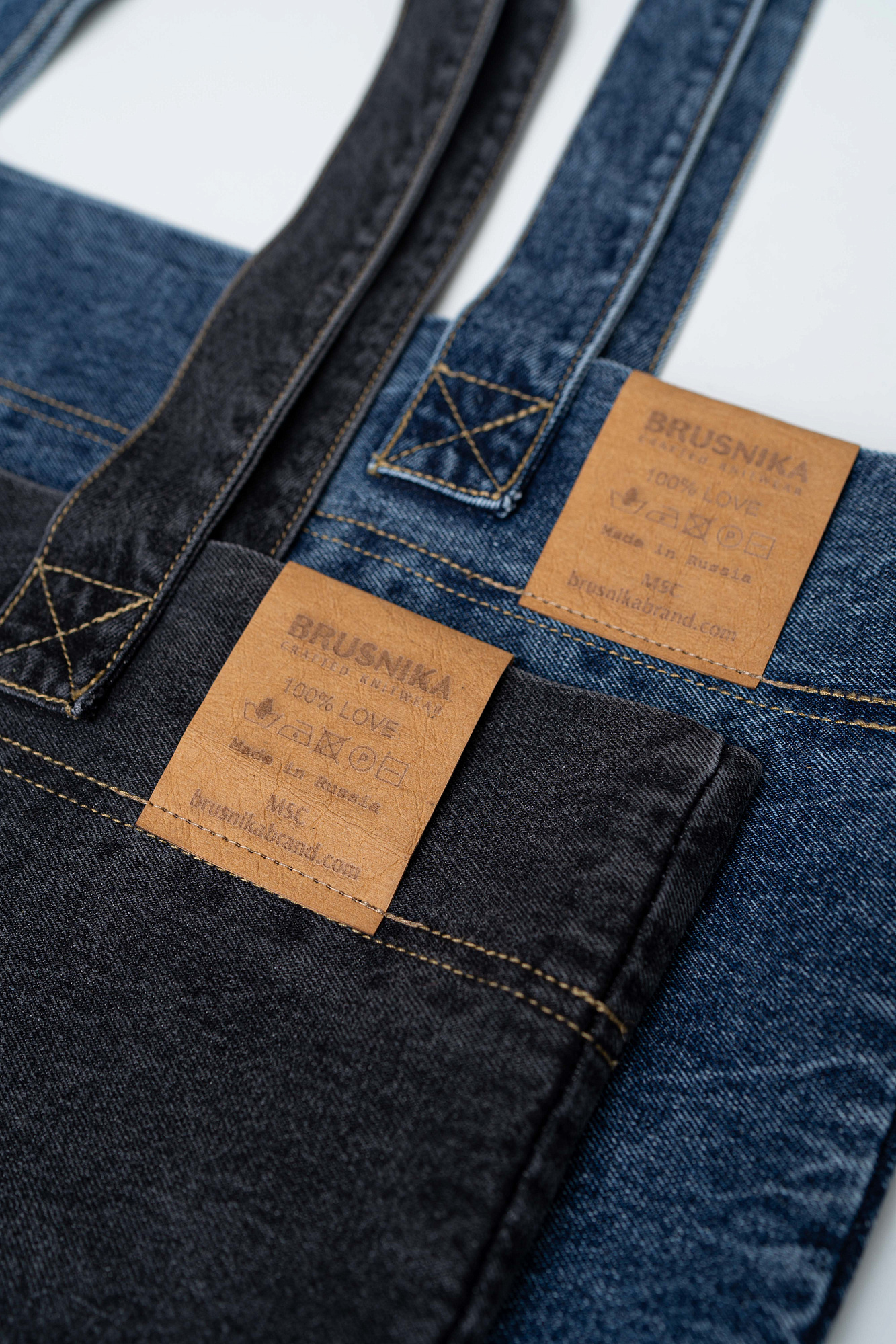 Джинсовая сумка из 100% хлопка без замка с накладным карманом и брендированным ярлыком.
