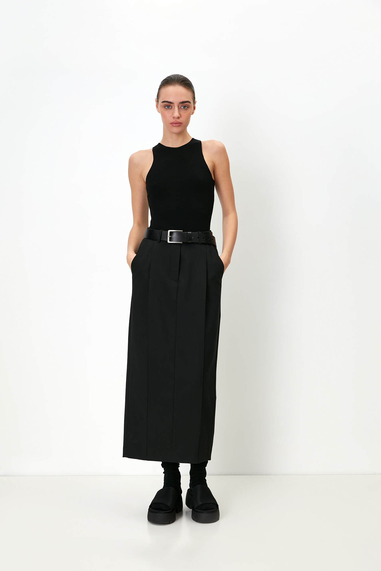 Трикотажное боди из вискозы. Модель приталенного силуэта без рукавов, с широкими лямками, круглым вырезом горловины и глубокой проймой. Застежка на бельевые крючки.