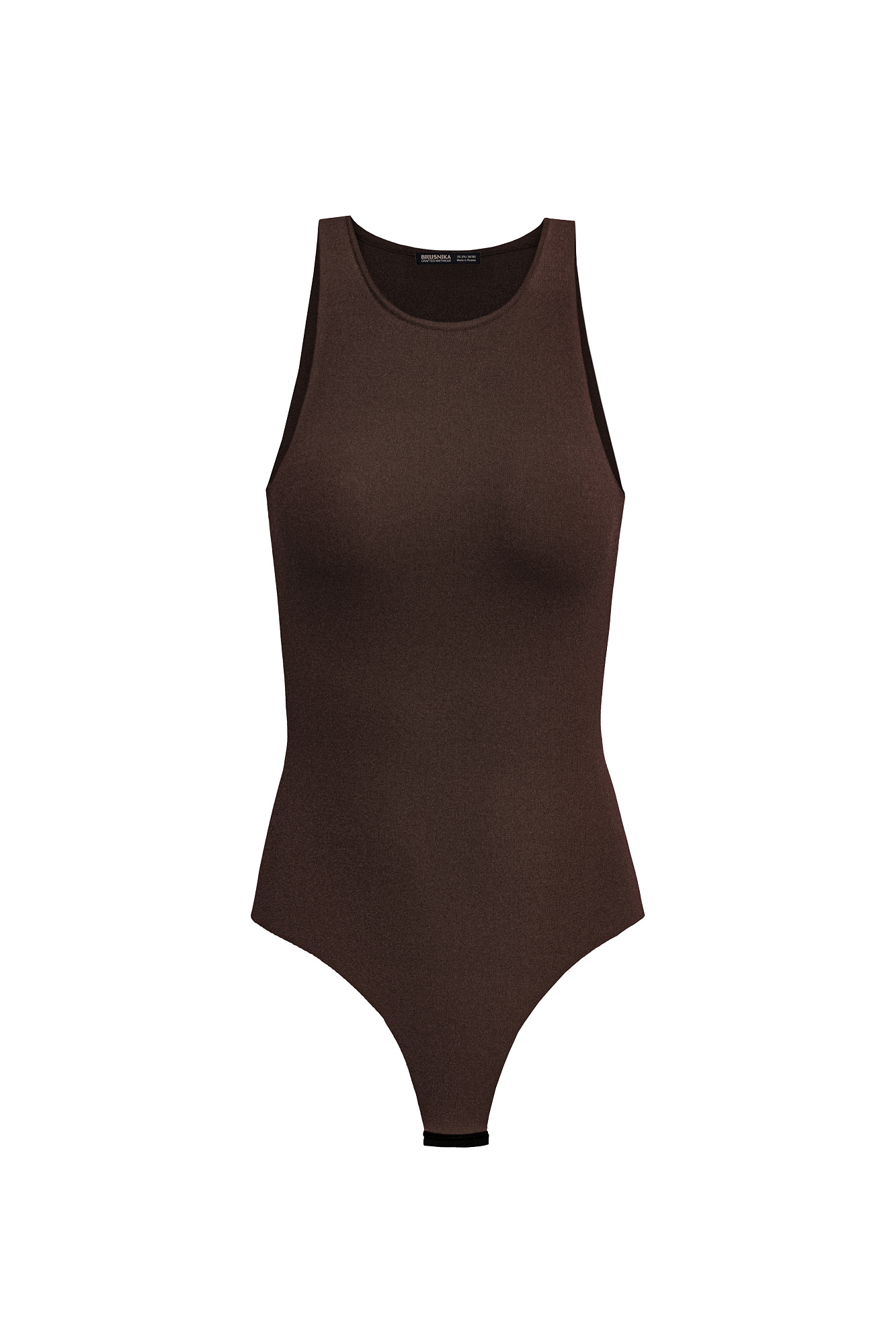 Трикотажное боди из вискозы. Модель приталенного силуэта без рукавов, с широкими лямками, круглым вырезом горловины и глубокой проймой. Застежка на бельевые крючки.