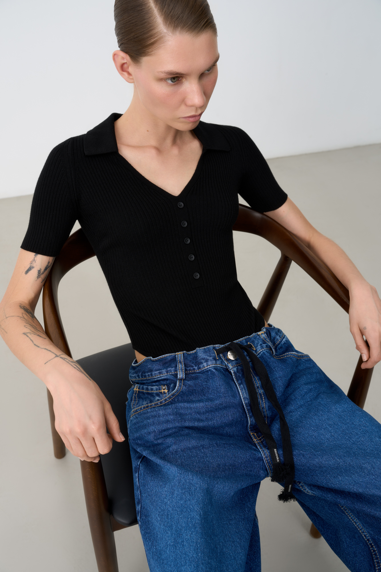 Боди с коротким рукавом и отложным воротником