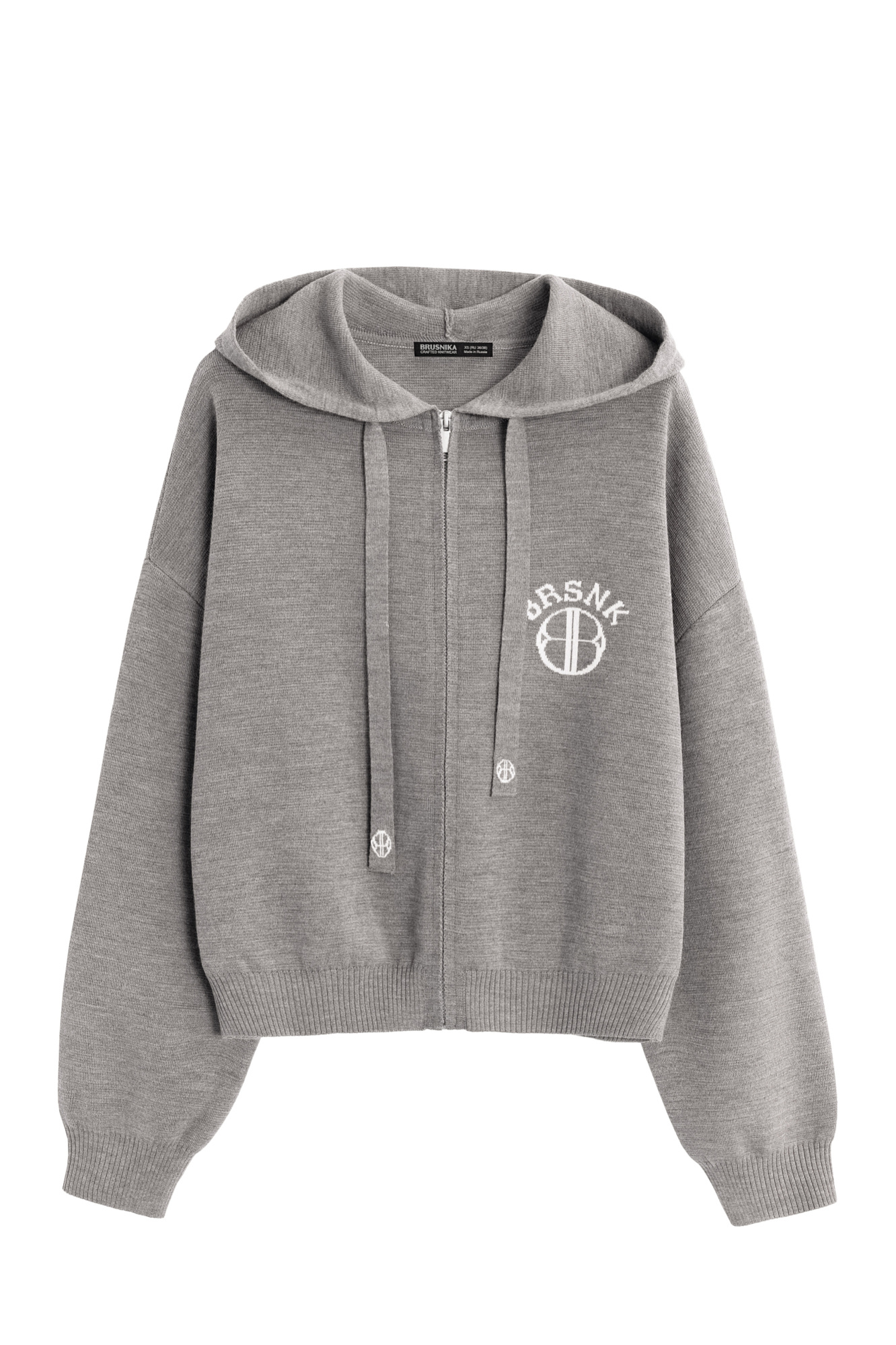 Трикотажный бомбер в спортивном стиле из шерсти с добавлением акрила. Модель свободного силуэта со спущенной линией плеча и капюшоном на кулиске. Низ изделия и манжеты рукавов выполнены на эластичной резинке. Изделие декорировано брендированным жаккардом на груди и шнурке. Застежка на молнию.