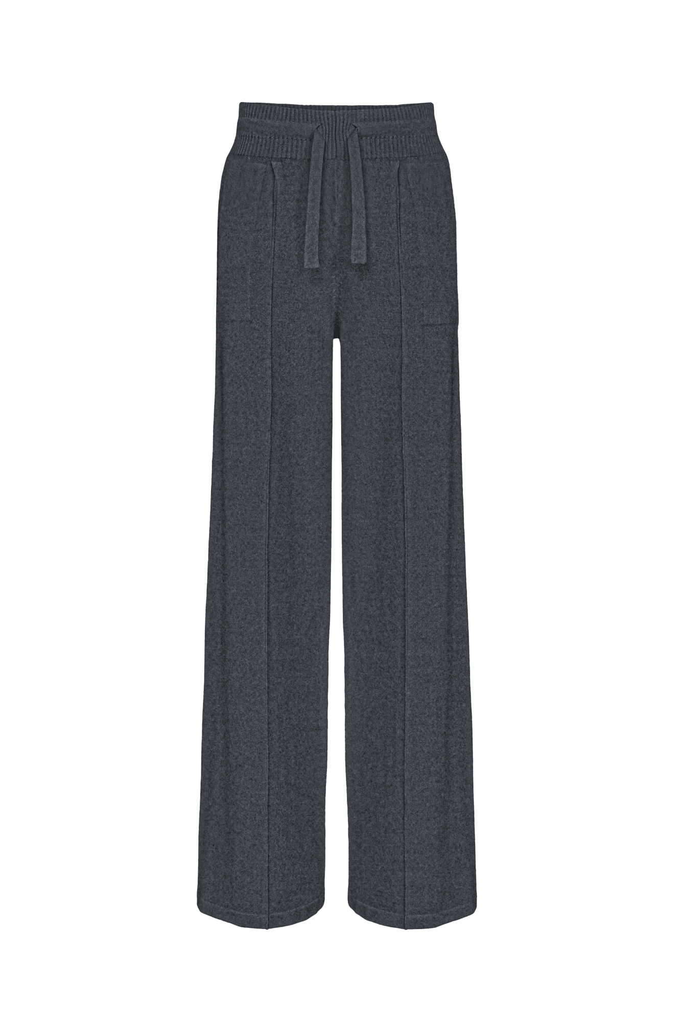 Трикотажные брюки из смесовой шерсти. Модель свободного силуэта со средней посадкой, боковыми карманами и стрелками. Эластичный пояс на кулиске в рубчик.