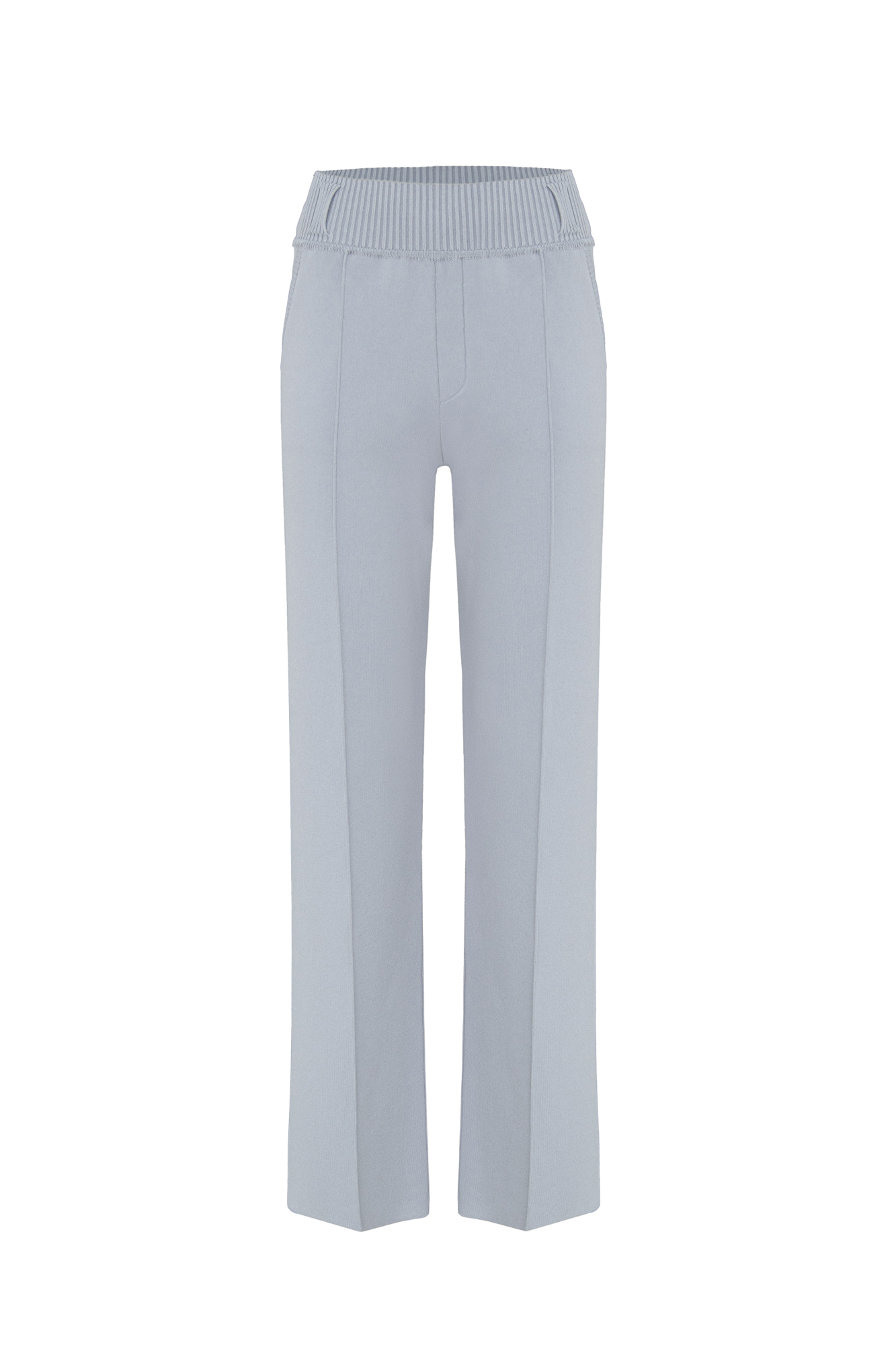 Классические брюки прямого кроя из вискозы со стрелками и поясом-резинкой со шлевками. Для создания комплекта сочетайте их с двубортным жакетом в тон.