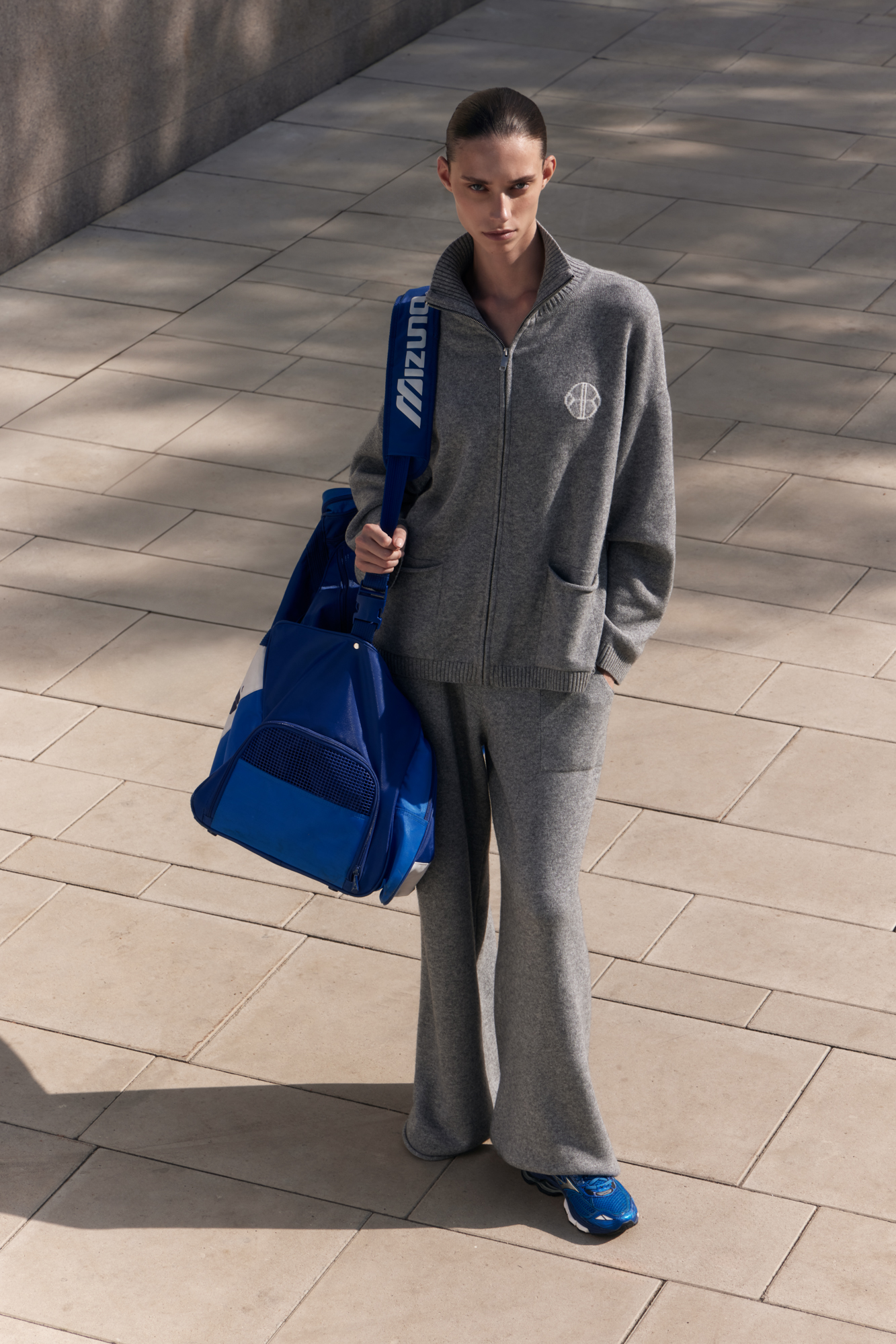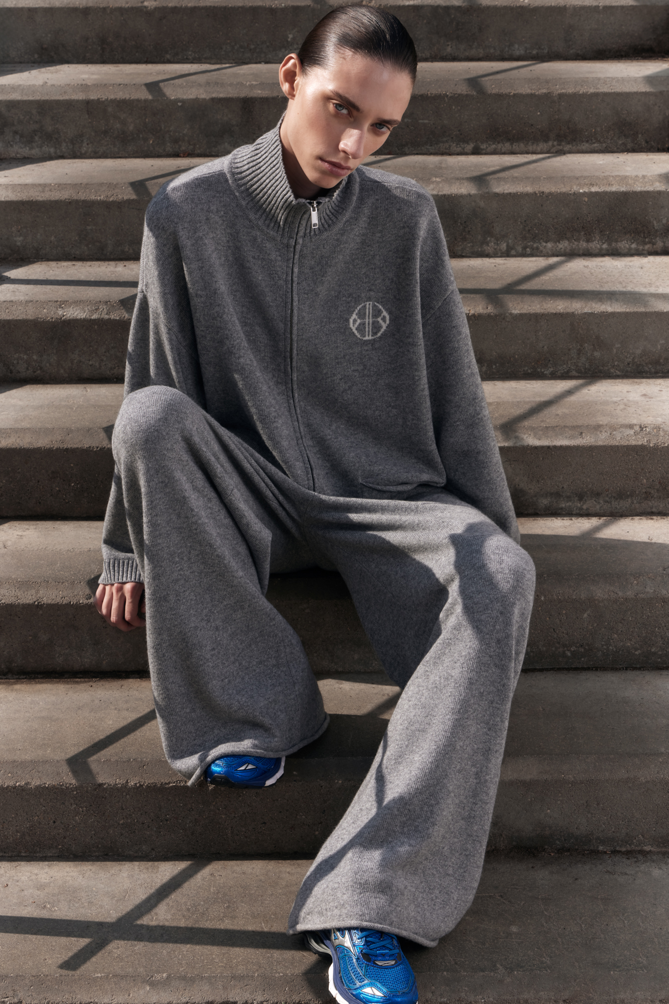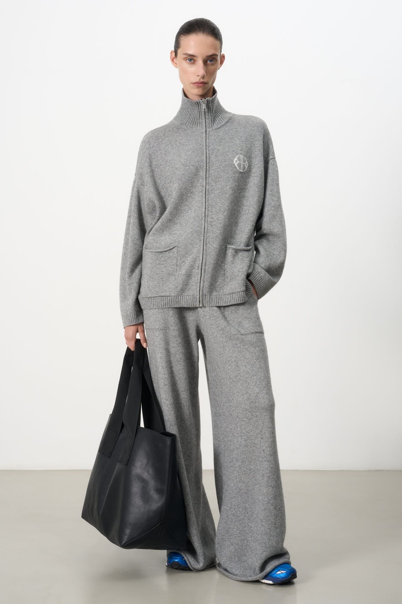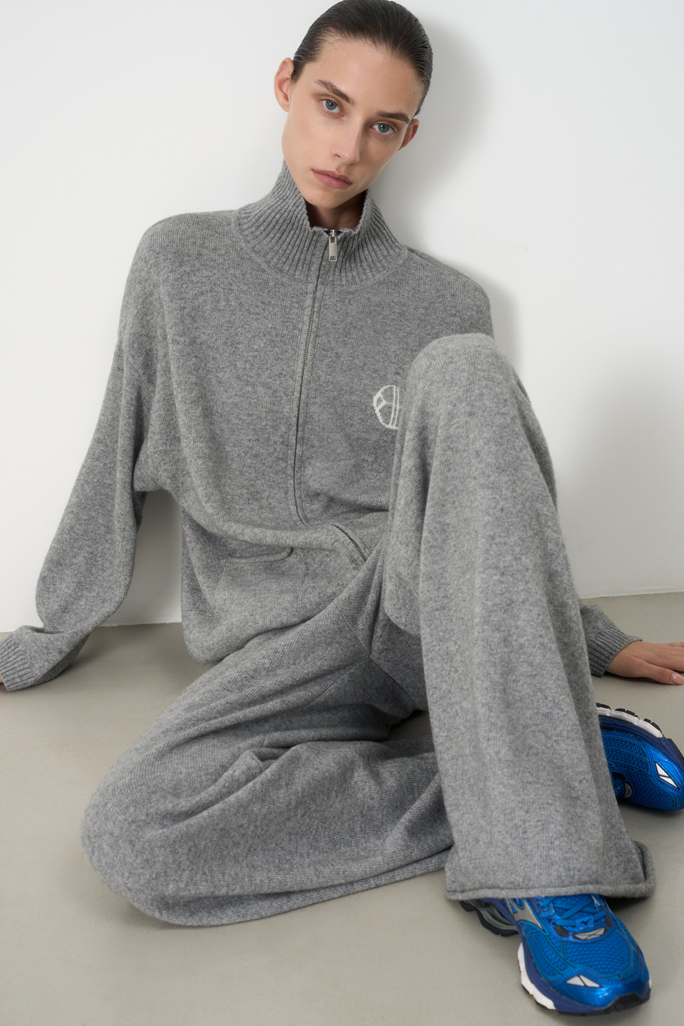 Трикотажные брюки из кашемира и шерсти. Модель прямого силуэта с накладными карманами и эластичным поясом в рубчик на кулиске. Дополнить образ можно бомбером.