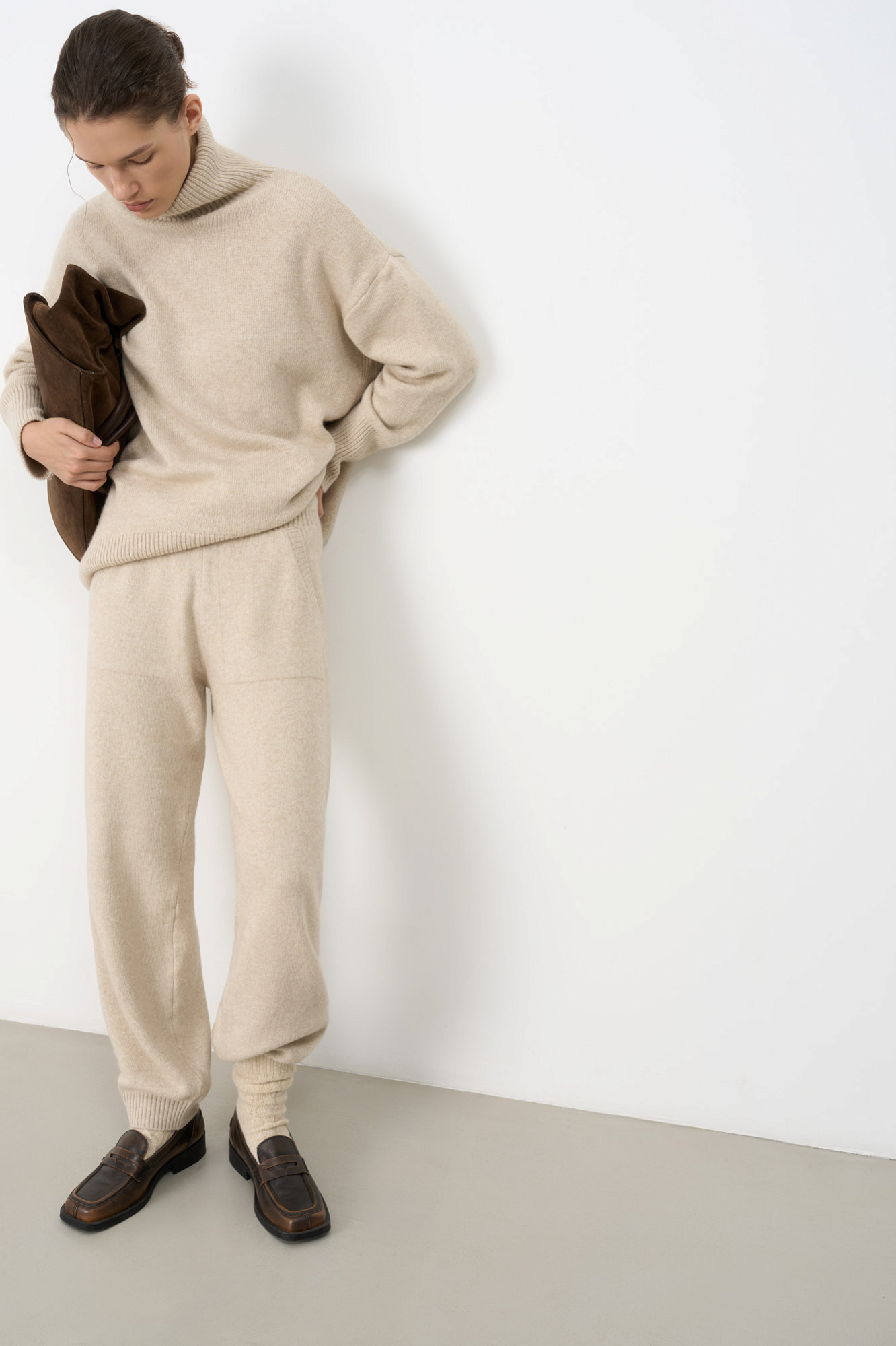 Трикотажные брюки-джоггеры из кашемира и шерсти