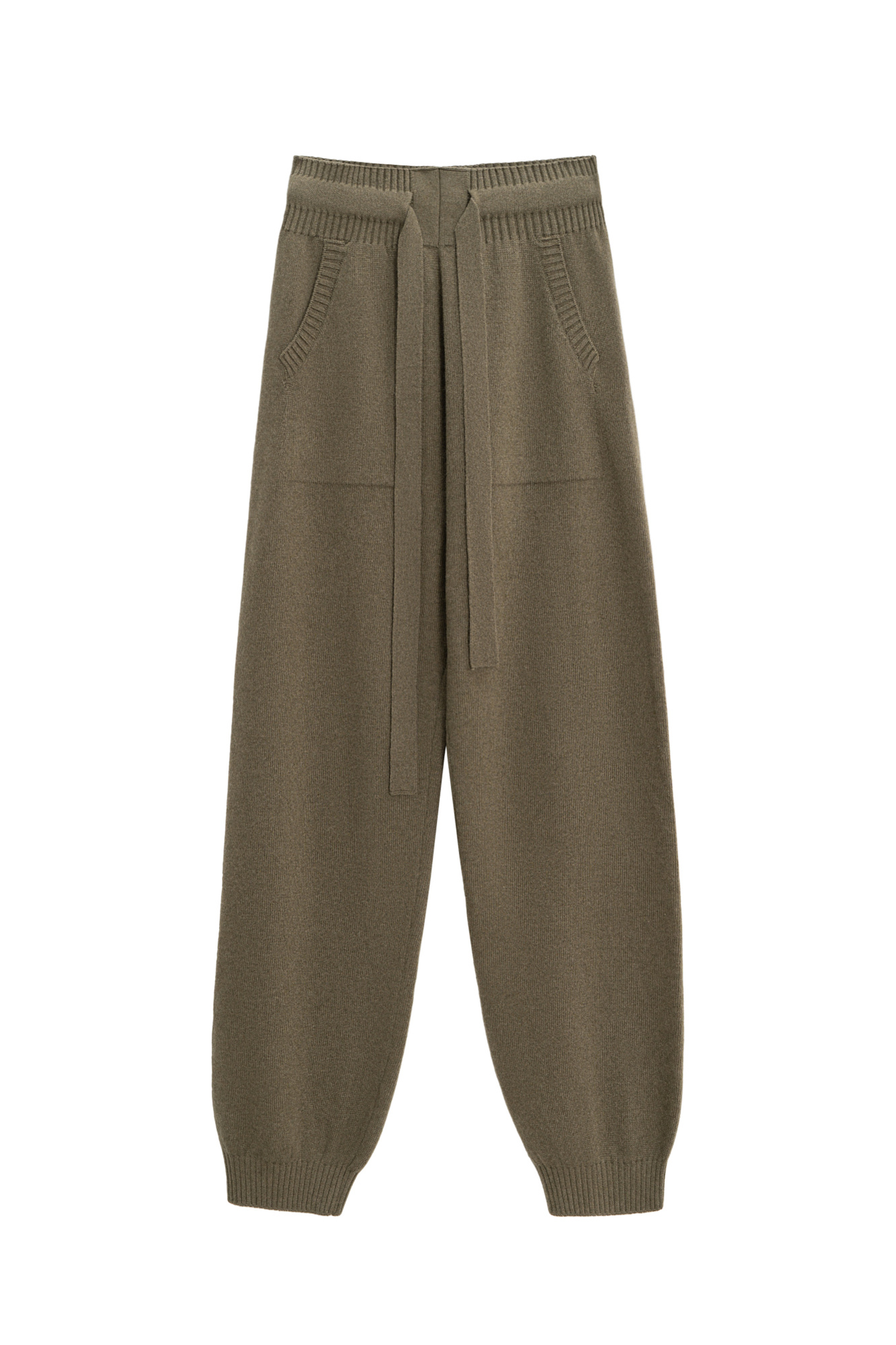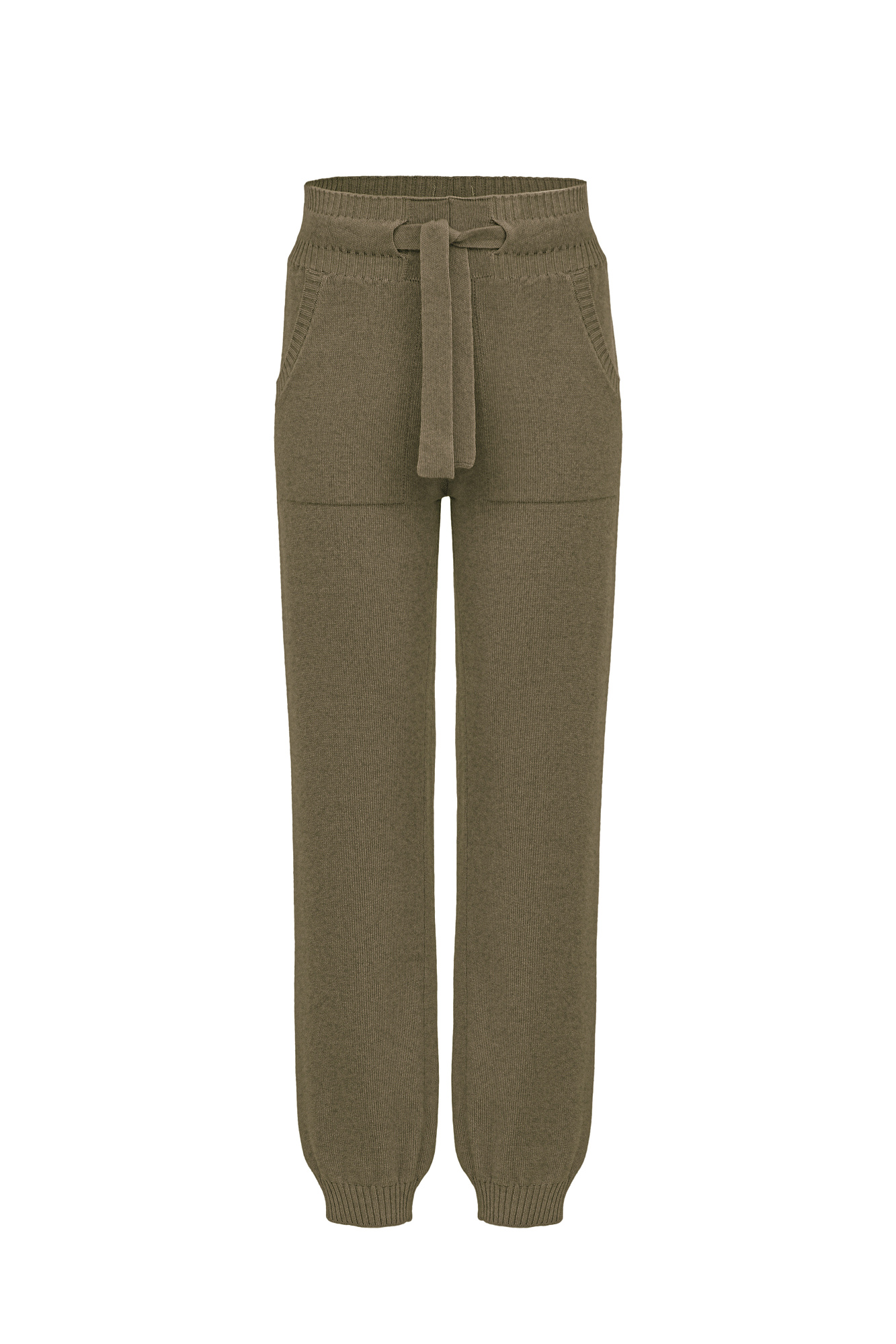 Трикотажные брюки-джоггеры из кашемира и шерсти. Модель с широким эластичным поясом на кулиске, манжетами на резинке и боковыми карманами.