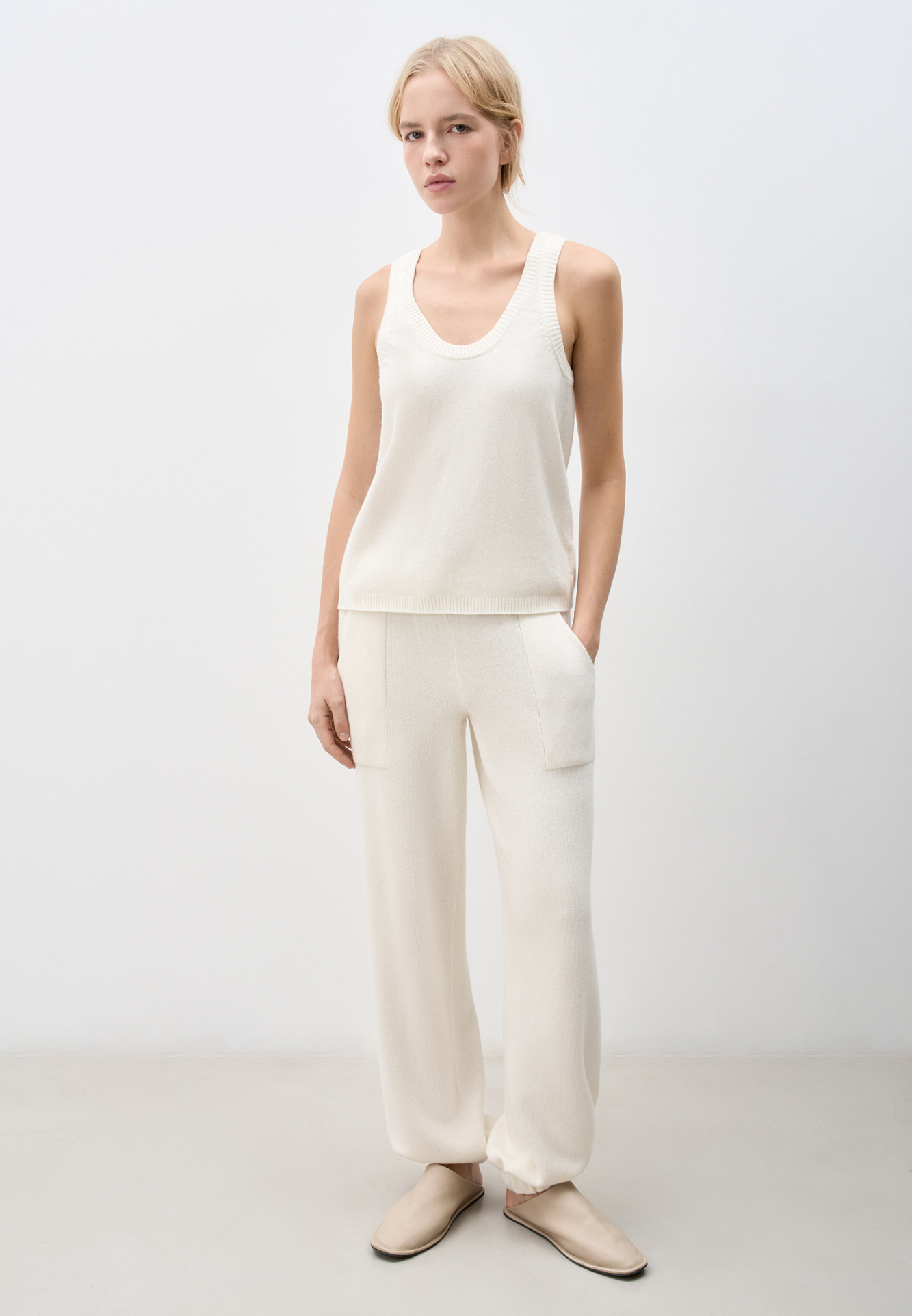 Трикотажные брюки-бананы из кашемира и шерсти