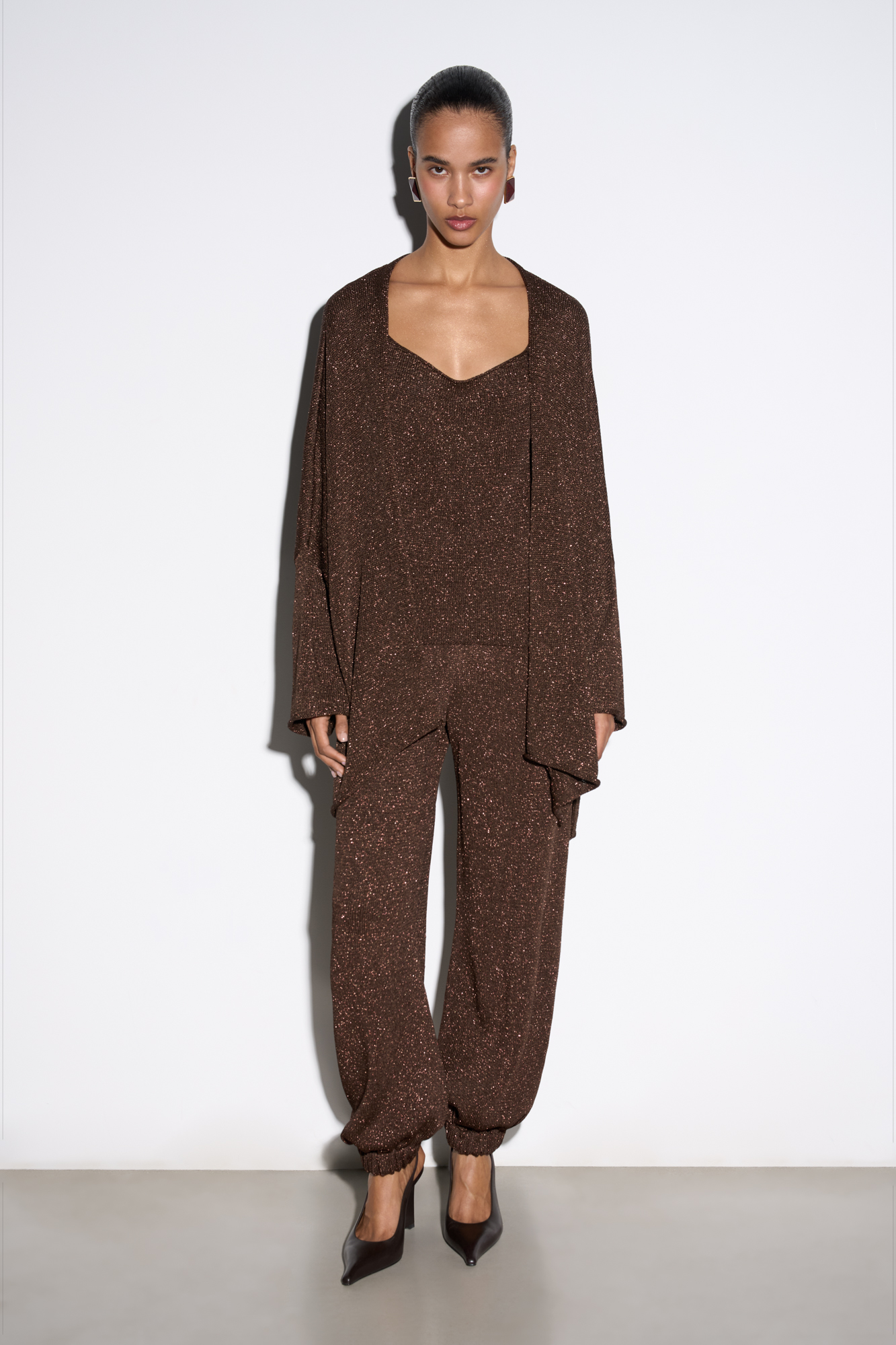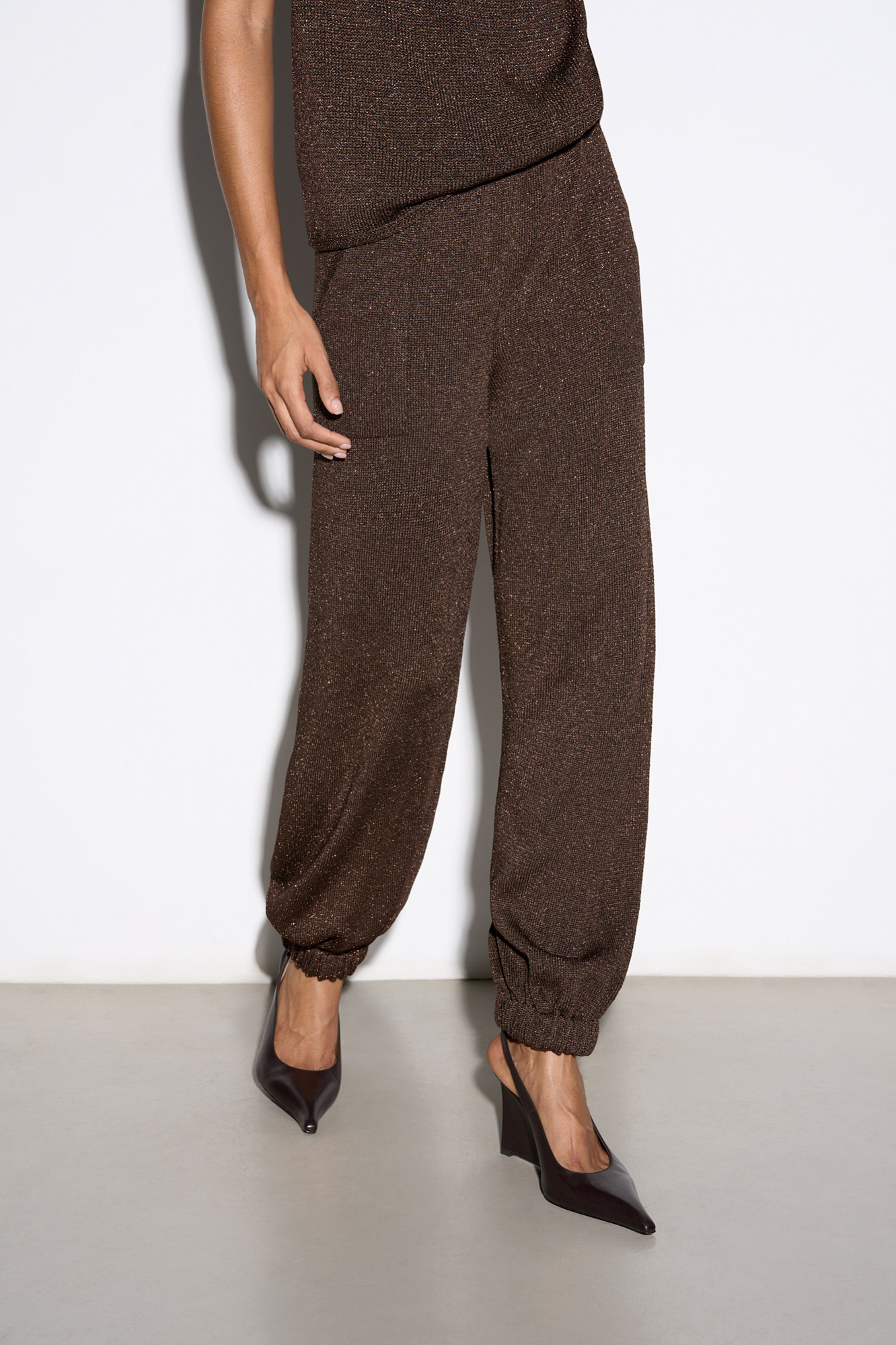 Трикотажные брюки-джоггеры с люрексом