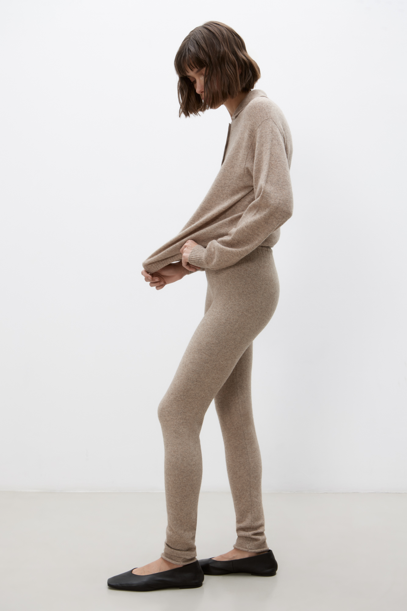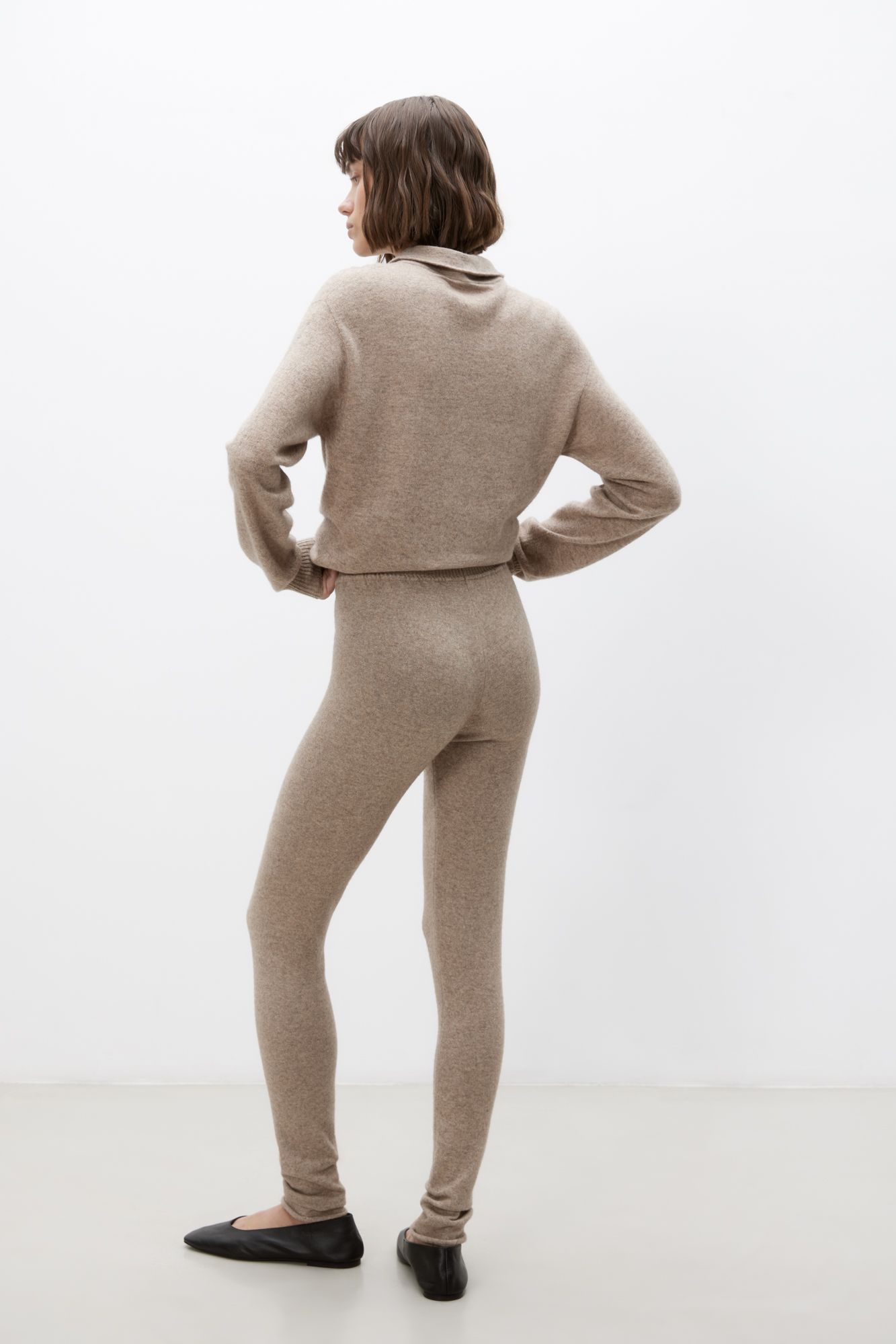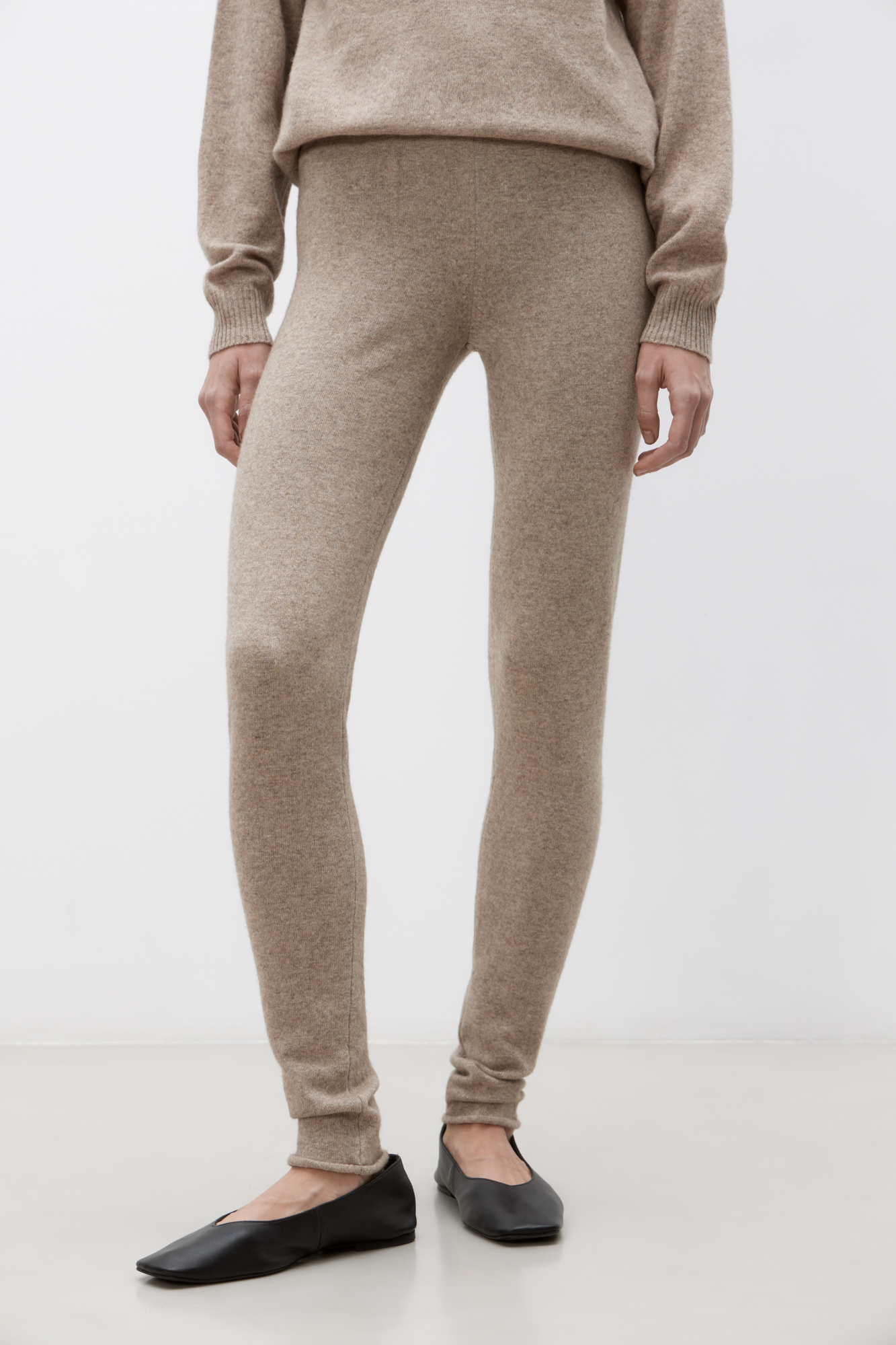 Трикотажные леггинсы из шерсти с добавлением кашемира. Модель приталенного силуэта с эластичным поясом в рубчик.