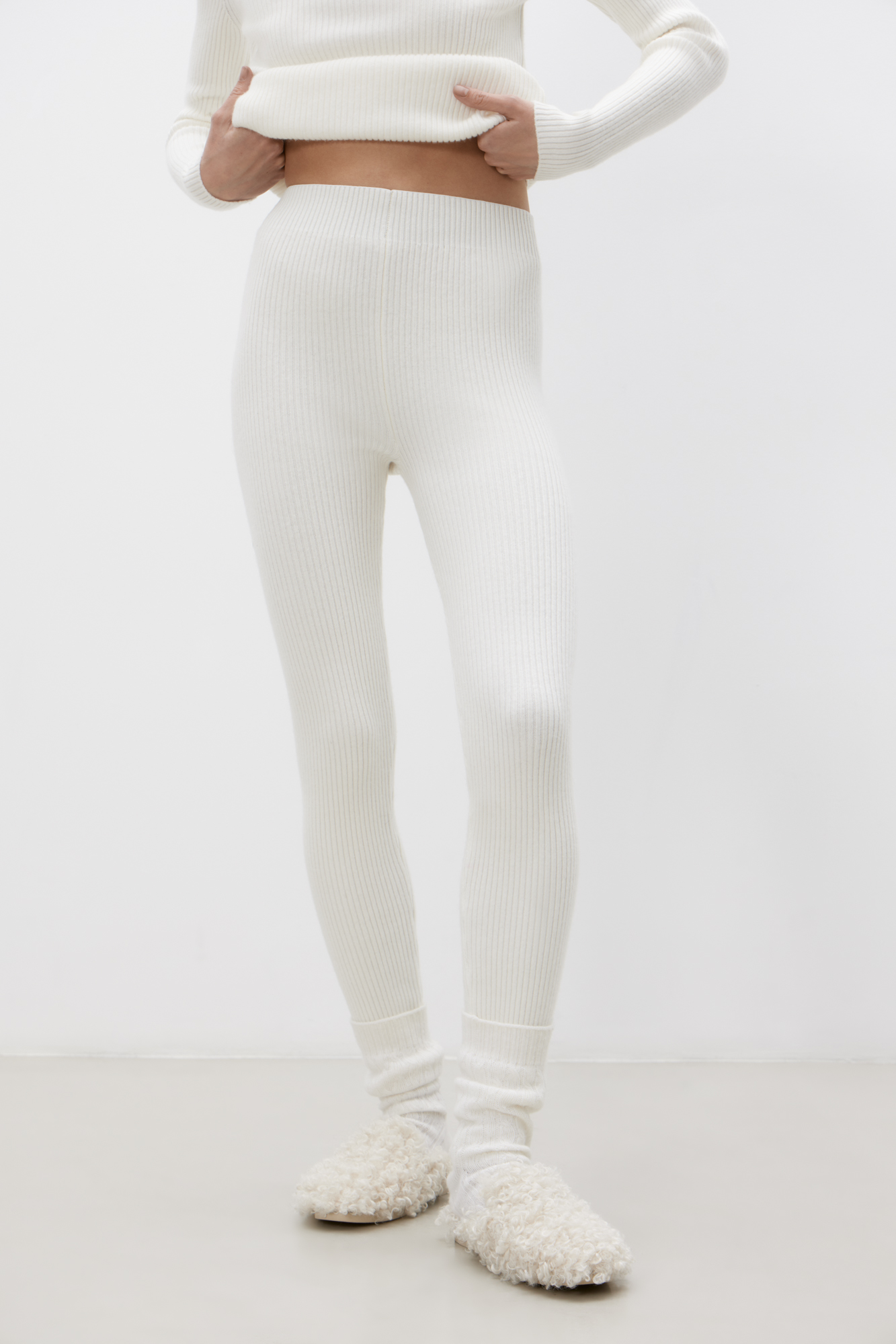 Легинсы из кашемира и шерсти в рубчик