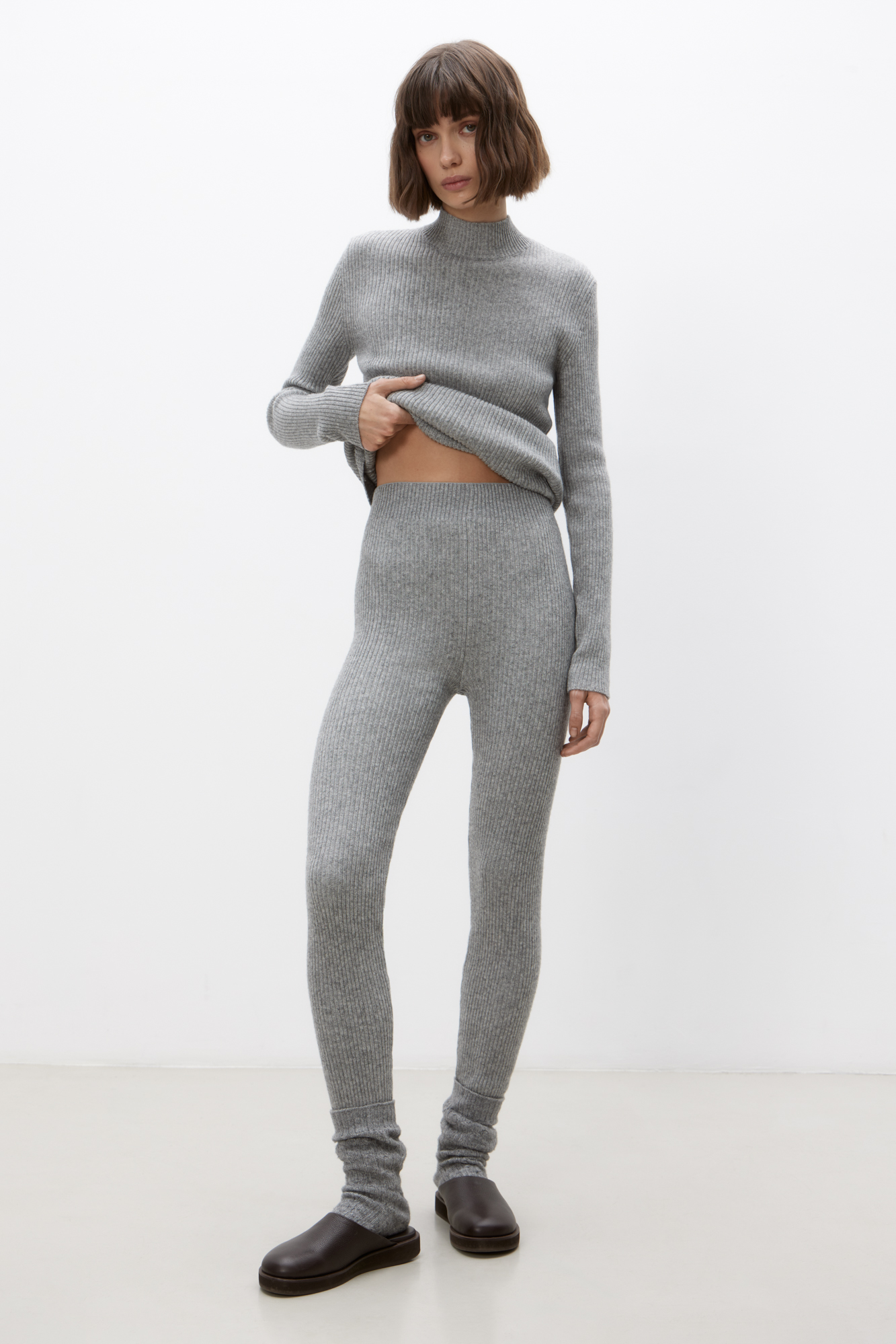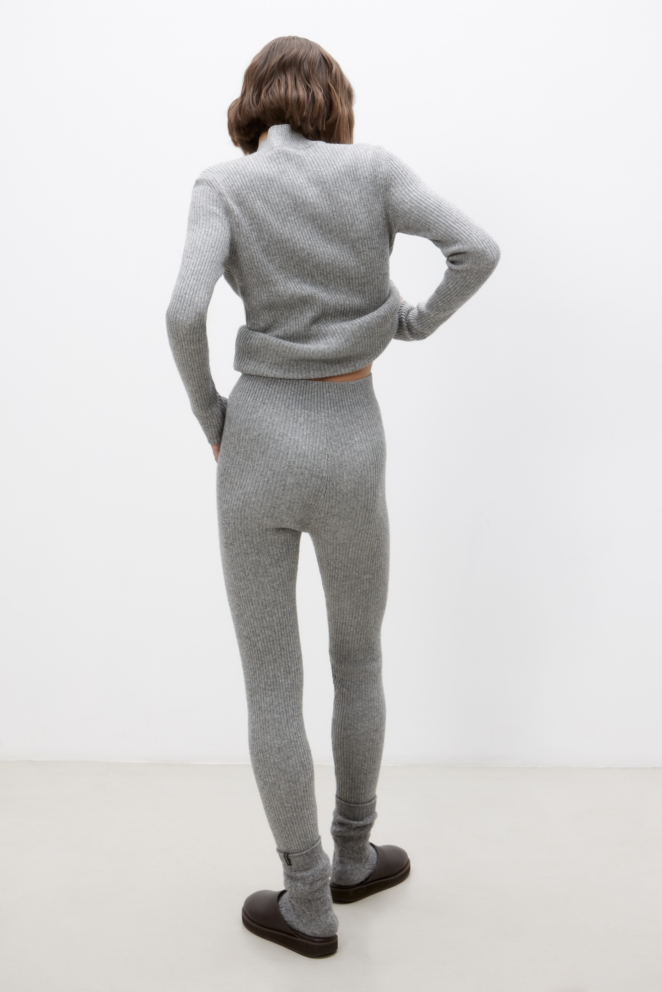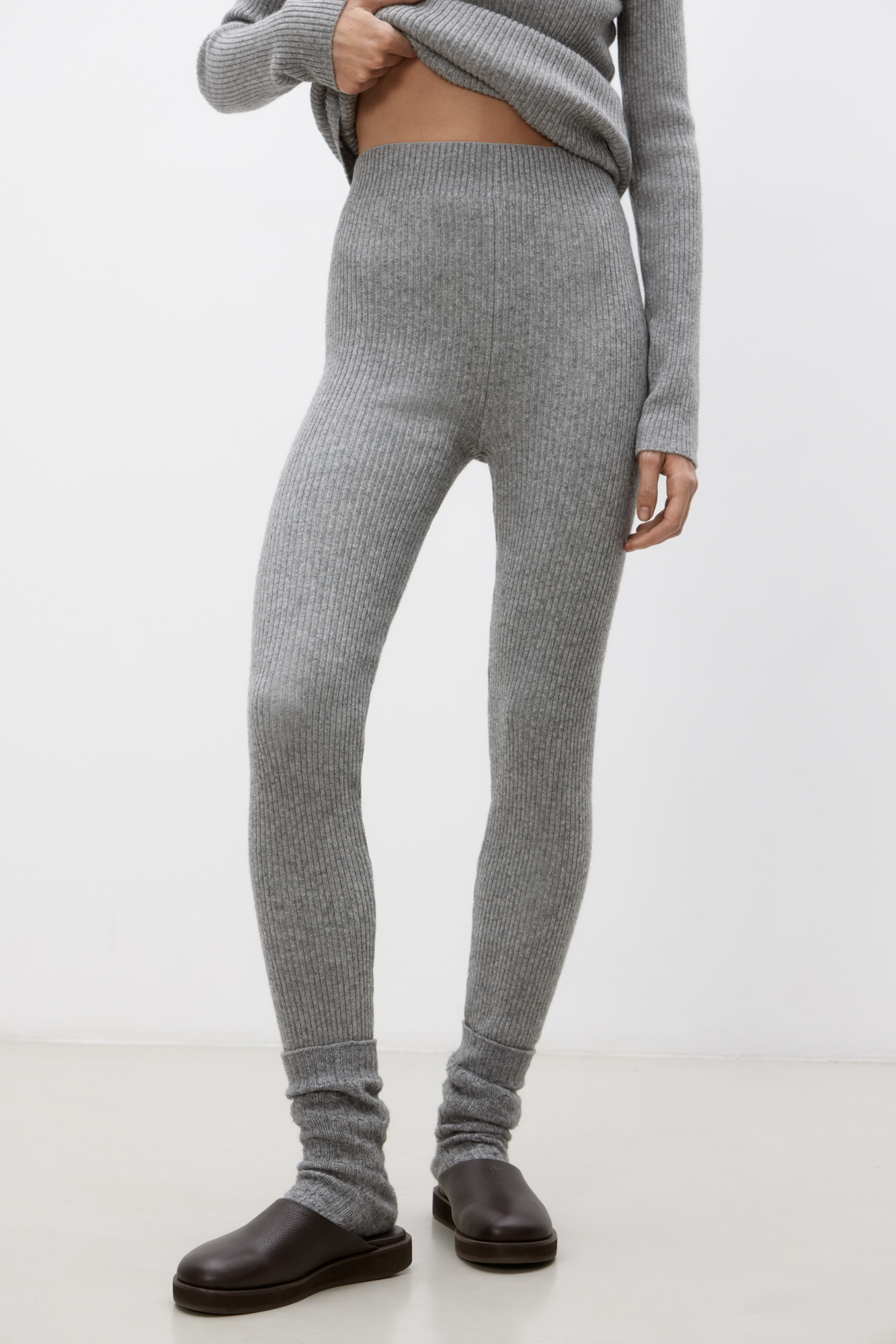 Трикотажные леггинсы из шерсти с добавлением кашемира. Модель выполнена в рубчик.