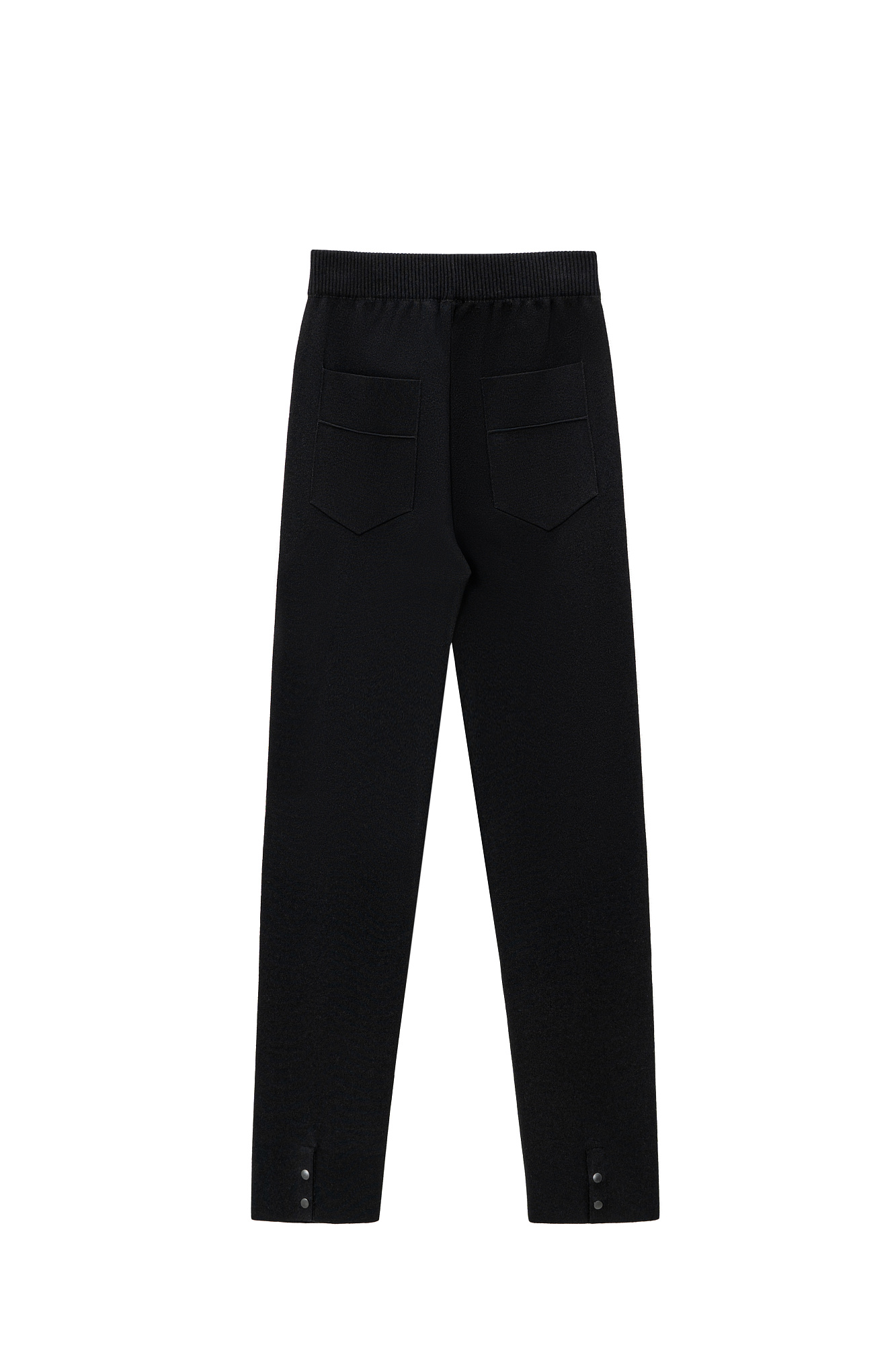 Трикотажные брюки из вискозы 7/8 длины. Модель прямого кроя с разрезами сзади и кнопками. Изделие с эластичным поясом на резинке.