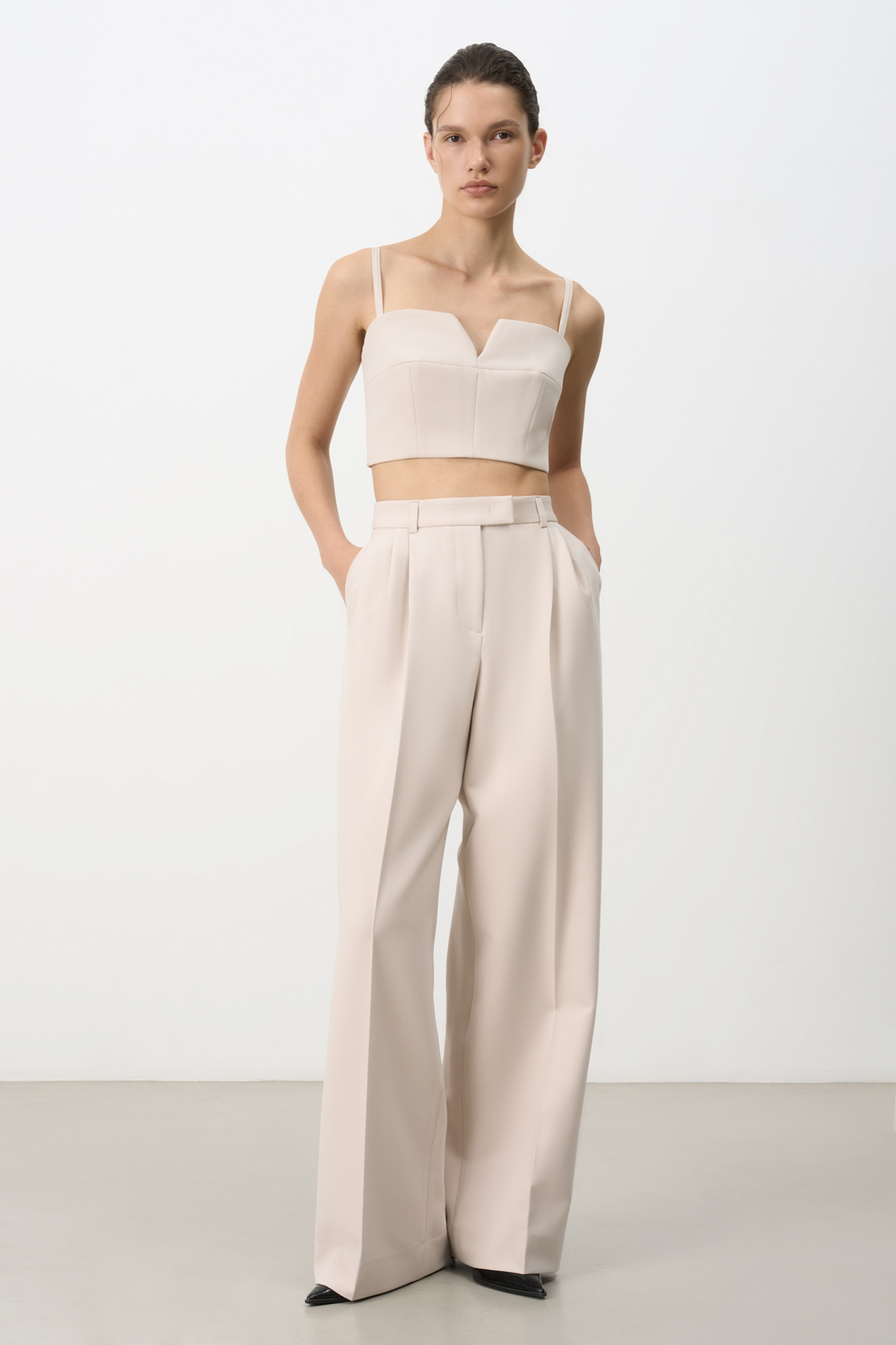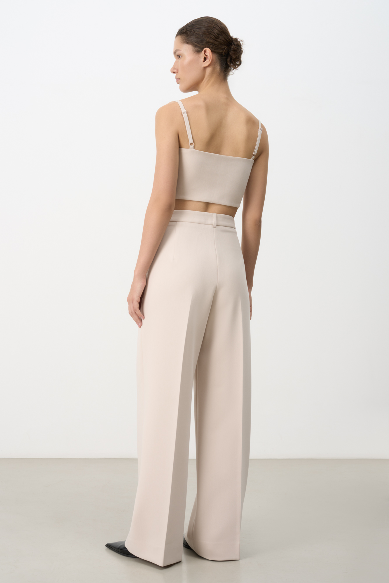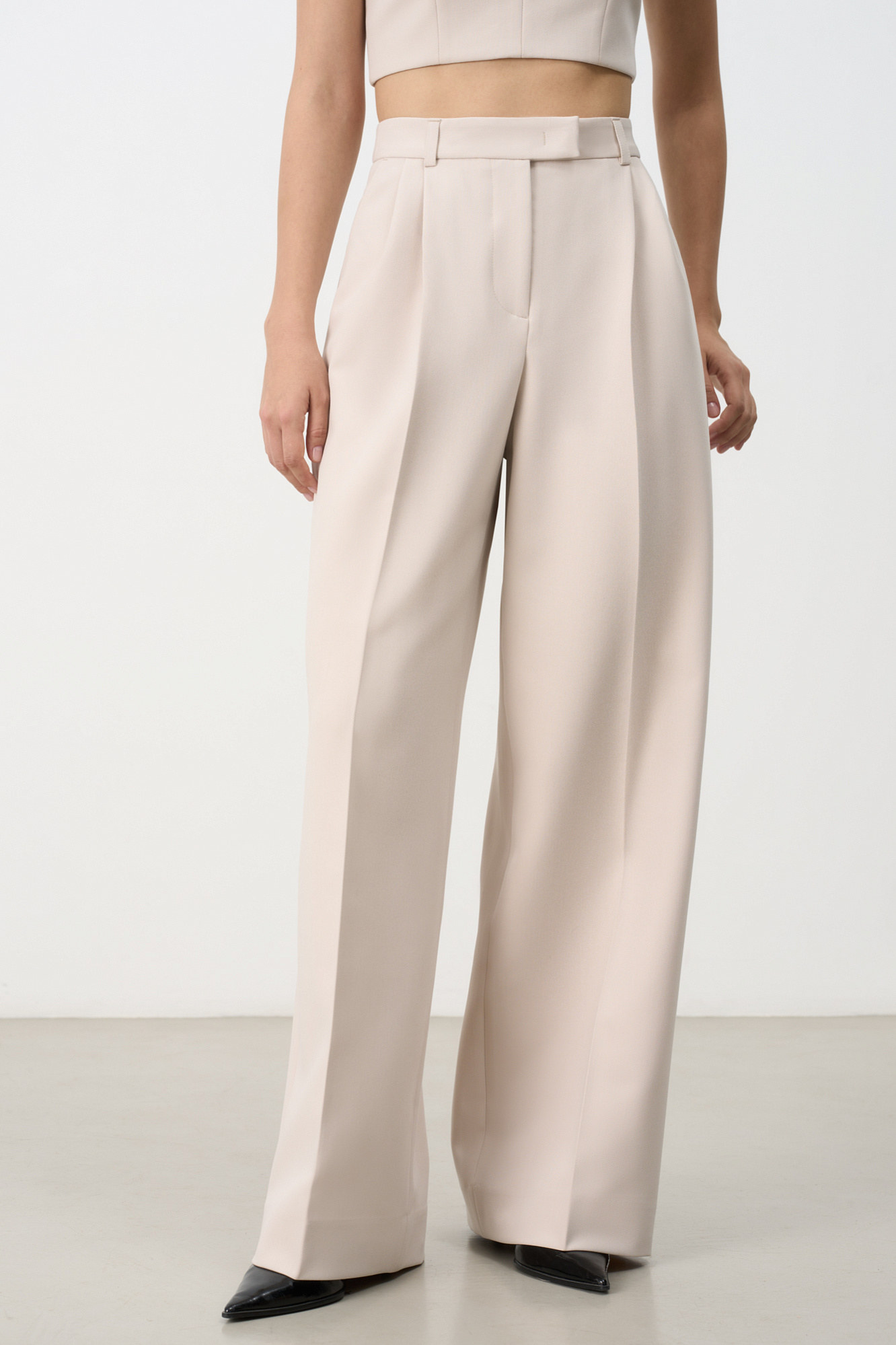 Классические брюки палаццо из вискозы. Модель прямого кроя с потайной застежкой на молнию.