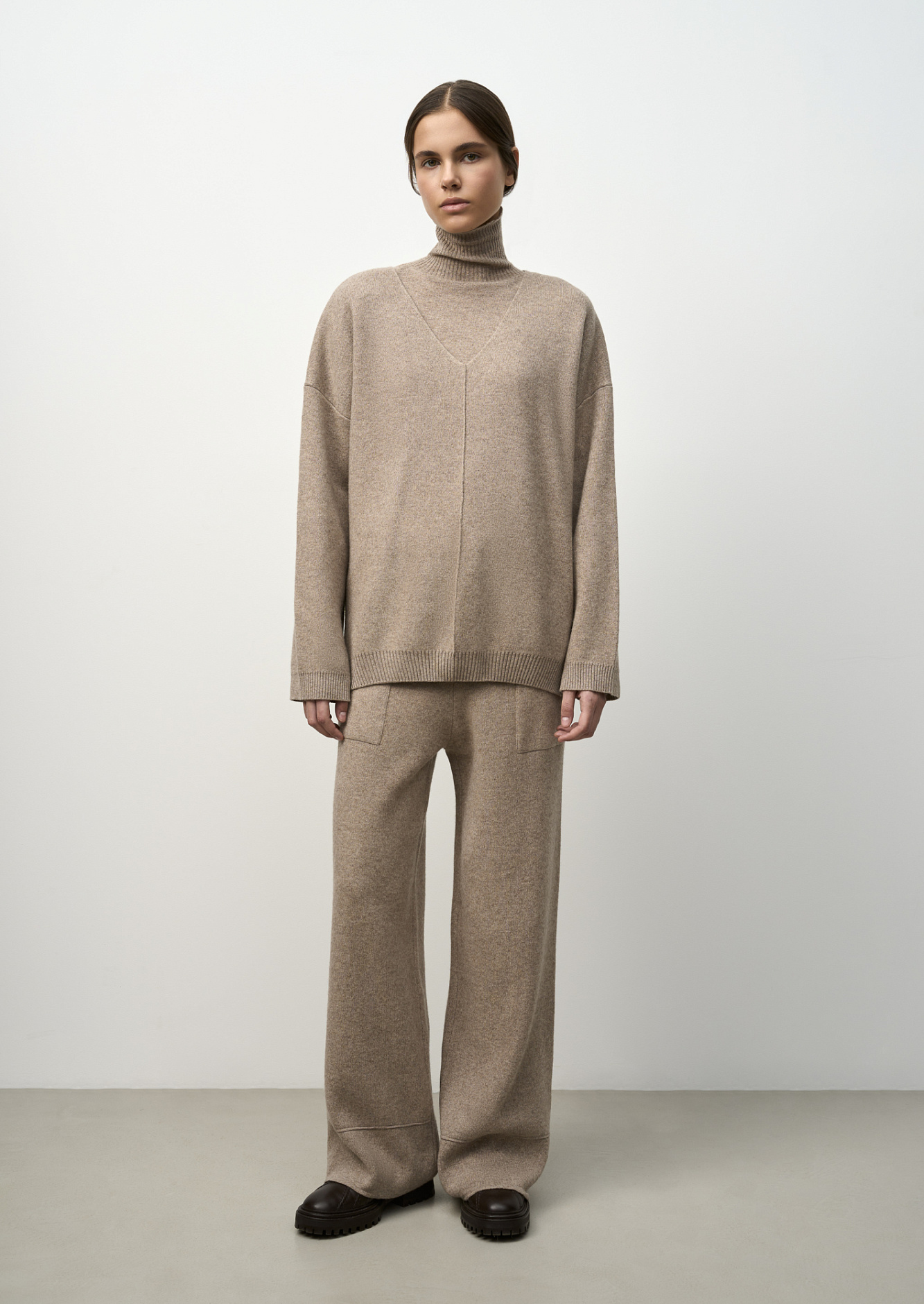Прямые трикотажные брюки из смесовой шерсти с добавлением кашемира. Модель с накладными карманами и эластичным поясом в рубчик.