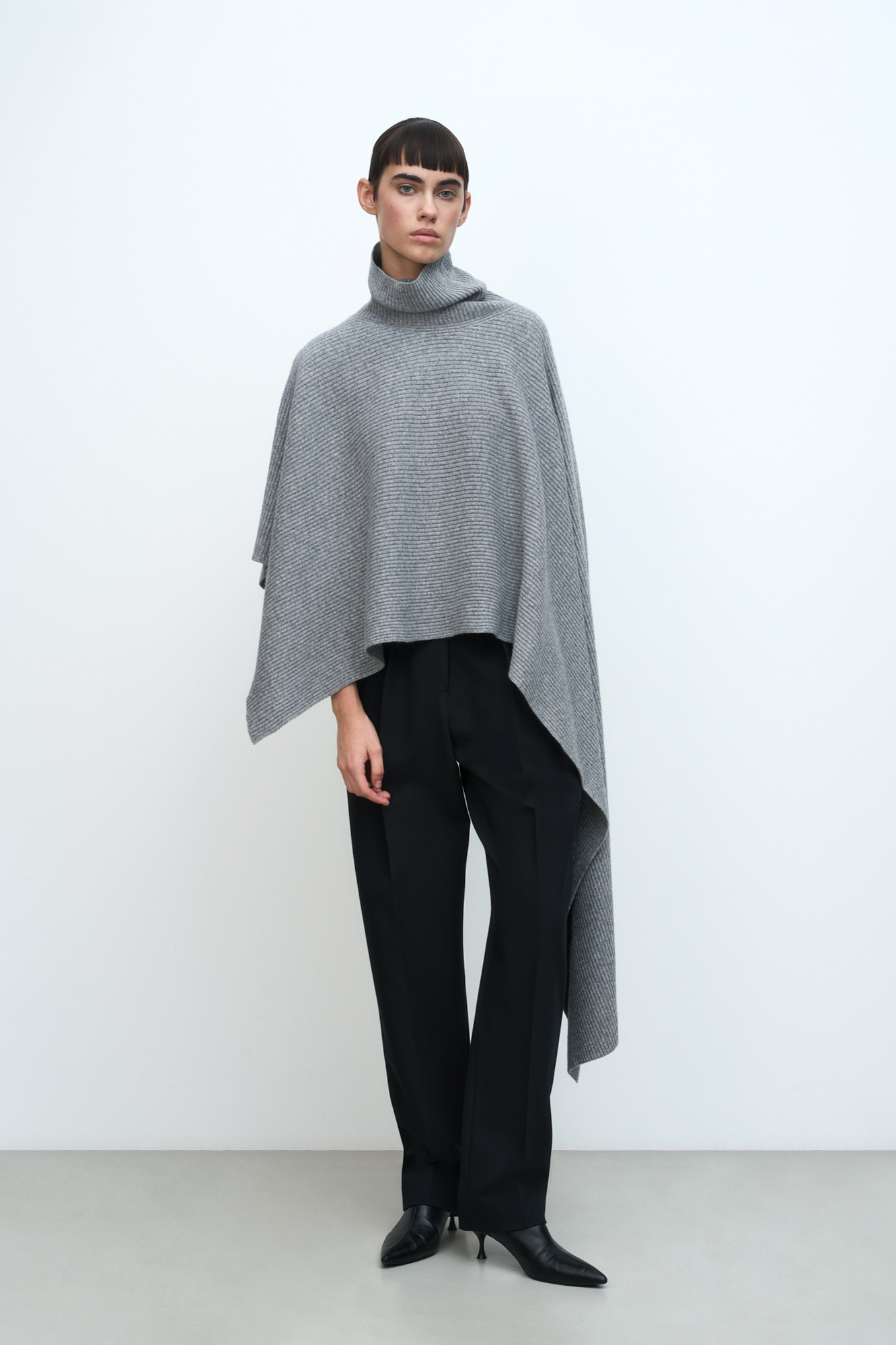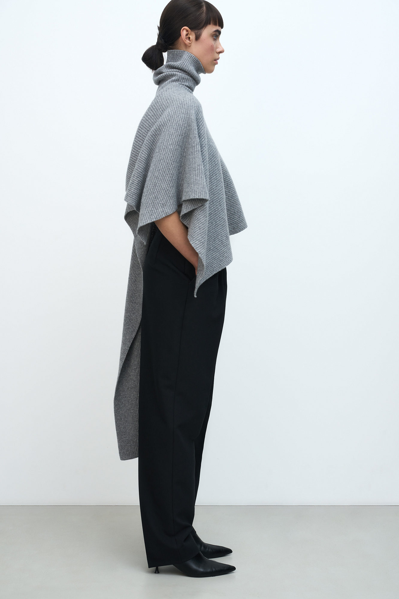 Брюки-бананы из поливискозы с защипами на талии. Модель со средней посадкой и боковыми карманами. Застежка на молнию, крючок и внутреннюю пуговицу.
