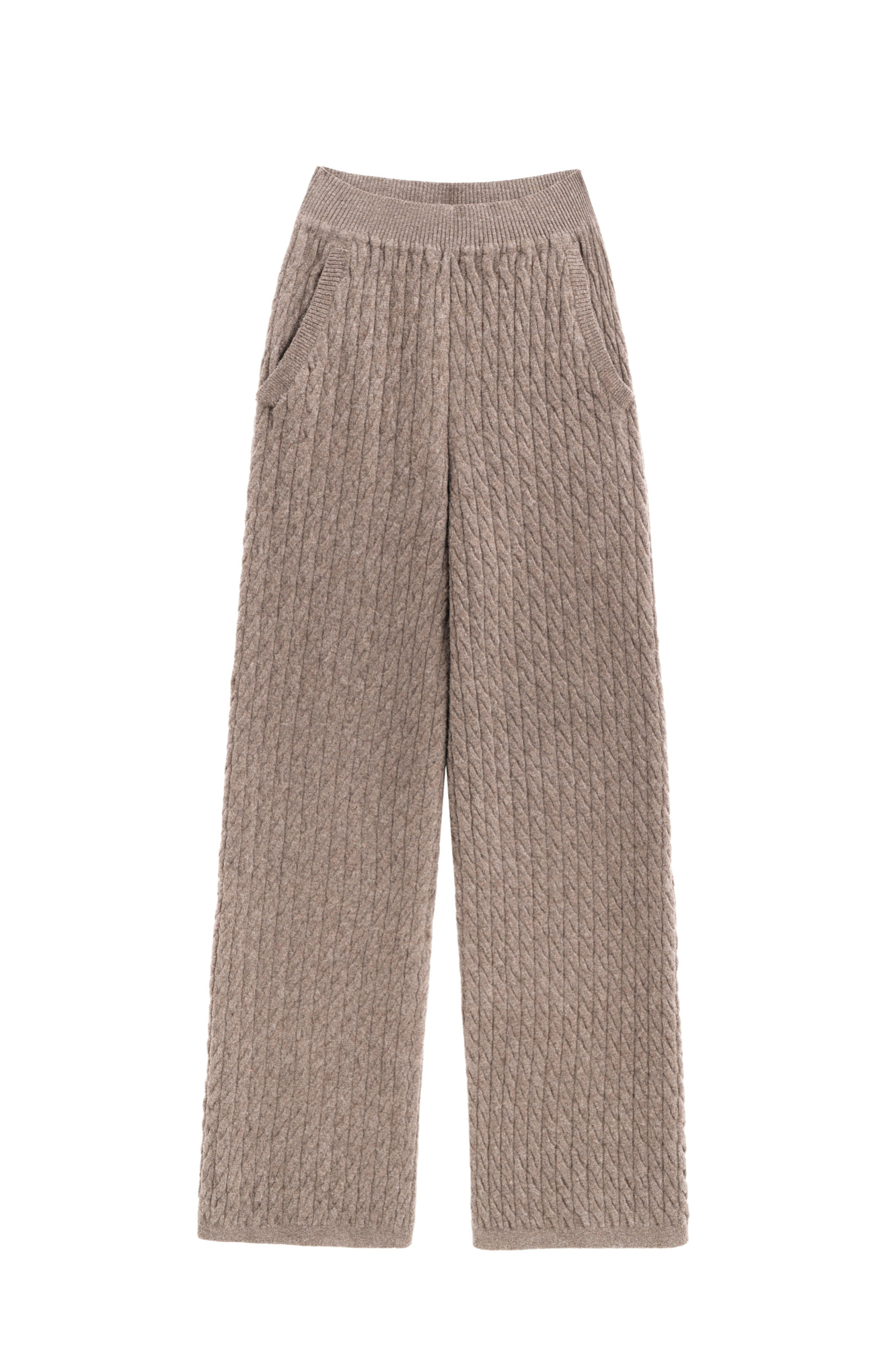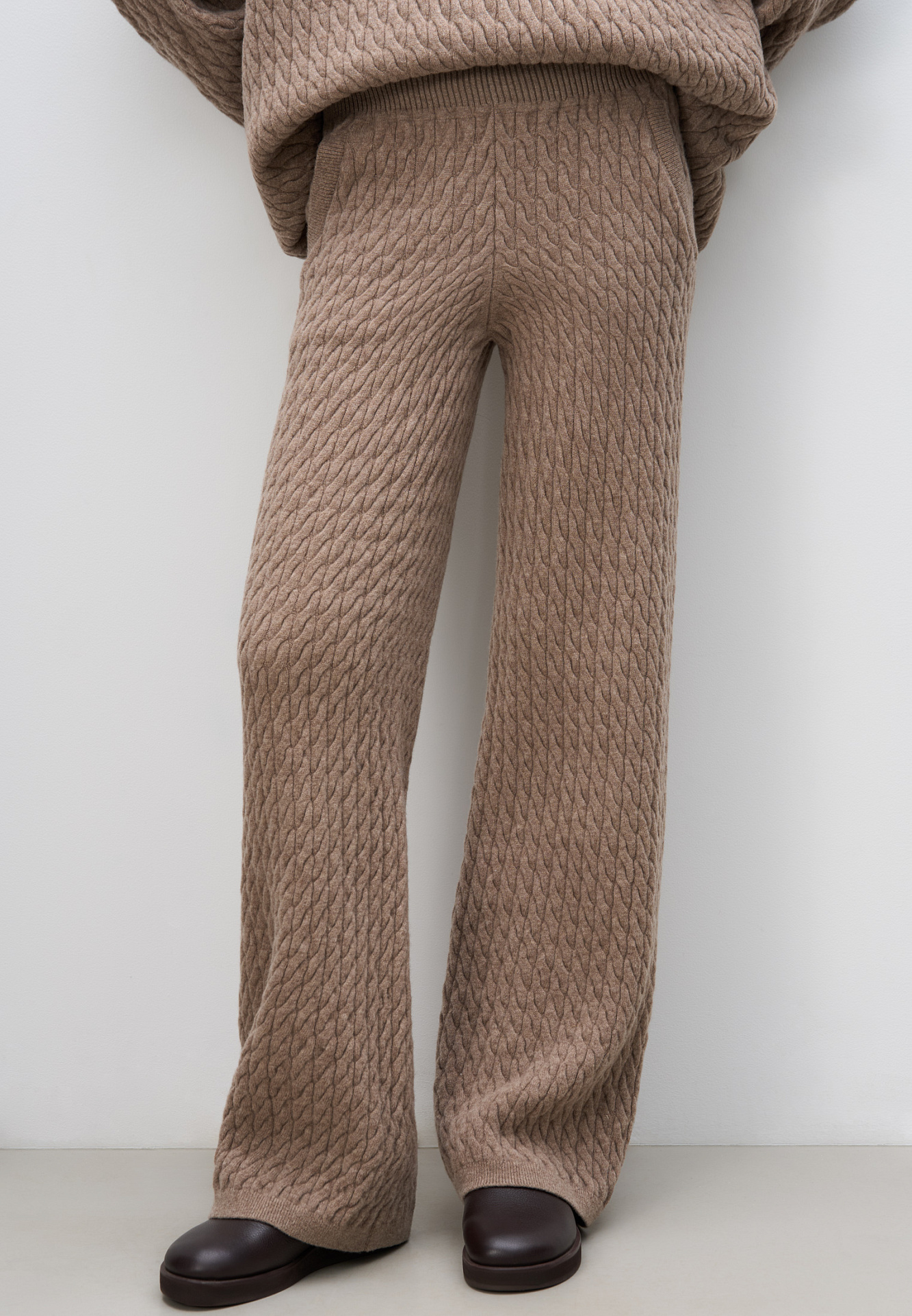 Трикотажные брюки с объемными косами из 100% шерсти мериноса экстрафайн. Модель на эластичной резинке и глубокими боковыми карманами.