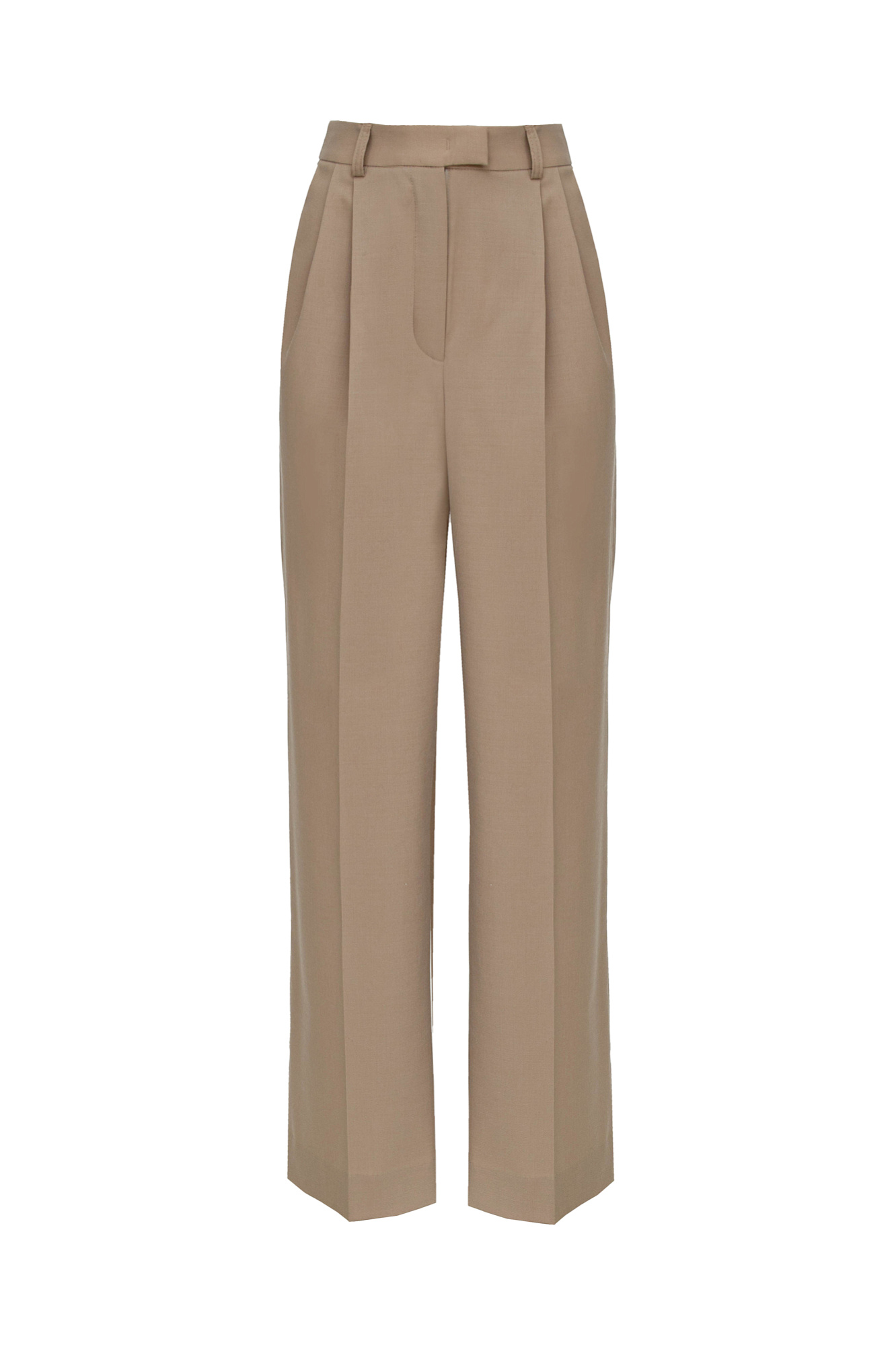 Широкие брюки палаццо из смесовой шерсти. Модель прямого кроя с боковыми карманами и застежкой на молнию и крючок.