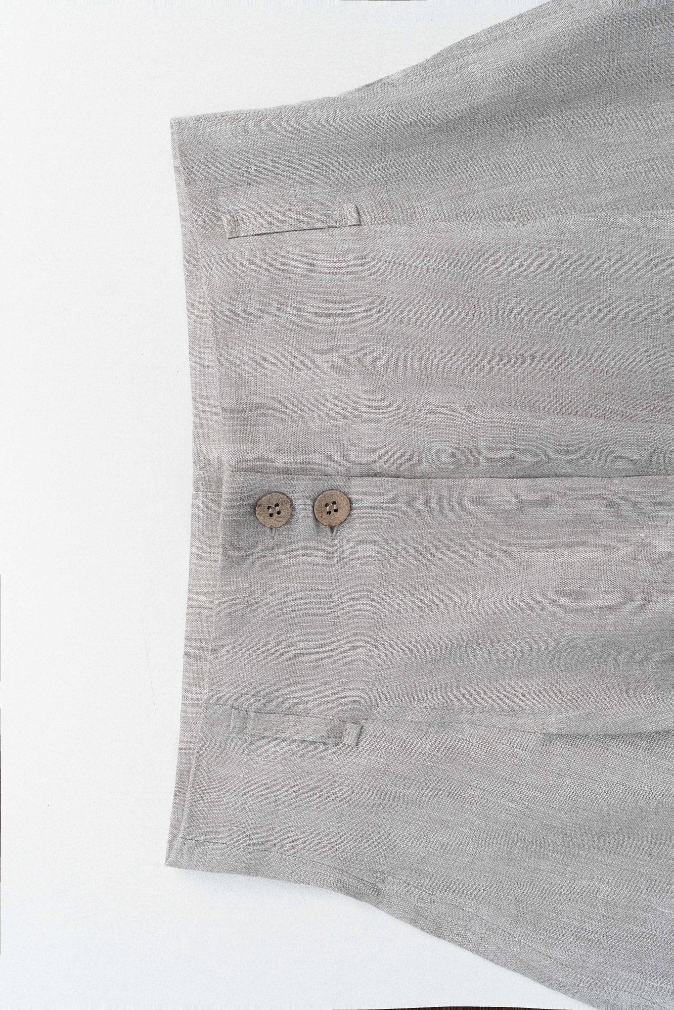 Широкие брюки из 100% льна с высокой посадкой. Модель прямого кроя с защипами и боковыми карманами. Шлевки на поясе для ремня. Застежка на молнию и две пуговицы.