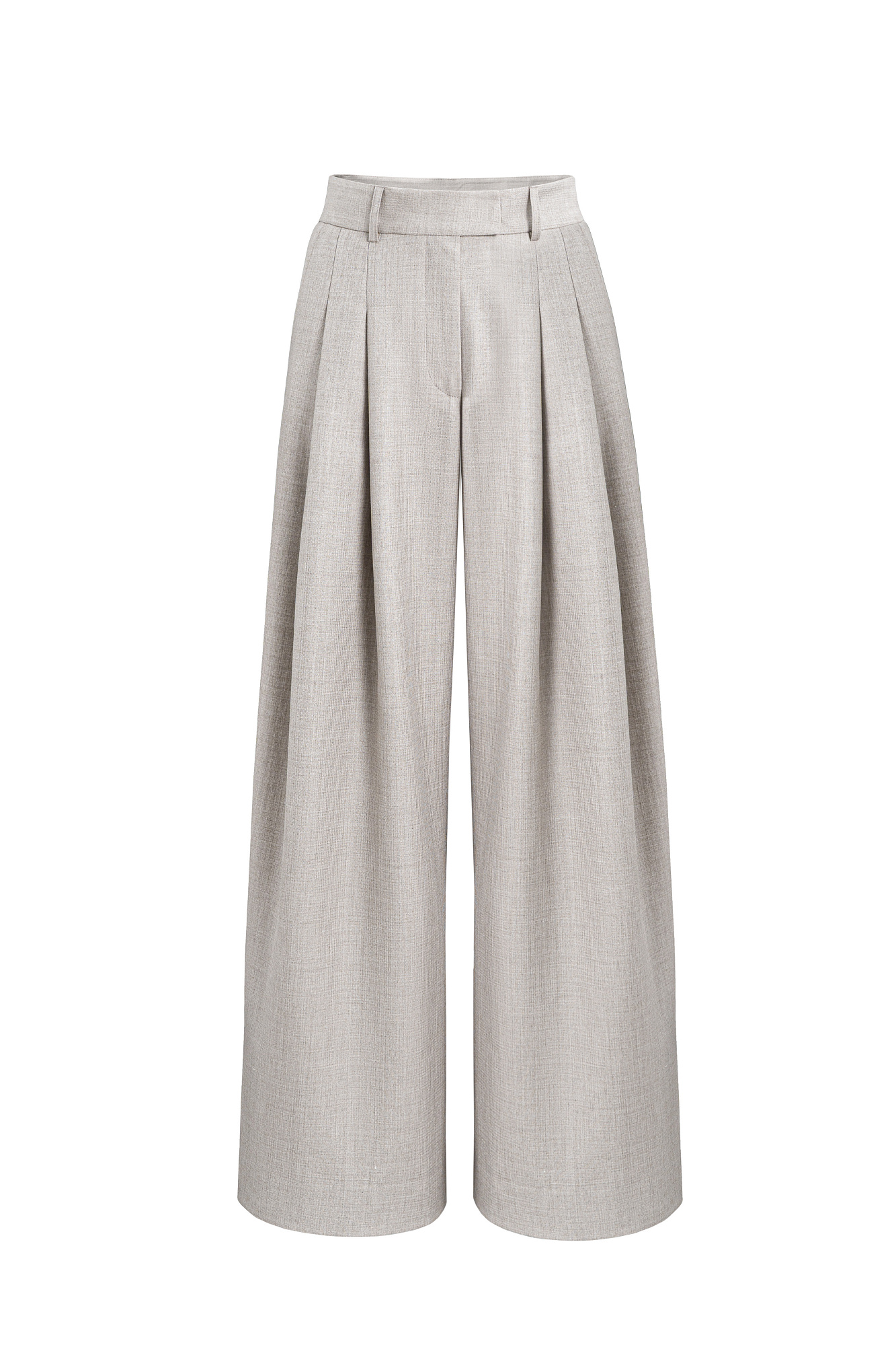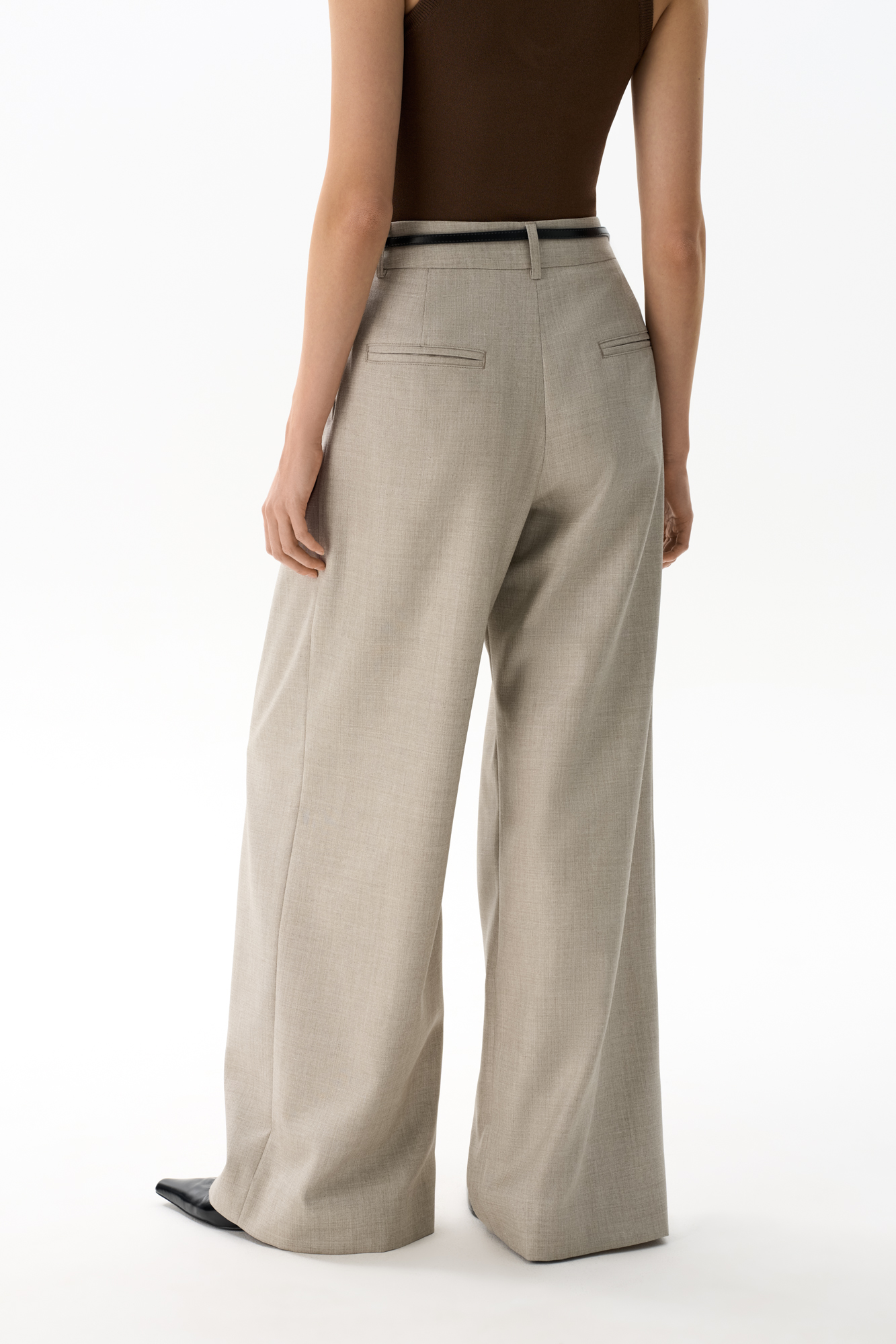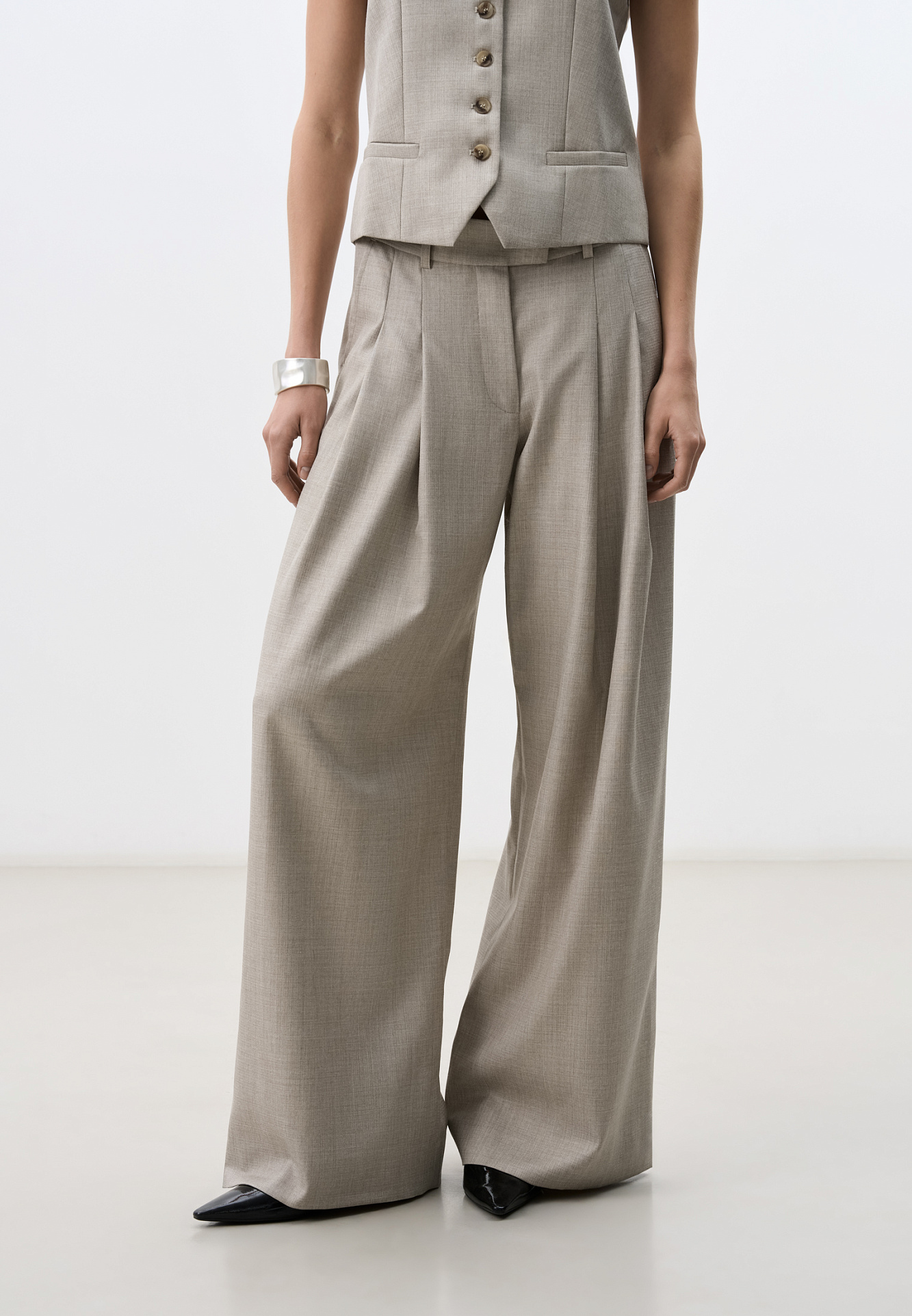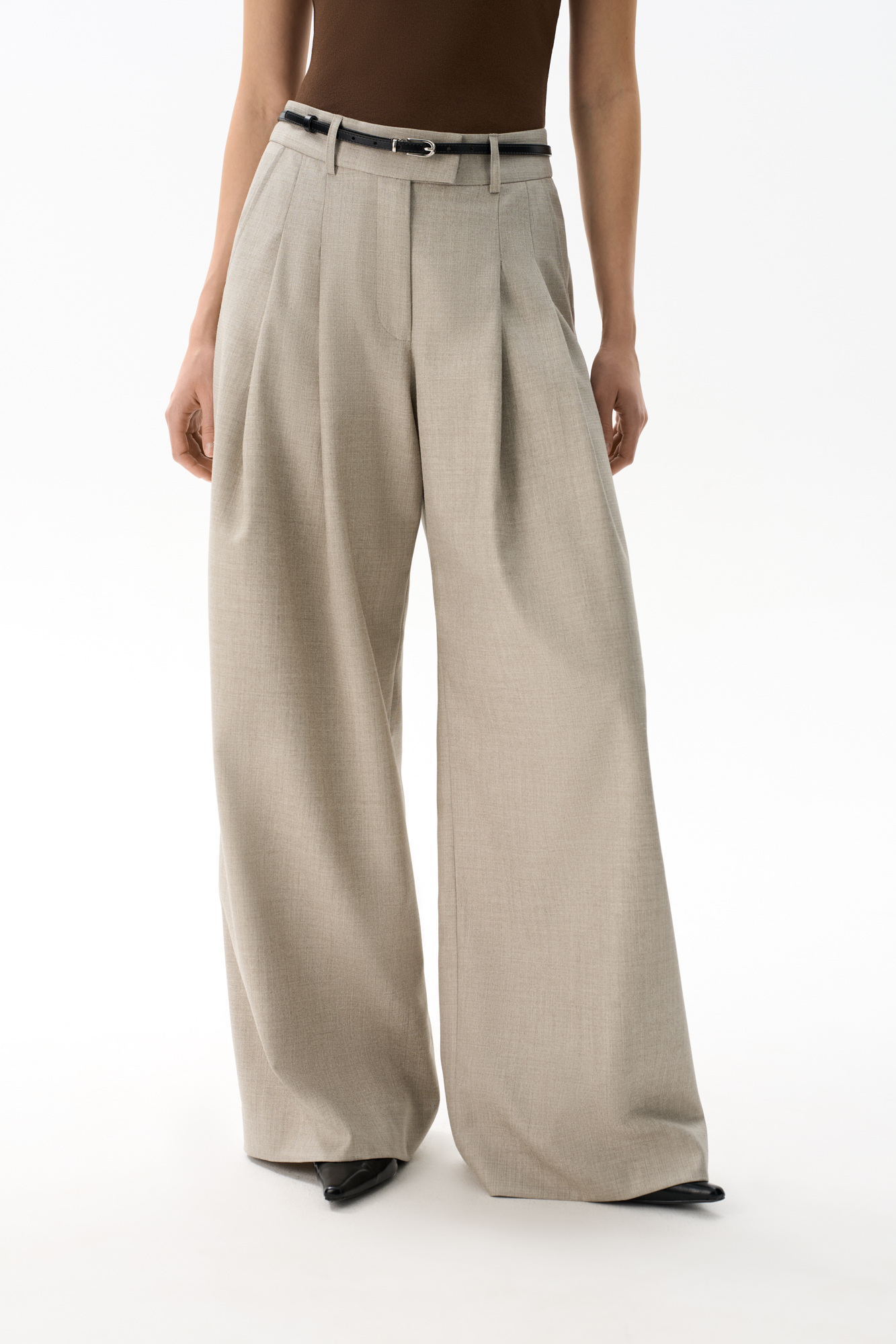 Брюки палаццо из смесовой шерсти со складкми. Модель с высокой посадкой и широким поясом со шлевками для ремня.