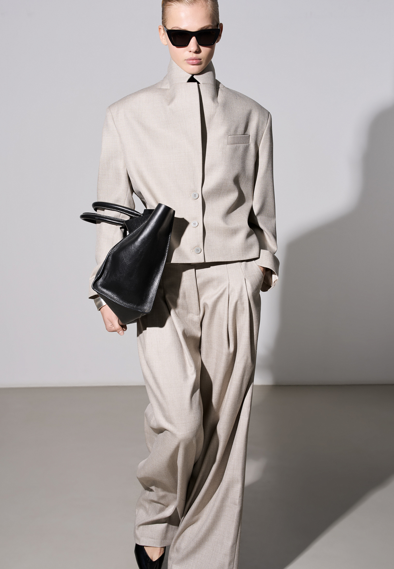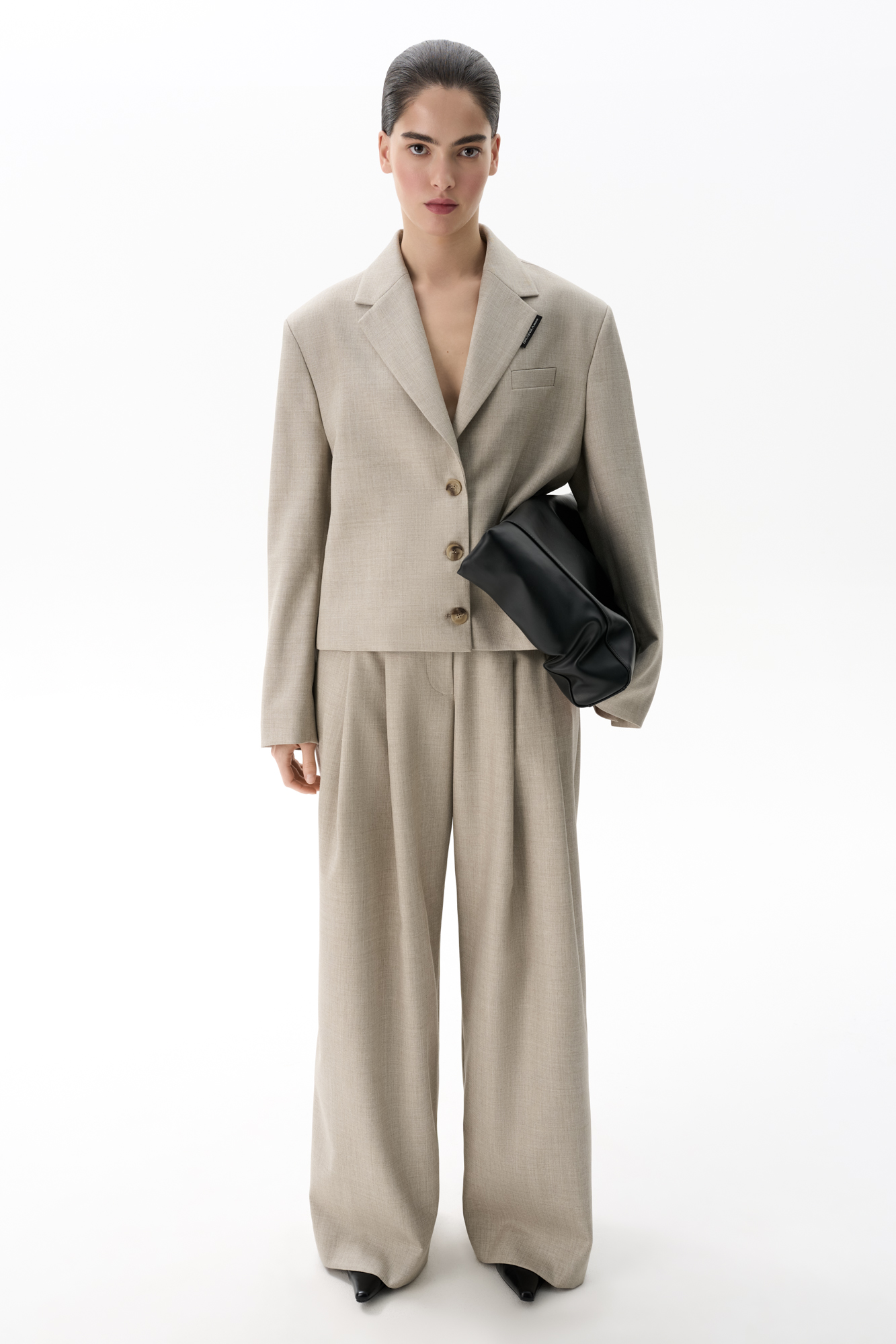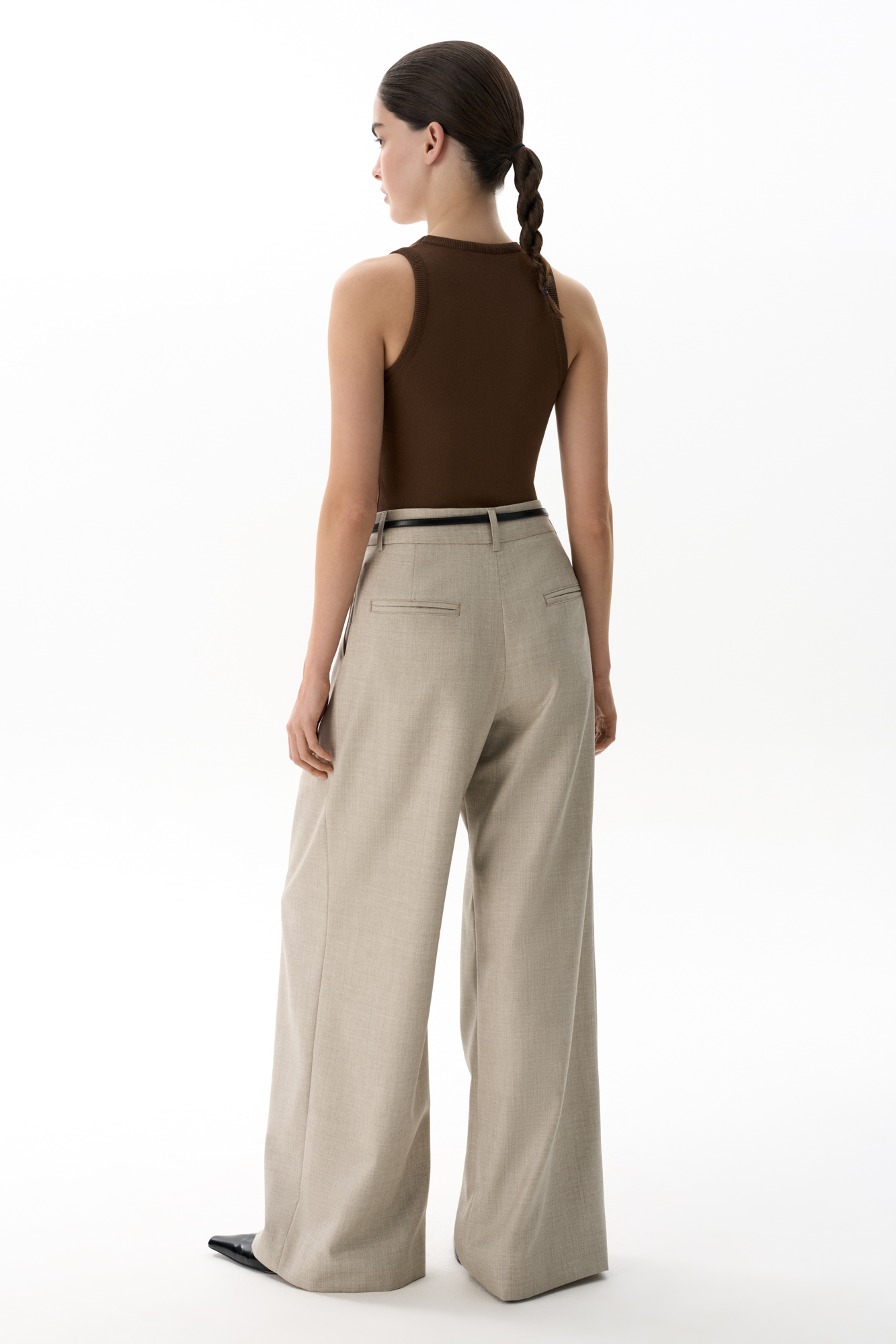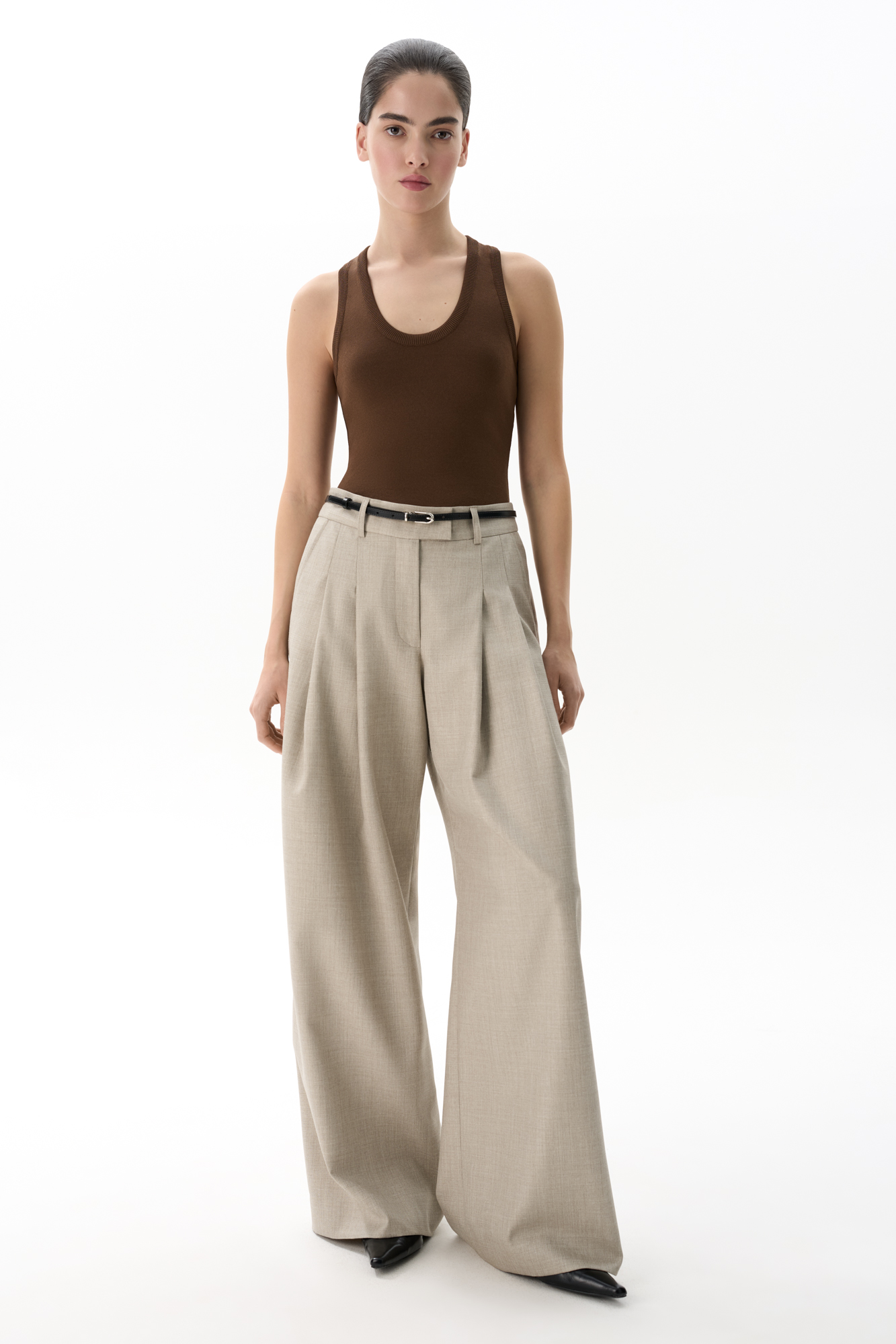 Брюки палаццо из смесовой шерсти со складкми. Модель с высокой посадкой и широким поясом со шлевками для ремня.