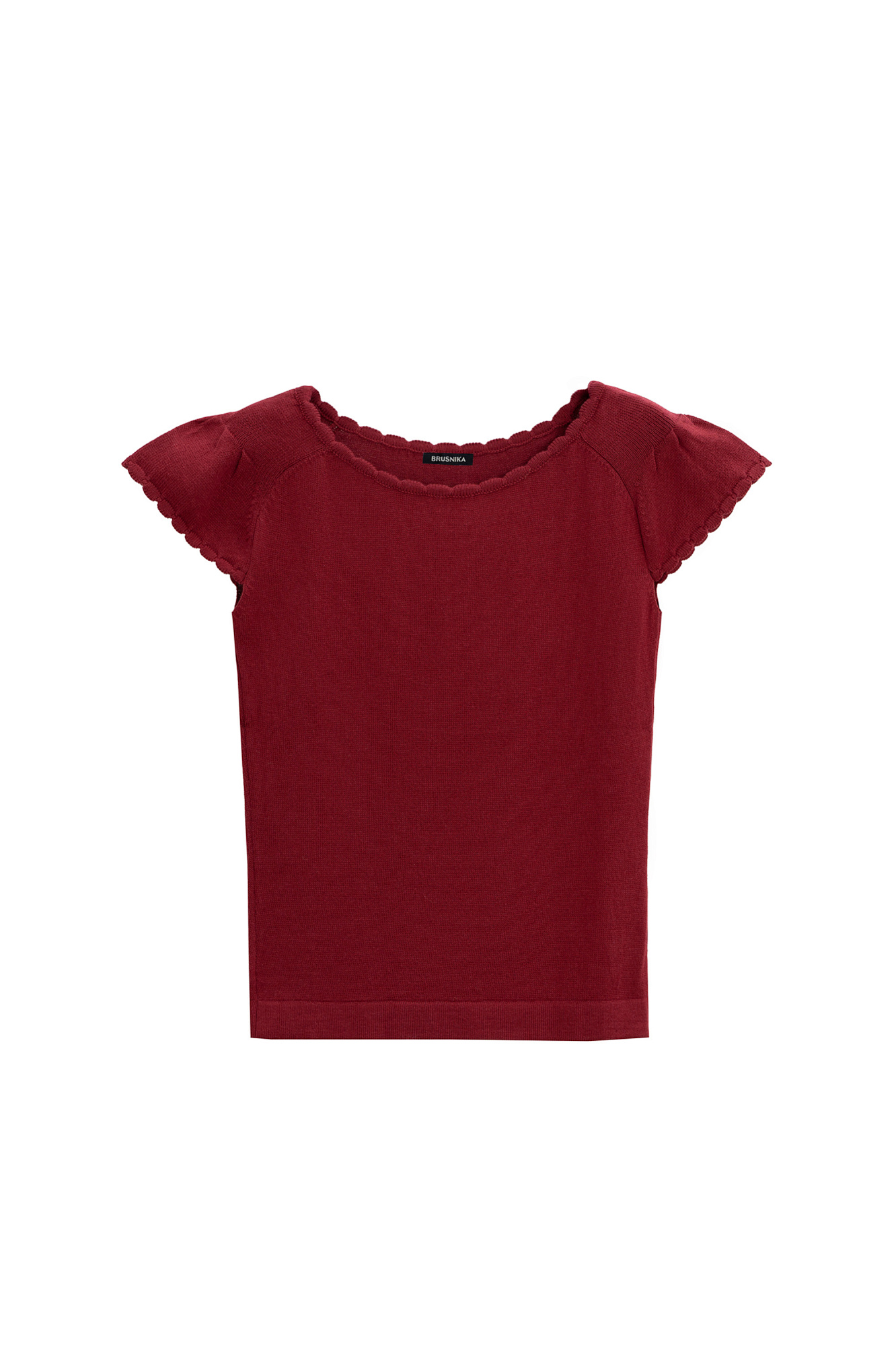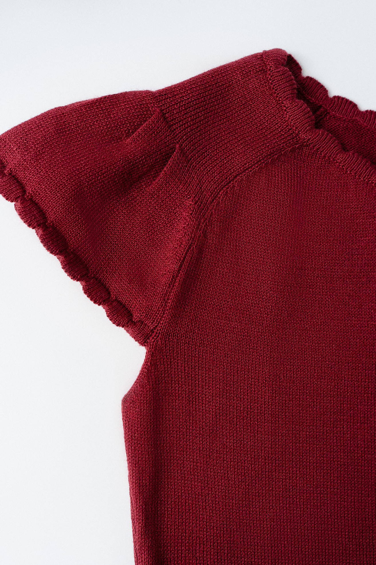 Трикотажный детский жилет. Модель прямого кроя с круглым вырезом горловины и небольшим рукавом-крыло.