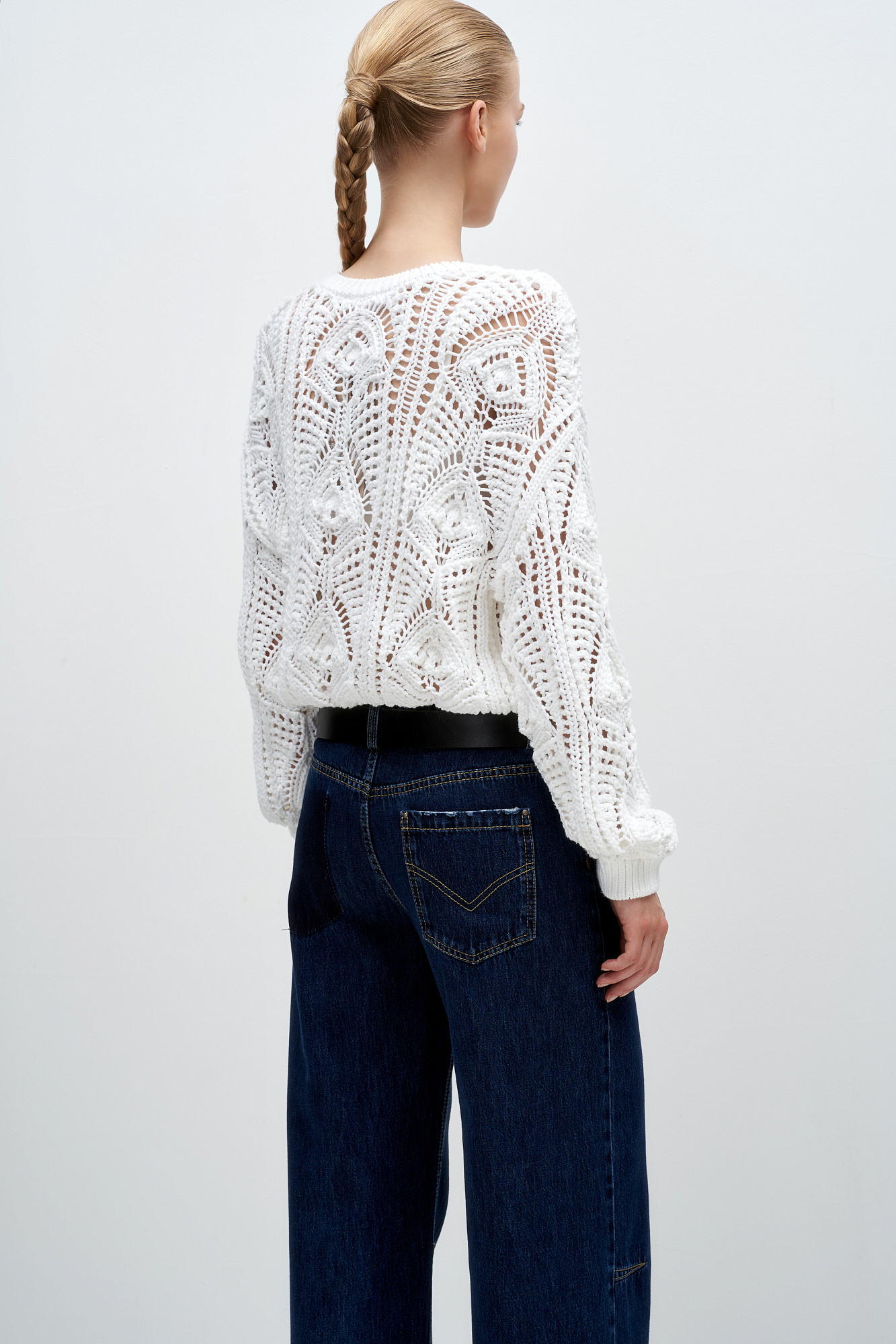Трикотажный ажурный джемпер из хлопка