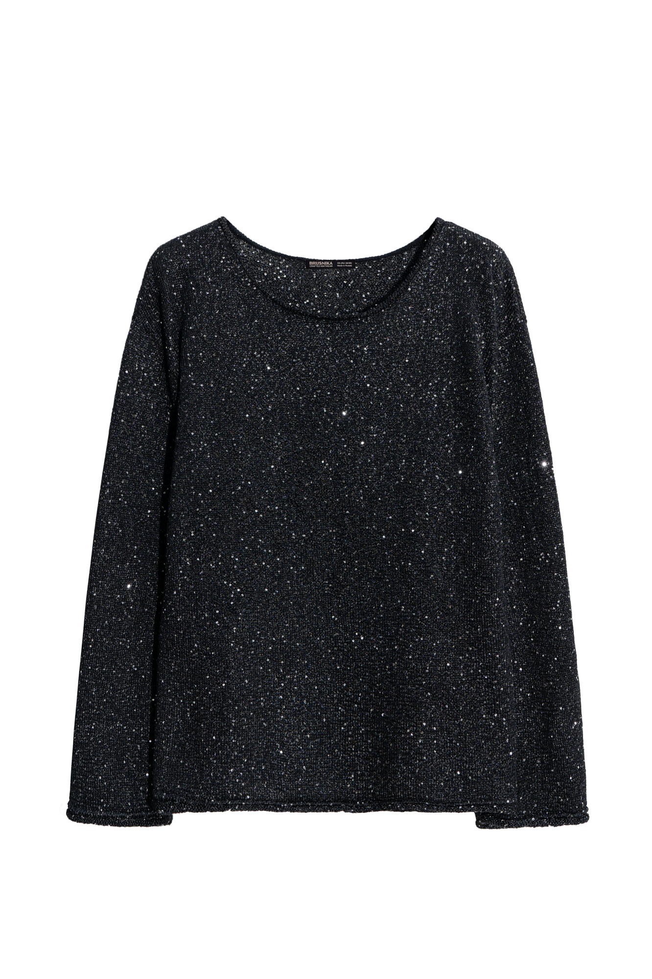 Трикотажный джемпер из хлопка с пайетками и люрексом. Модель свободного силуэта с длинными рукавами и круглым вырезом горловины.