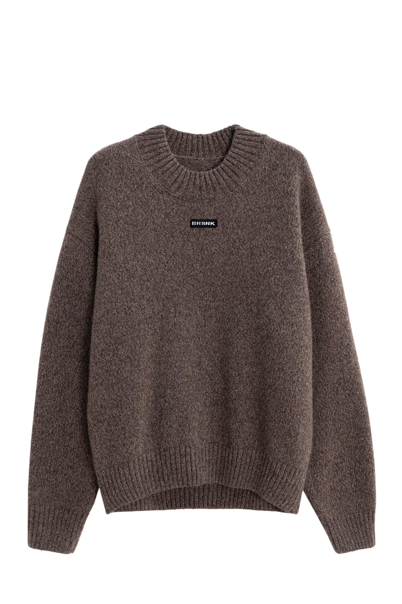 Объемный джемпер из шерсти с добавлением кашемира. Модель свободного силуэта, со спущенной линией плеч. Воротник выполнен изнаночными петлями в широкий рубчик. Манжеты рукавов и низ изделия - на резинке. Джемпер декорирован брендированным трикотажным ярлычком.