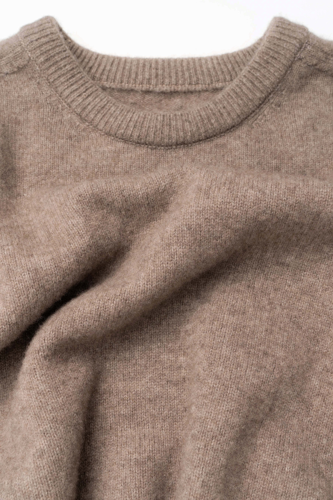 Трикотажный джемпер из шерсти яка с добавлением шерсти мериноса экстрафайн. Модель свободного силуэта, с вывязанной круглой горловиной и рукавом реглан с декоративными сбавками. Низ изделия и манжеты рукавов выполнены в рубчик.