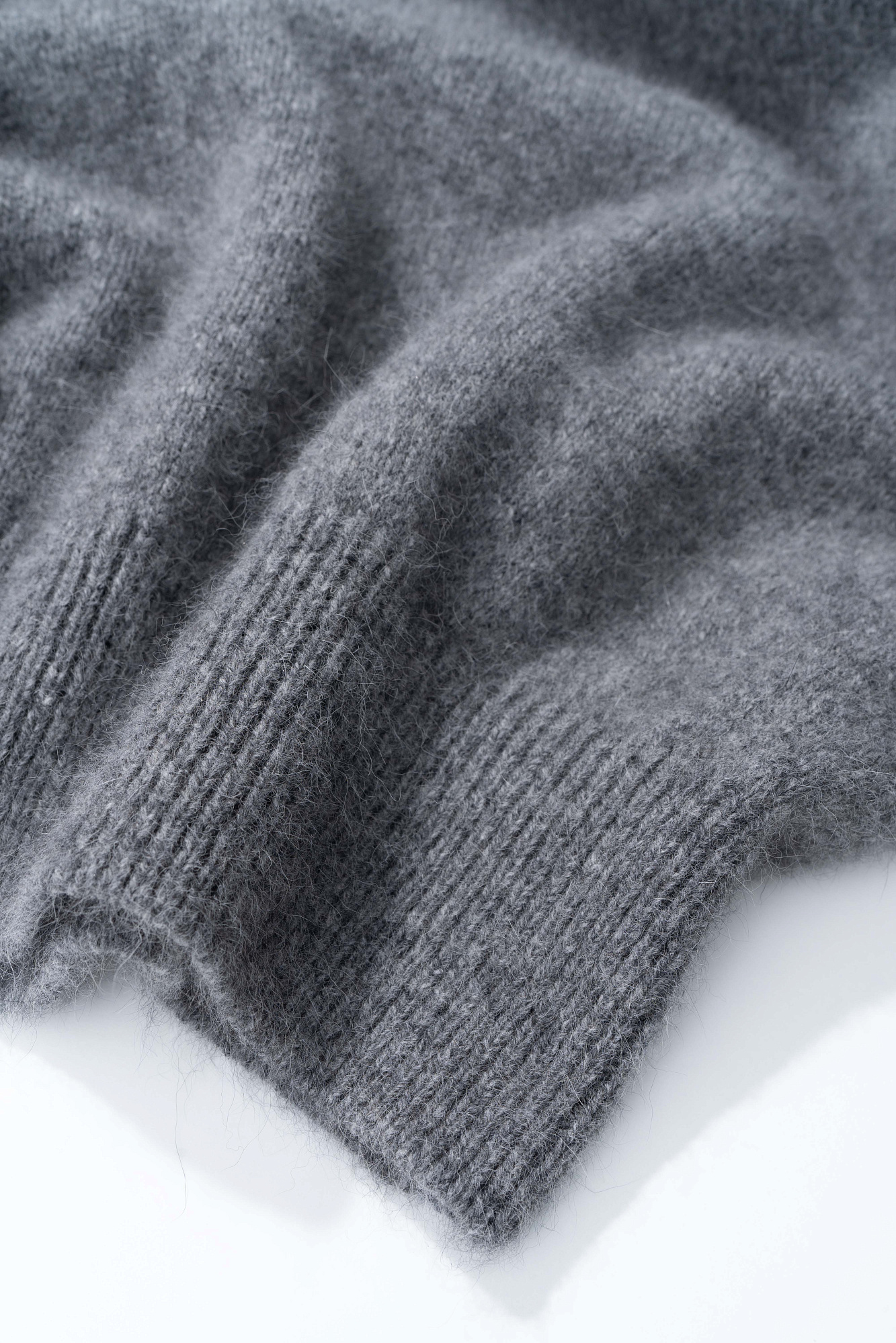 Трикотажный джемпер из пуха лисы. Модель свободного силуэта с высоким воротом, спущенной линией плеч и широкими рукавами с манжетами на резинке.