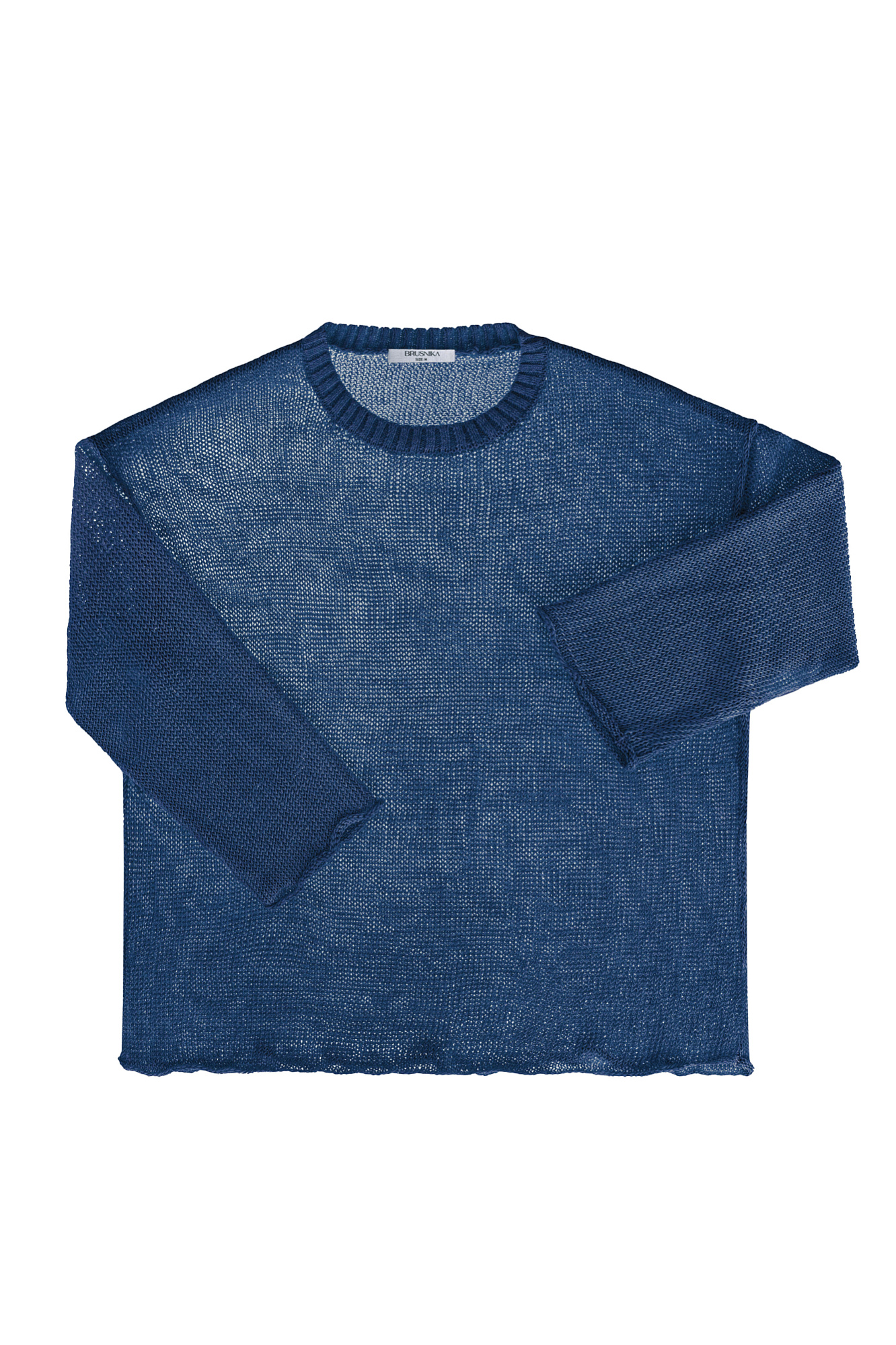 Полупрозрачный джемпер из 100% льна. Модель свободного силуэта со спущенной линией плеча и круглым вырезом горловины.