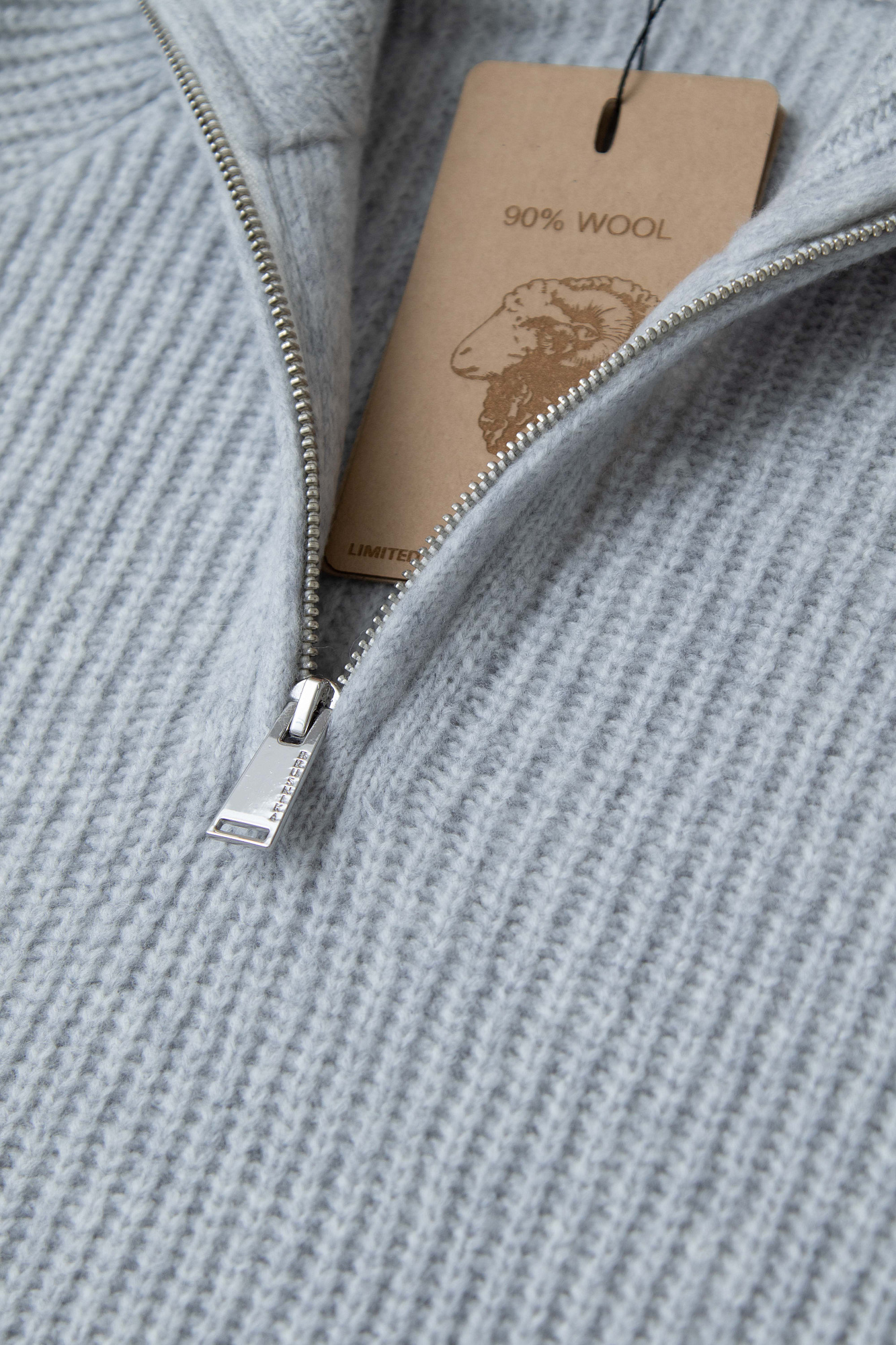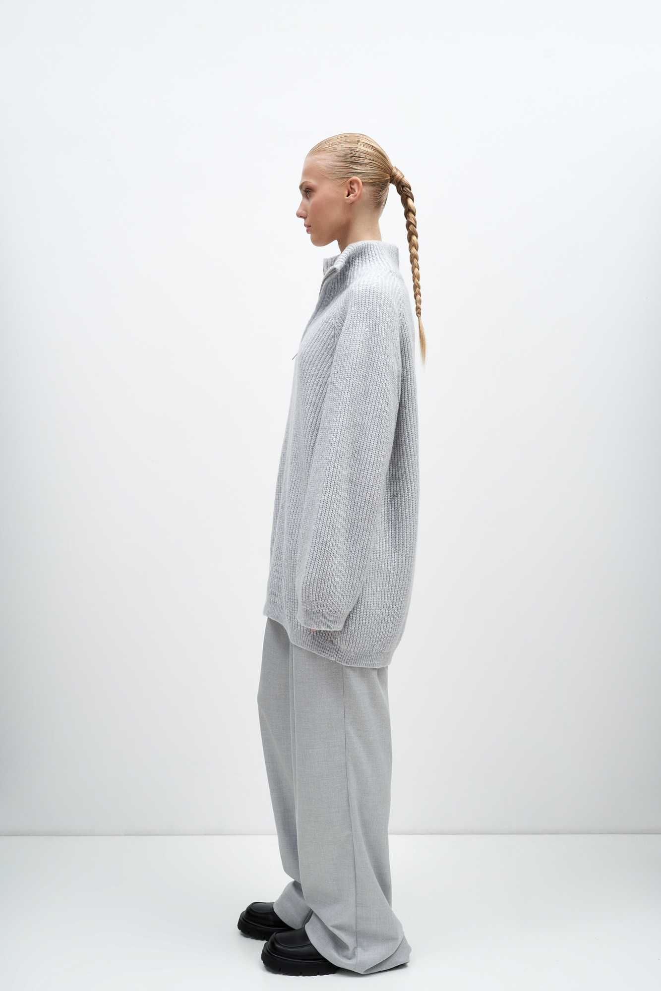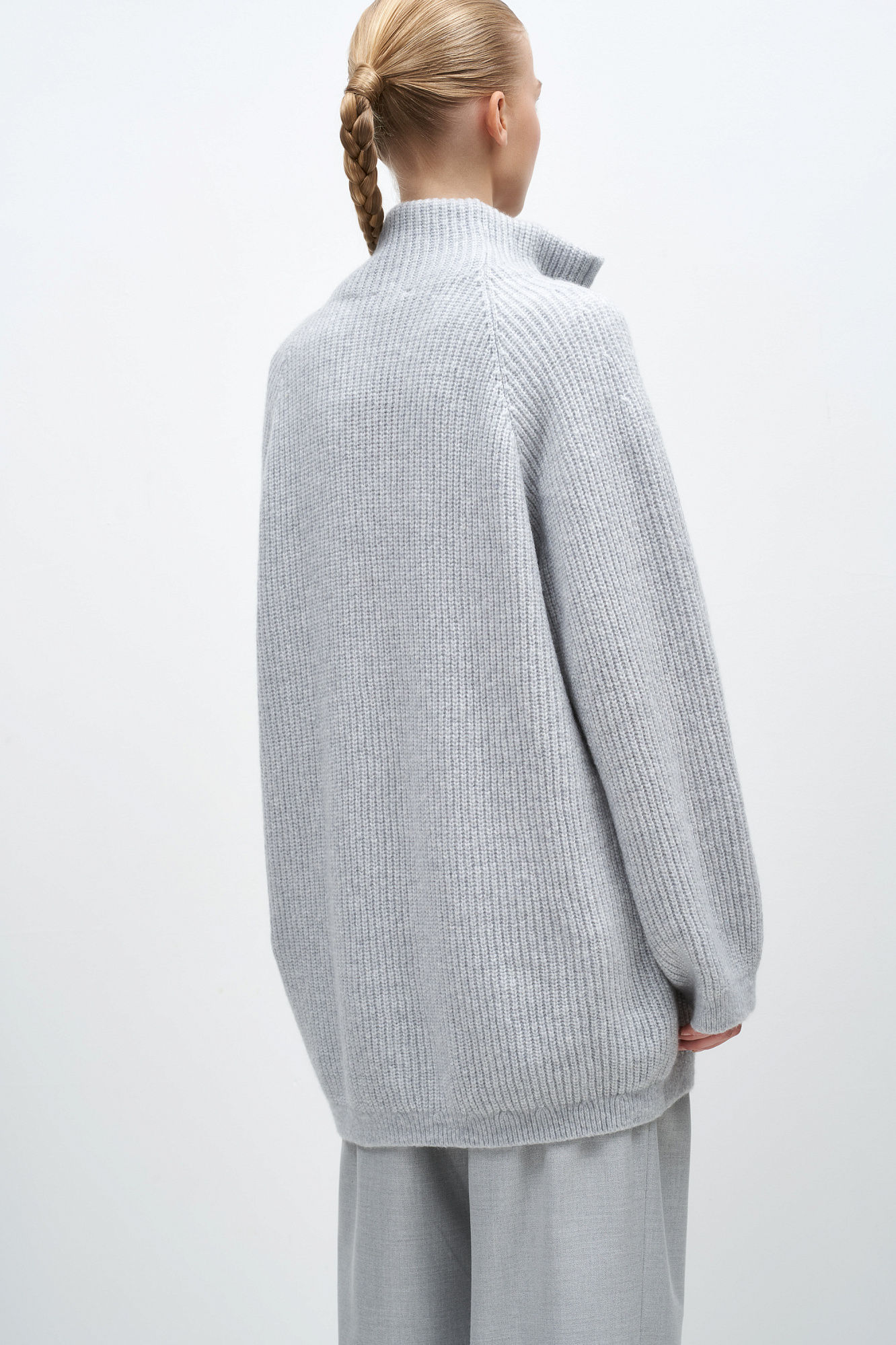 Удлиненный джемпер из мягкой шерсти мериноса экстрафайн. Модель свободного силуэта с высоким воротом и застежкой на молнию.